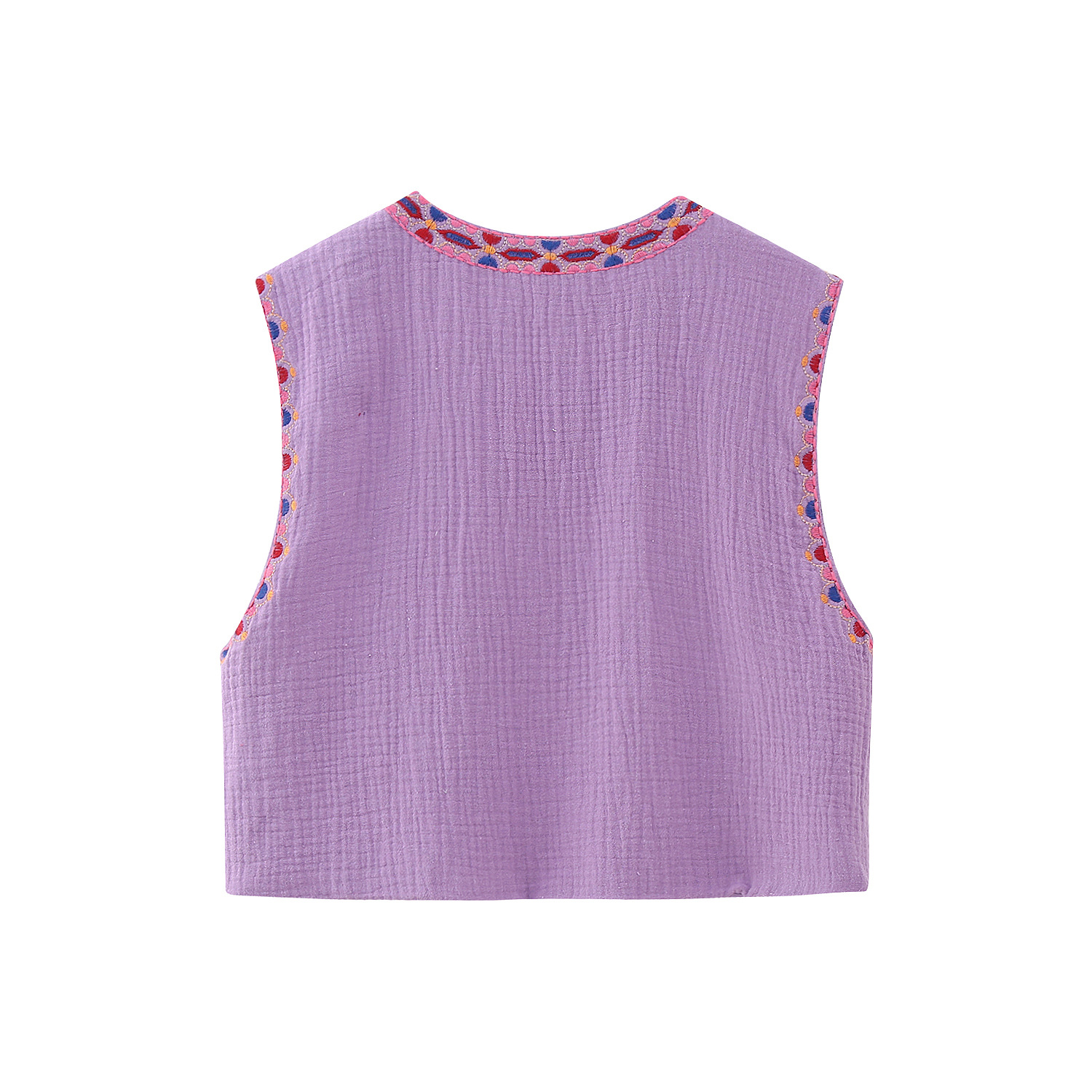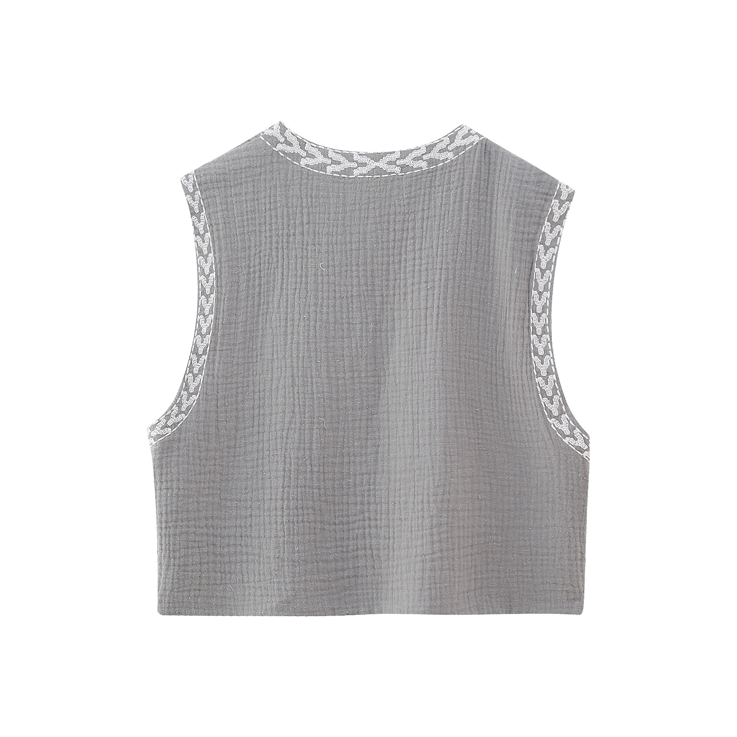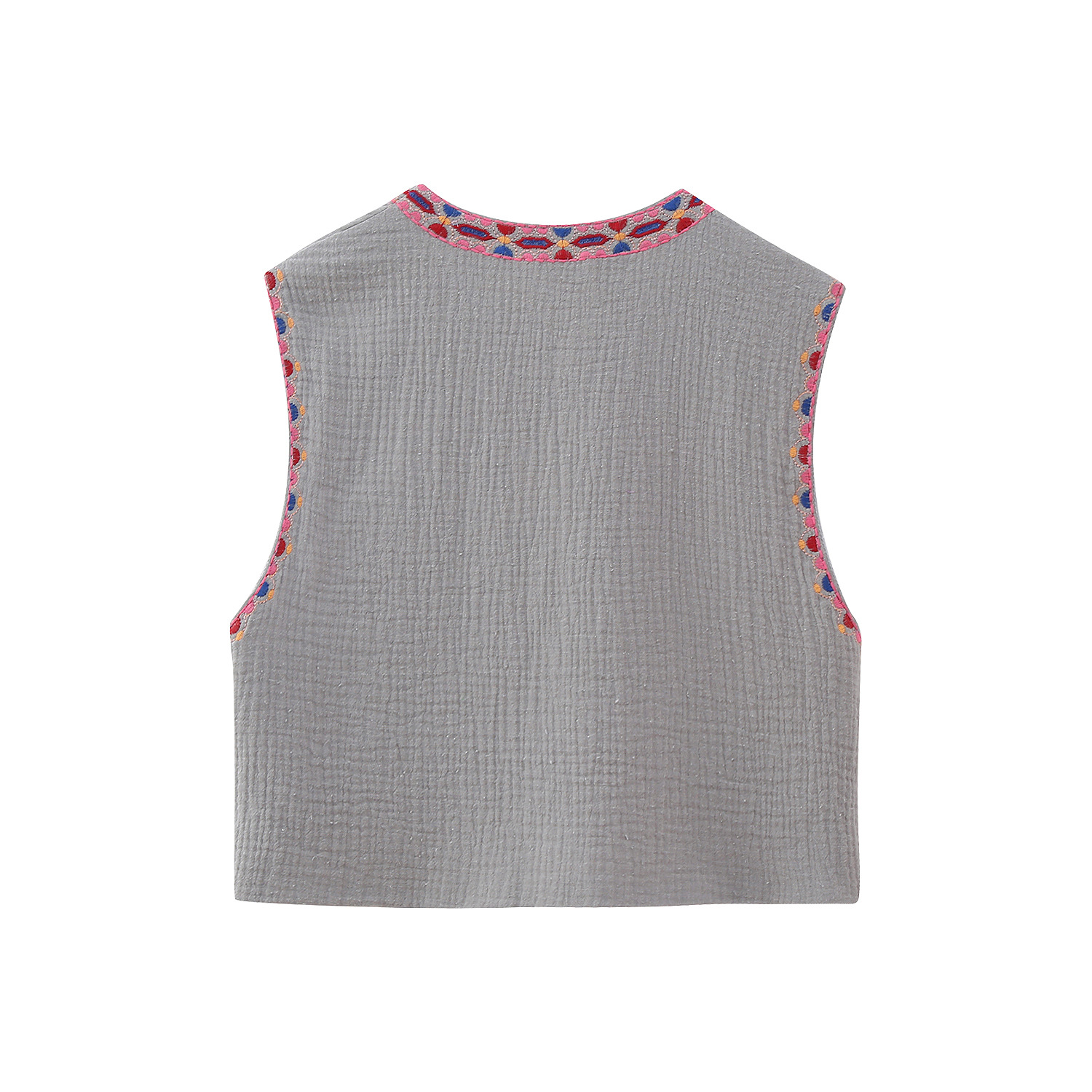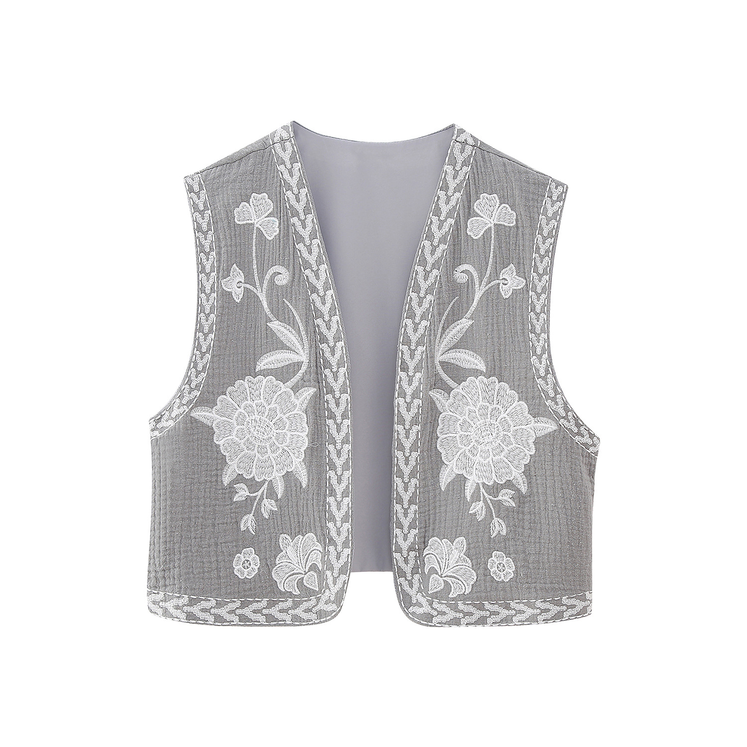 0 Review for Embroidered Open-Front Vest Fashionable All-Match