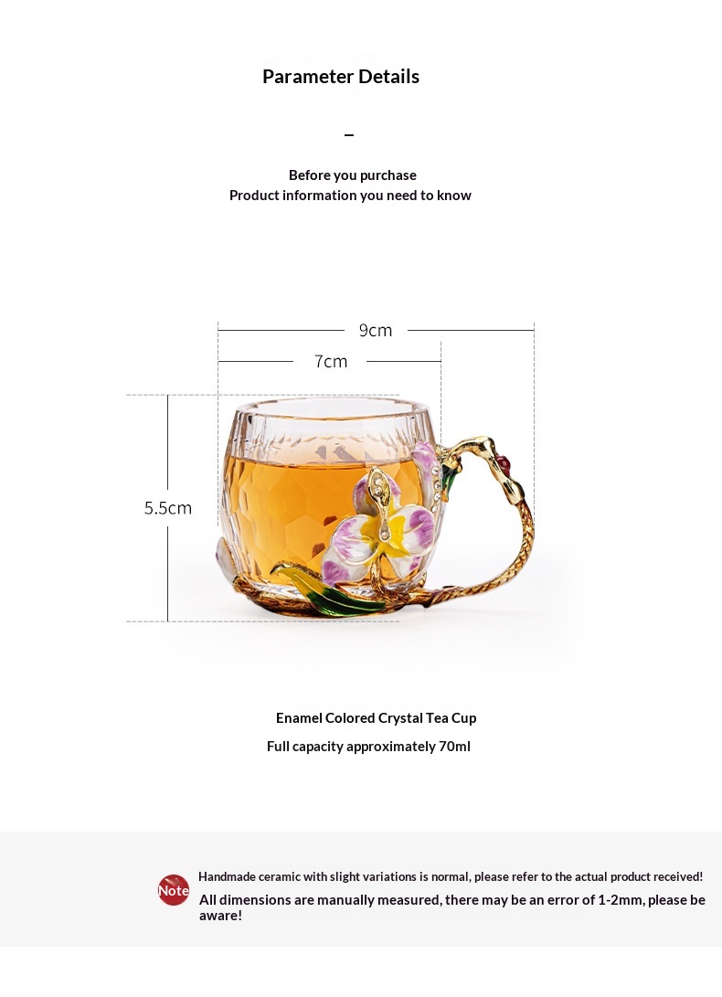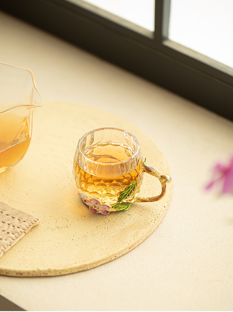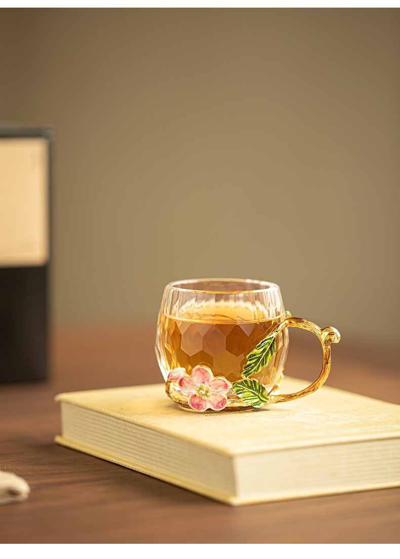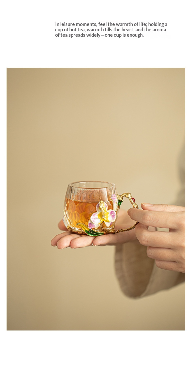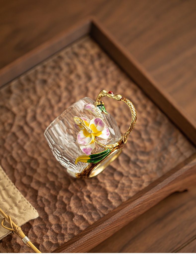 Enamel-colored Crystal Glass Tea Cup With Cut Edges