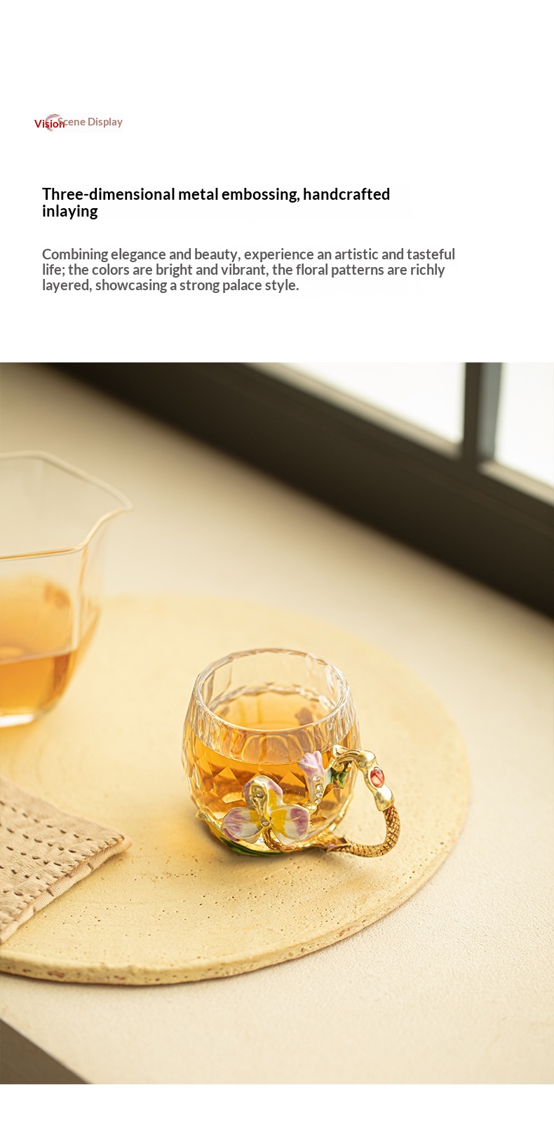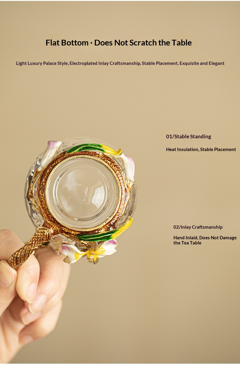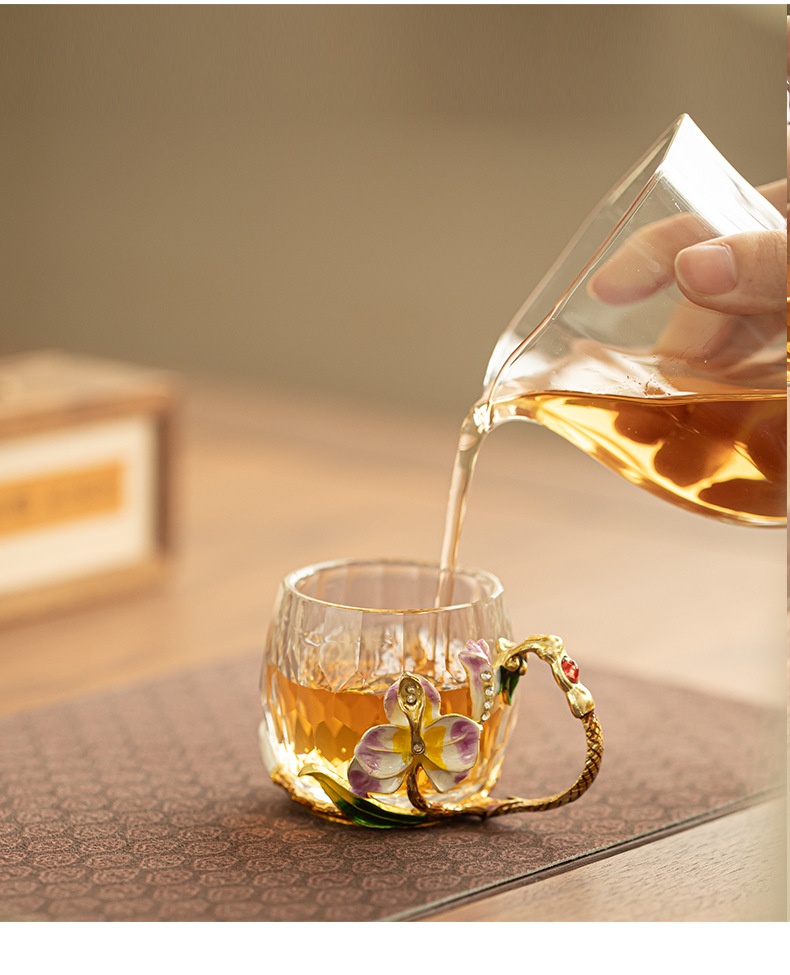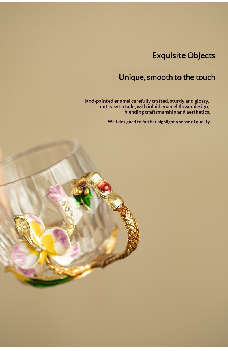 Enamel-colored Crystal Glass Tea Cup With Cut Edges