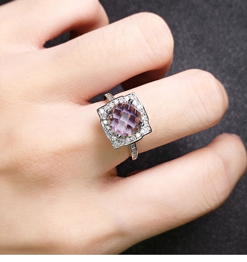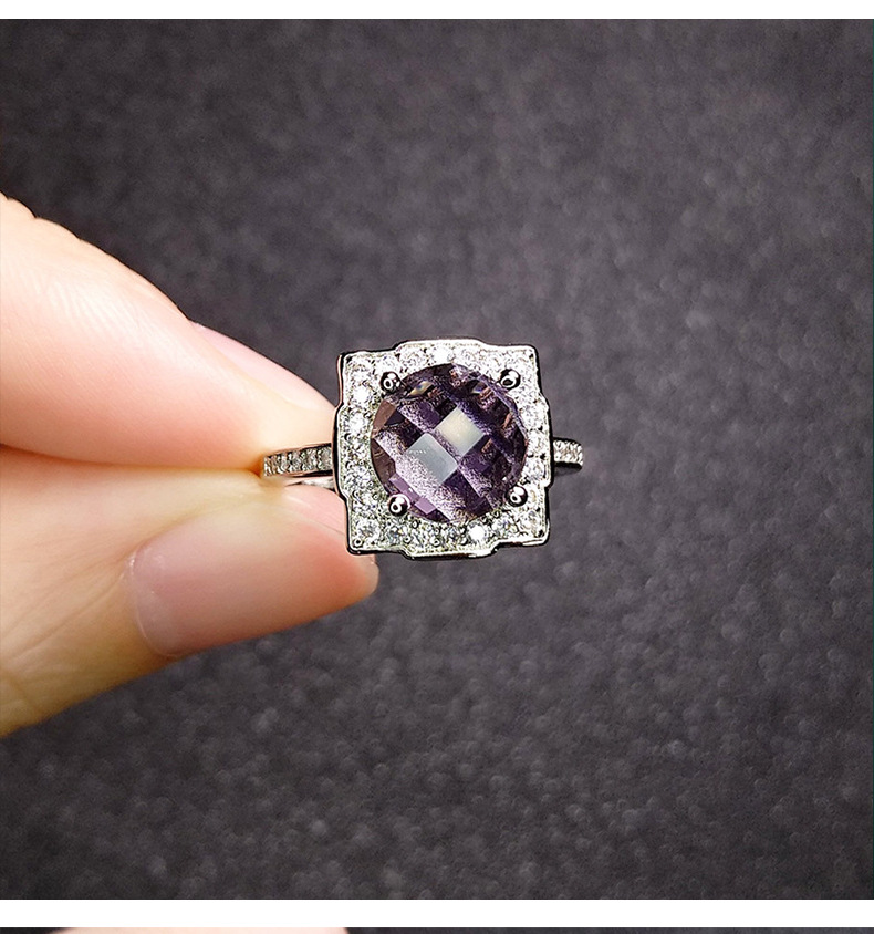 Color: Black Stone White Gold Ring, Purple Stone White Gold Ring