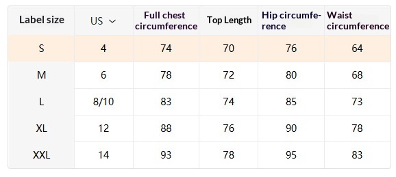 Sizes: S, M, L, XL, XXL