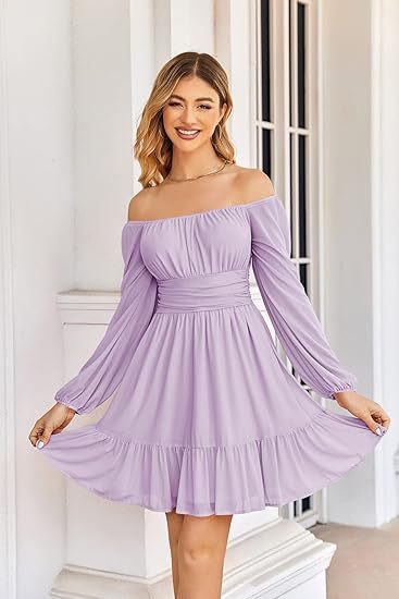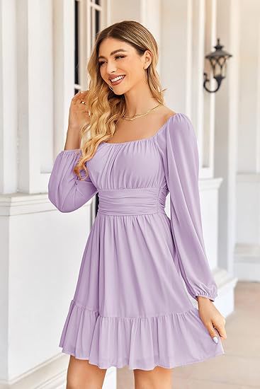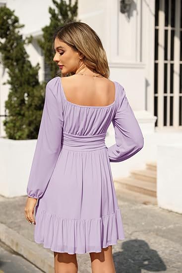 0 Review for European And American Womens Mesh Long-Sleeve Square-Neck Dress