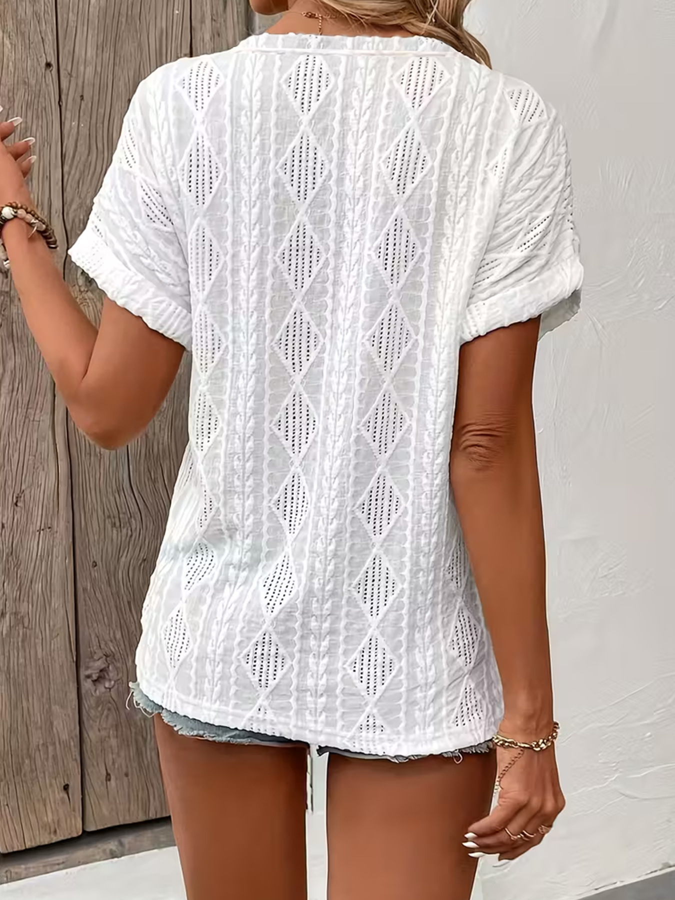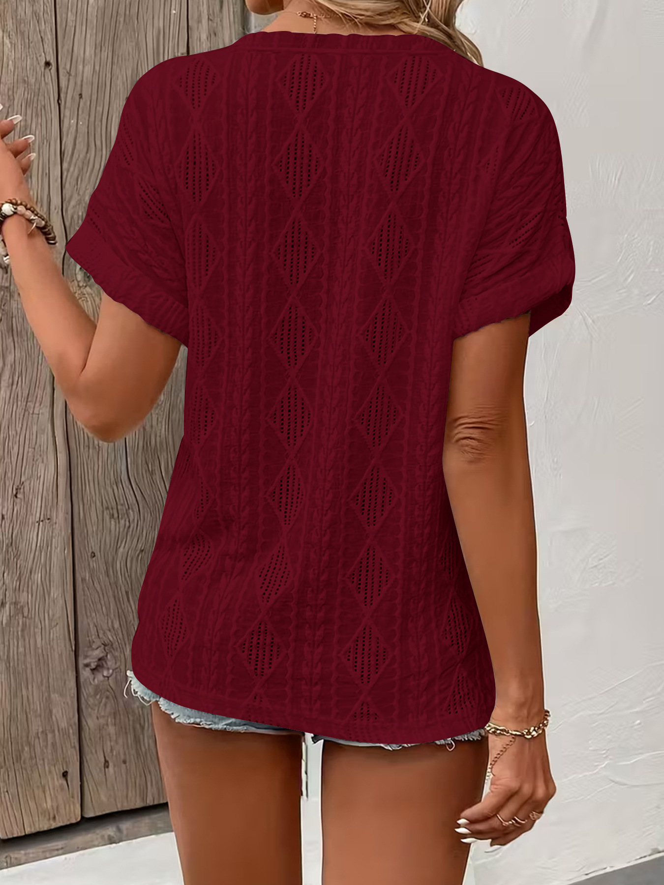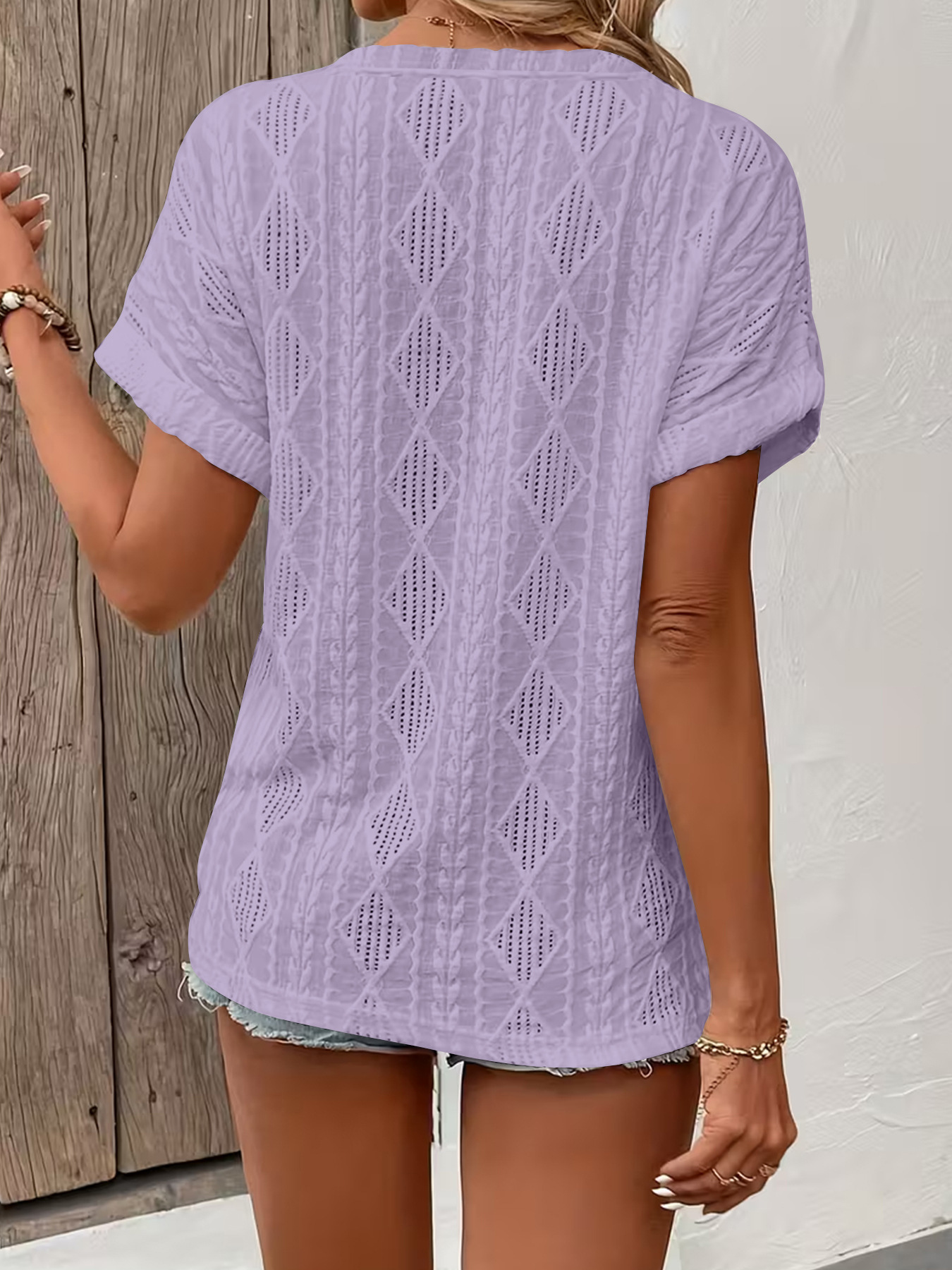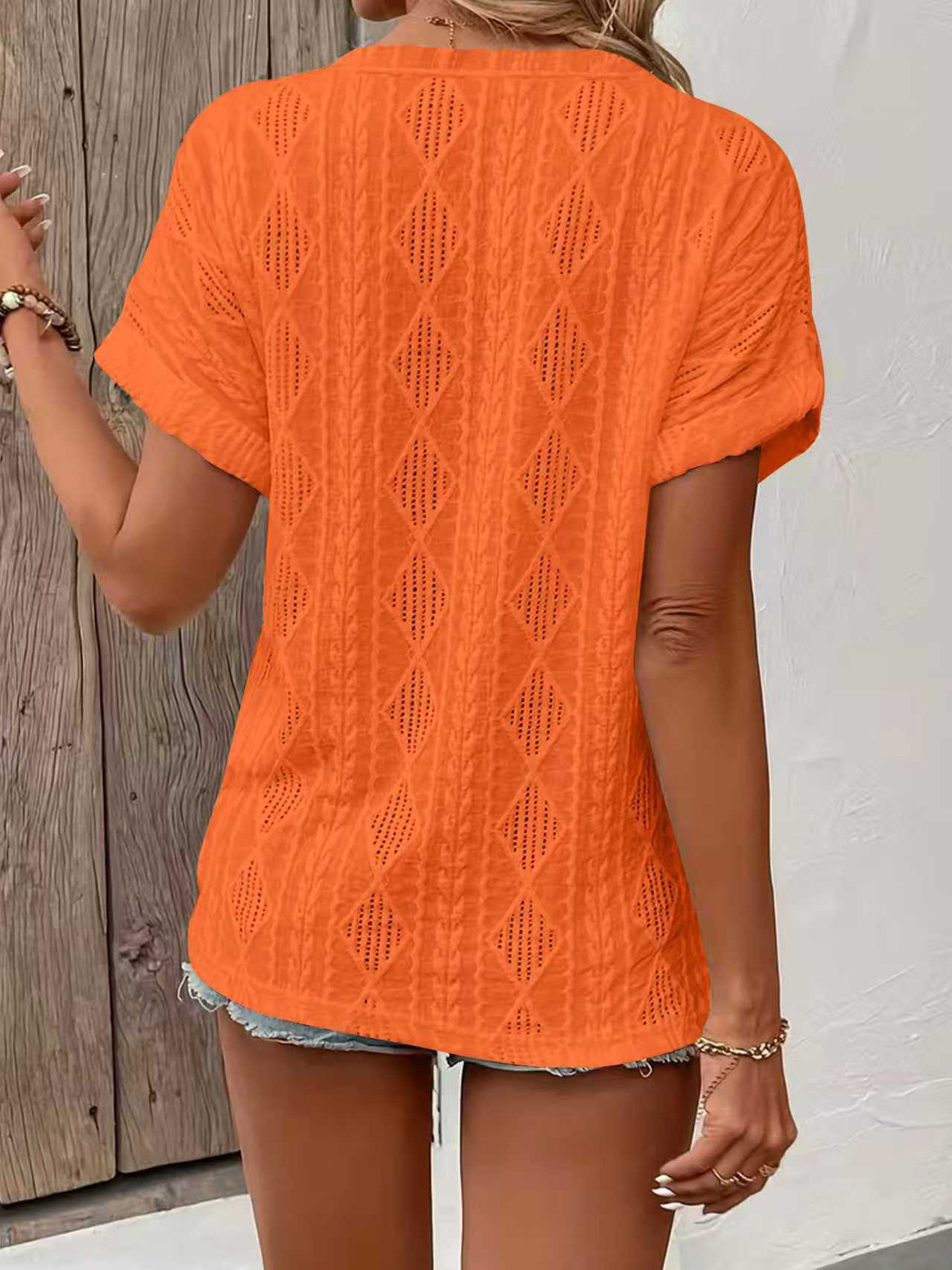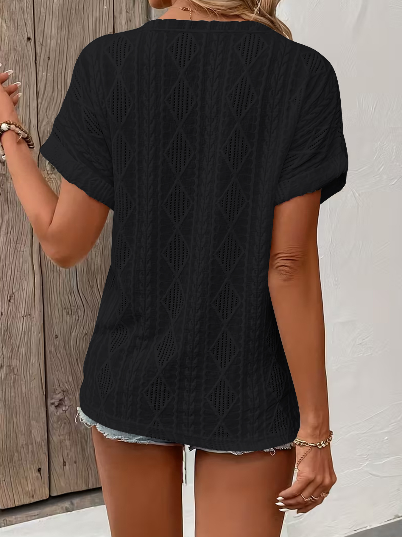 0 Review for Fashionable Casual Solid-Color Buttoned V-Neck T-Shirt For Women