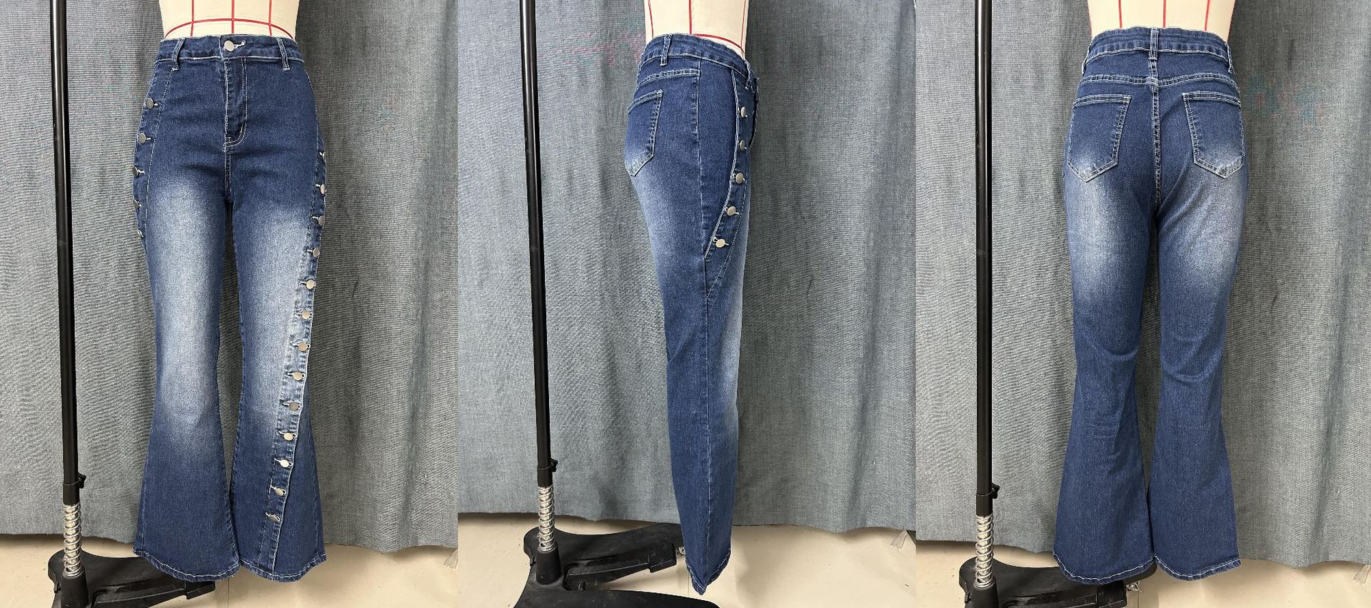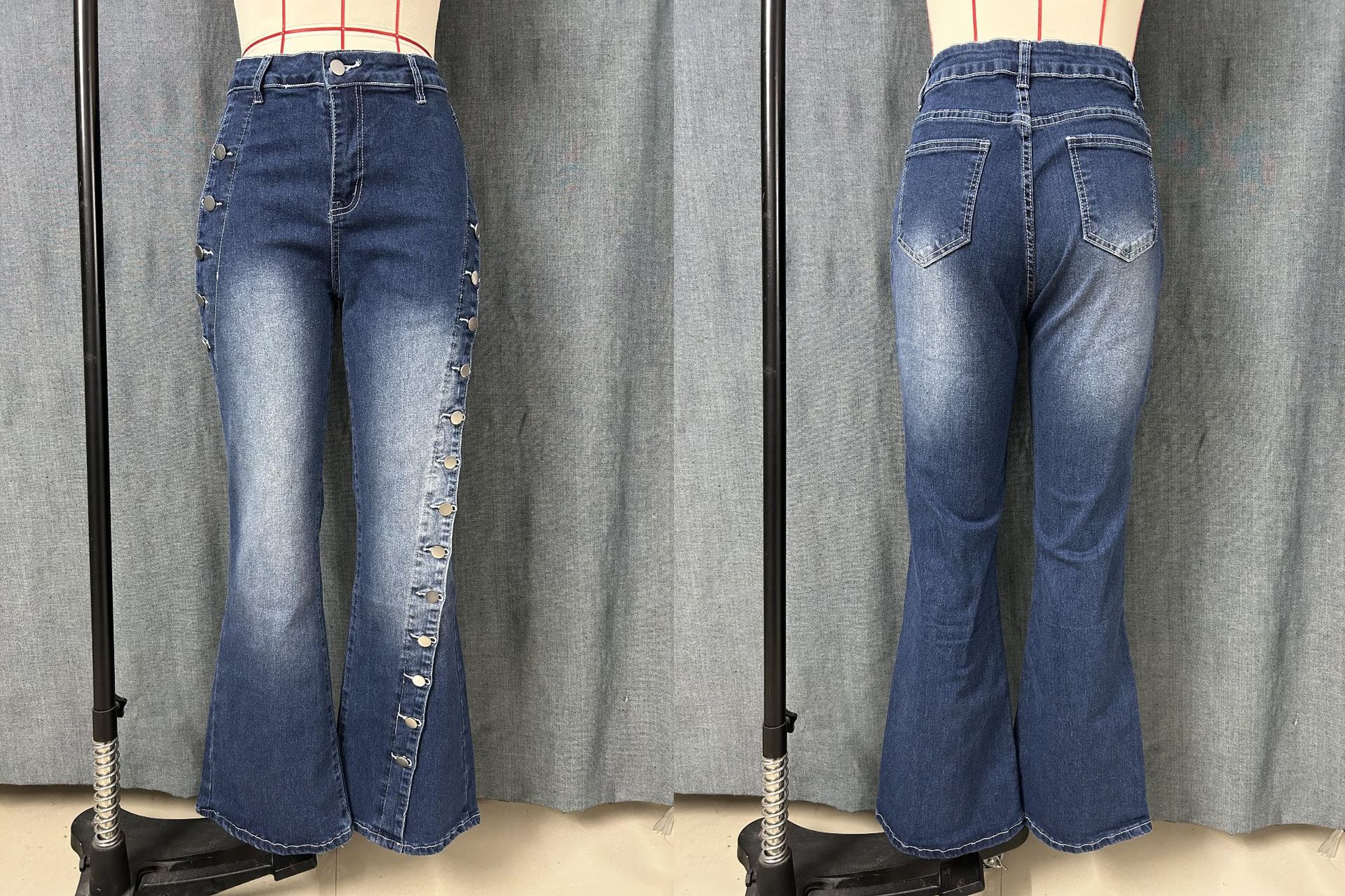 0 Review for Fashionable Slim-fit Solid-color Blue Jeans