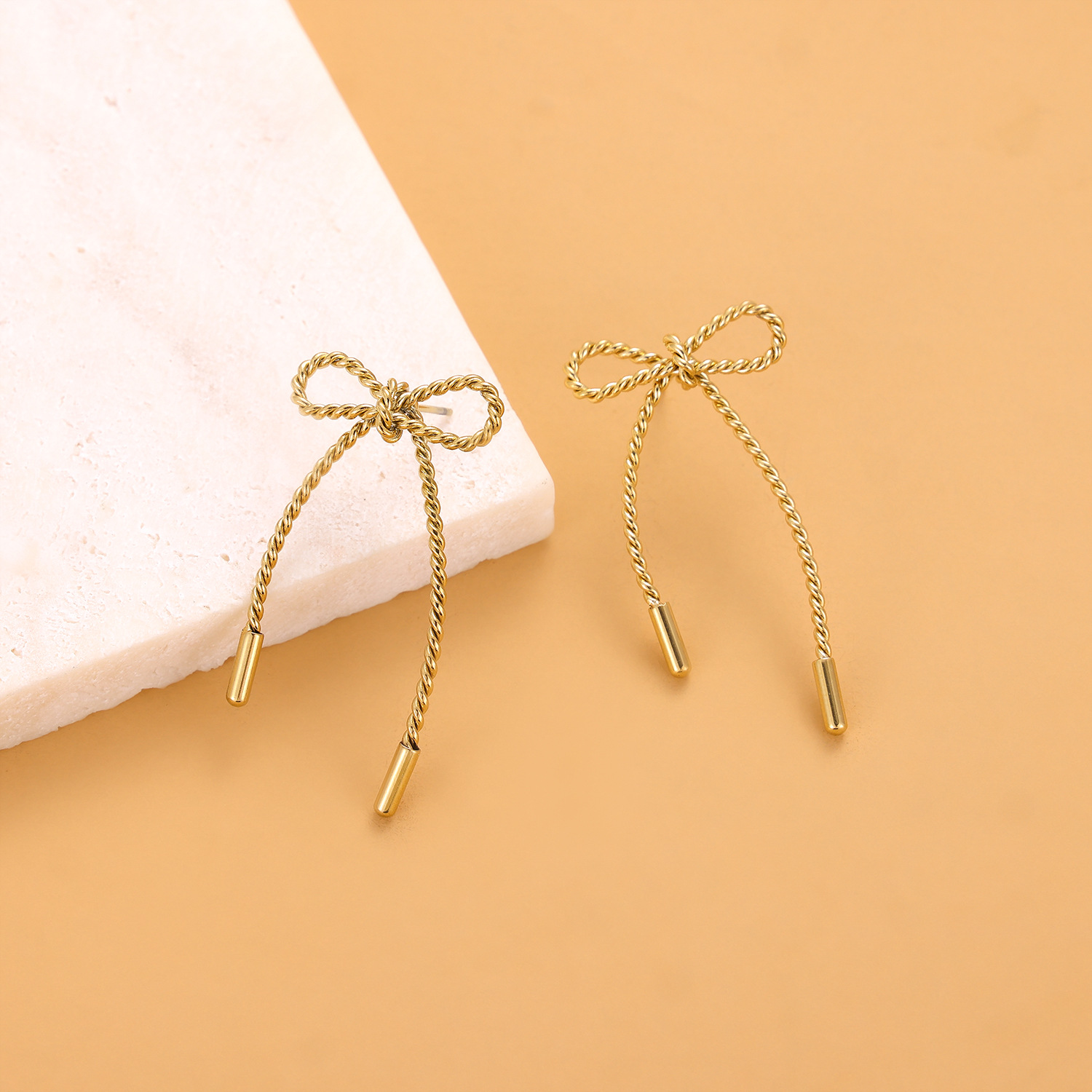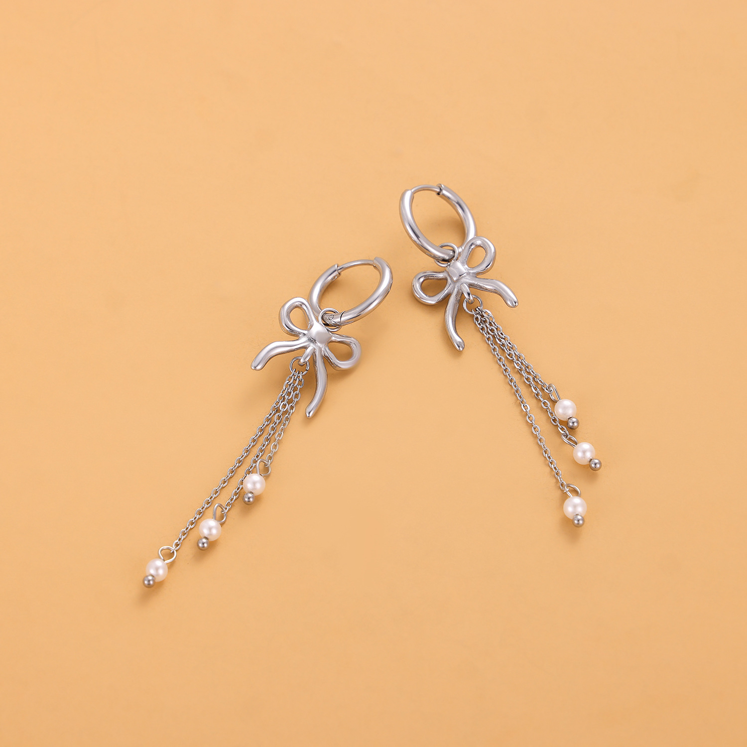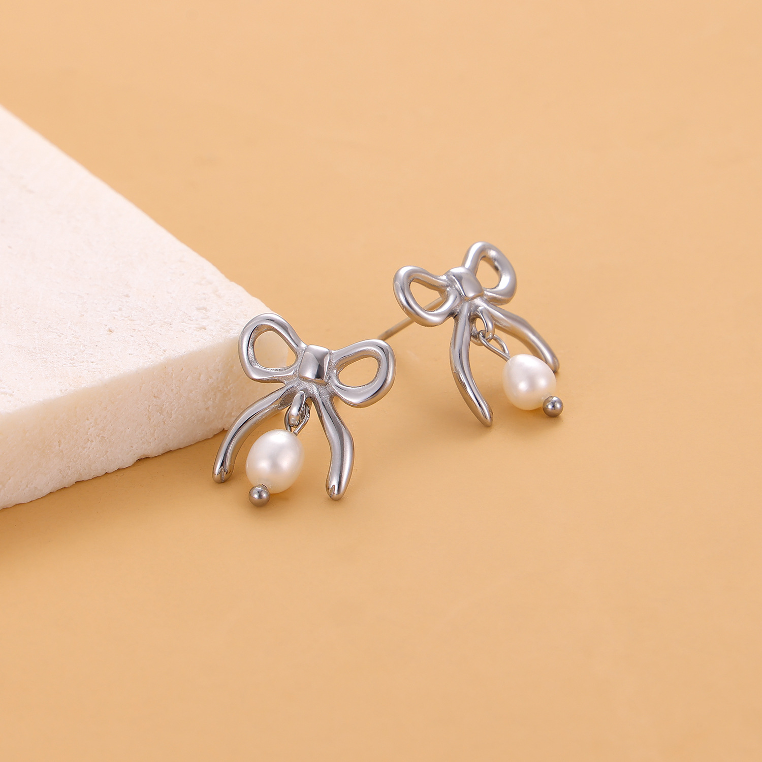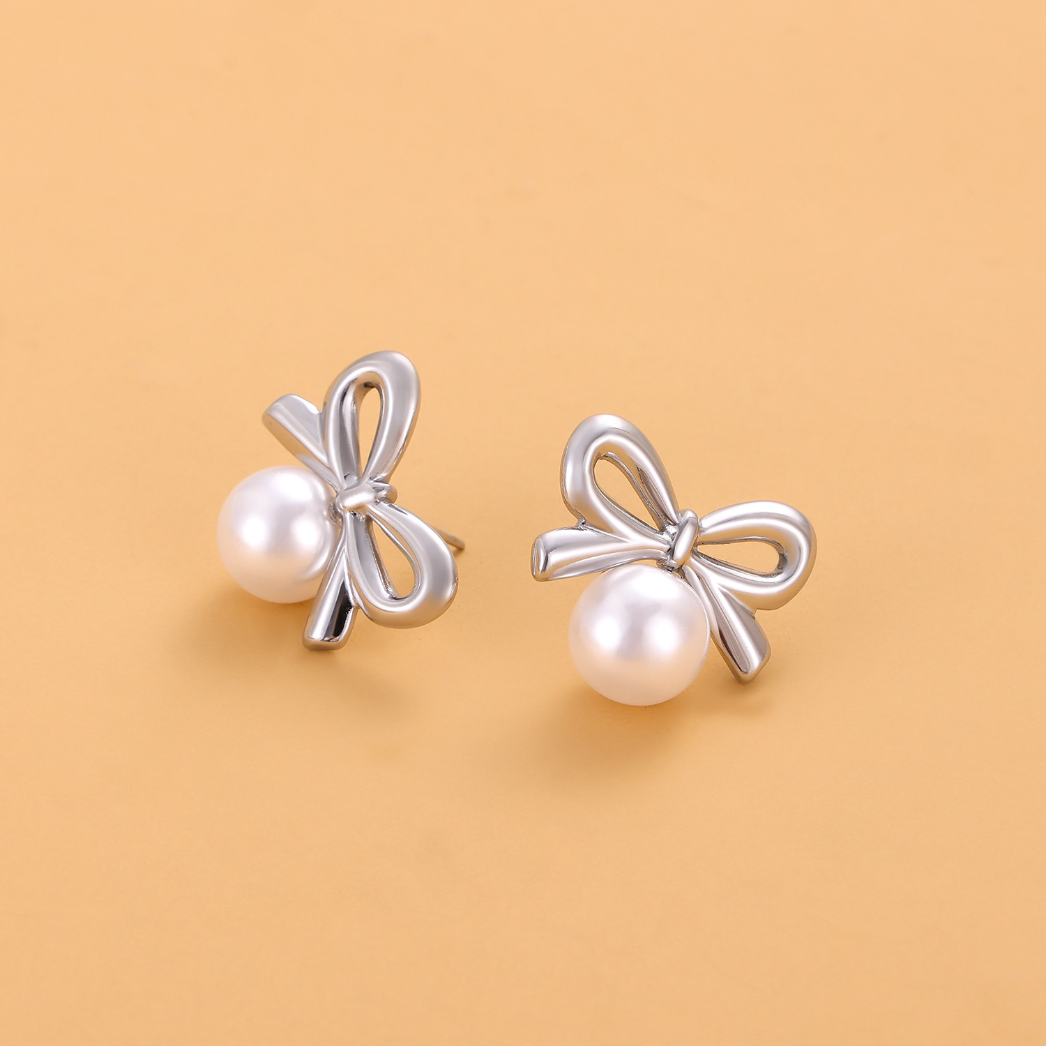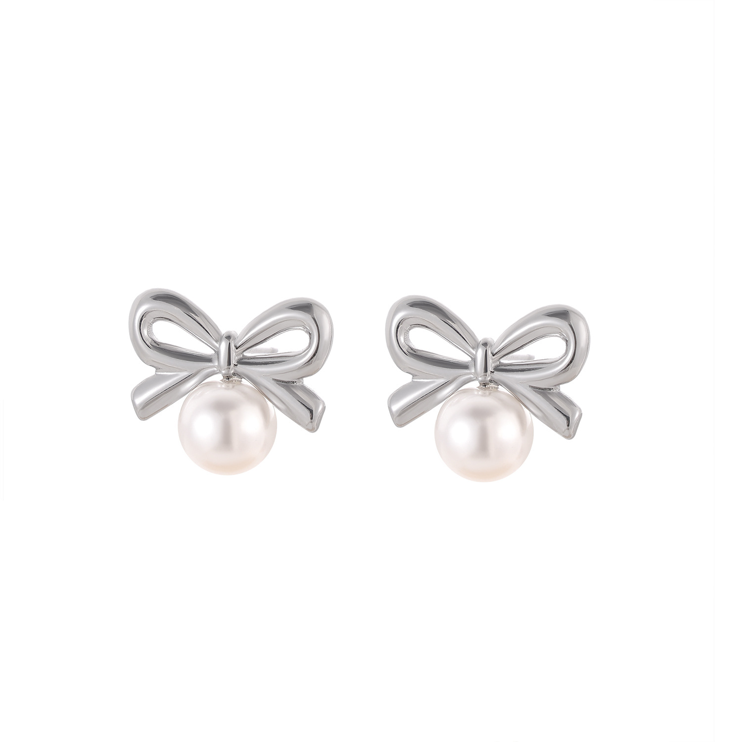 0 Review for Fashionable Stainless Steel Bow Earrings For Women