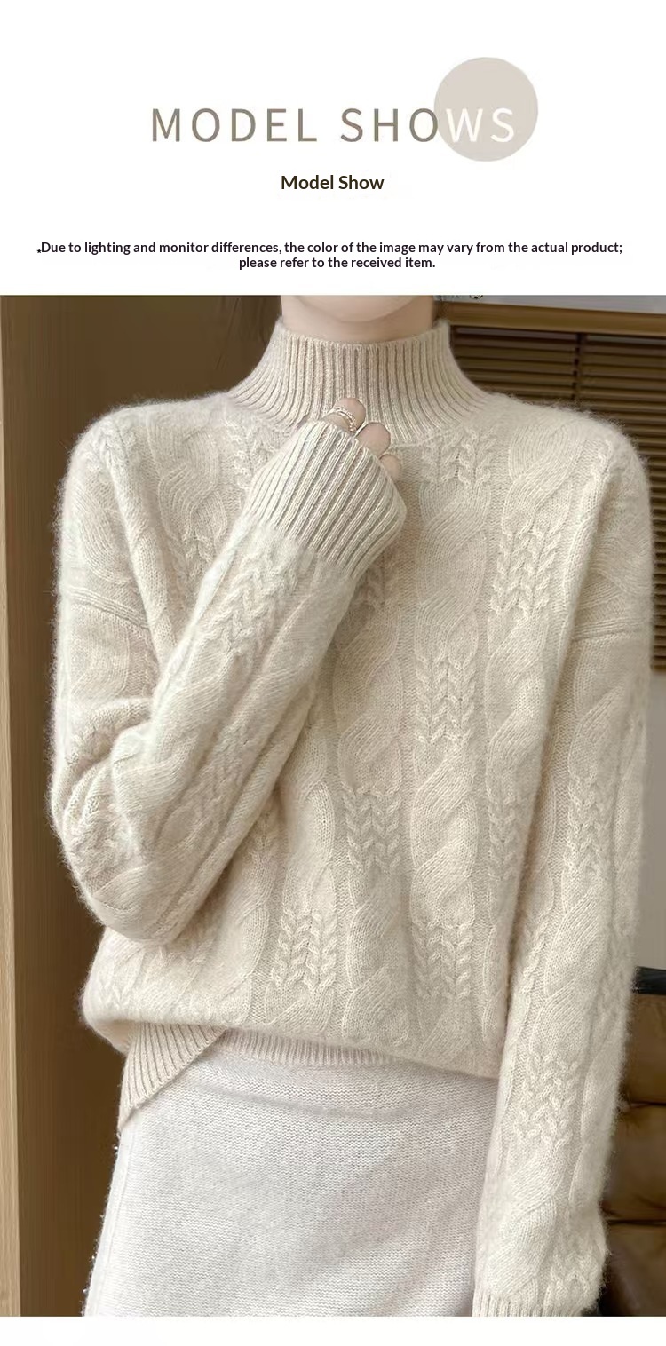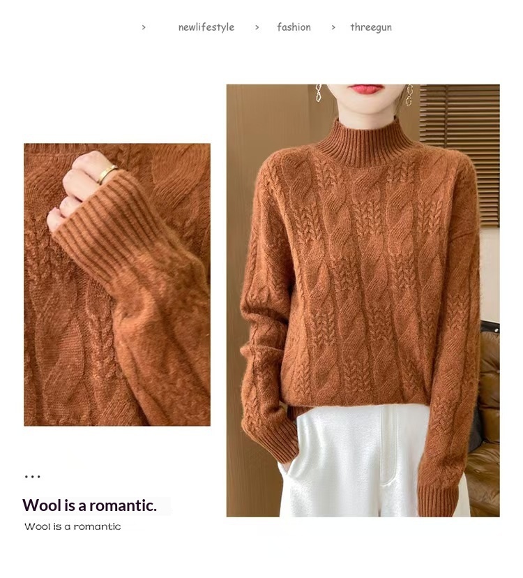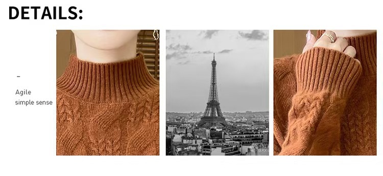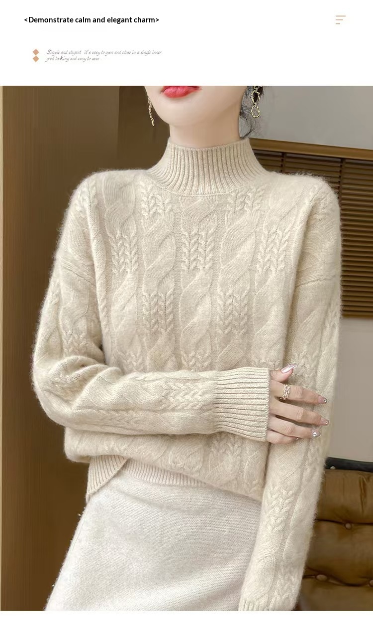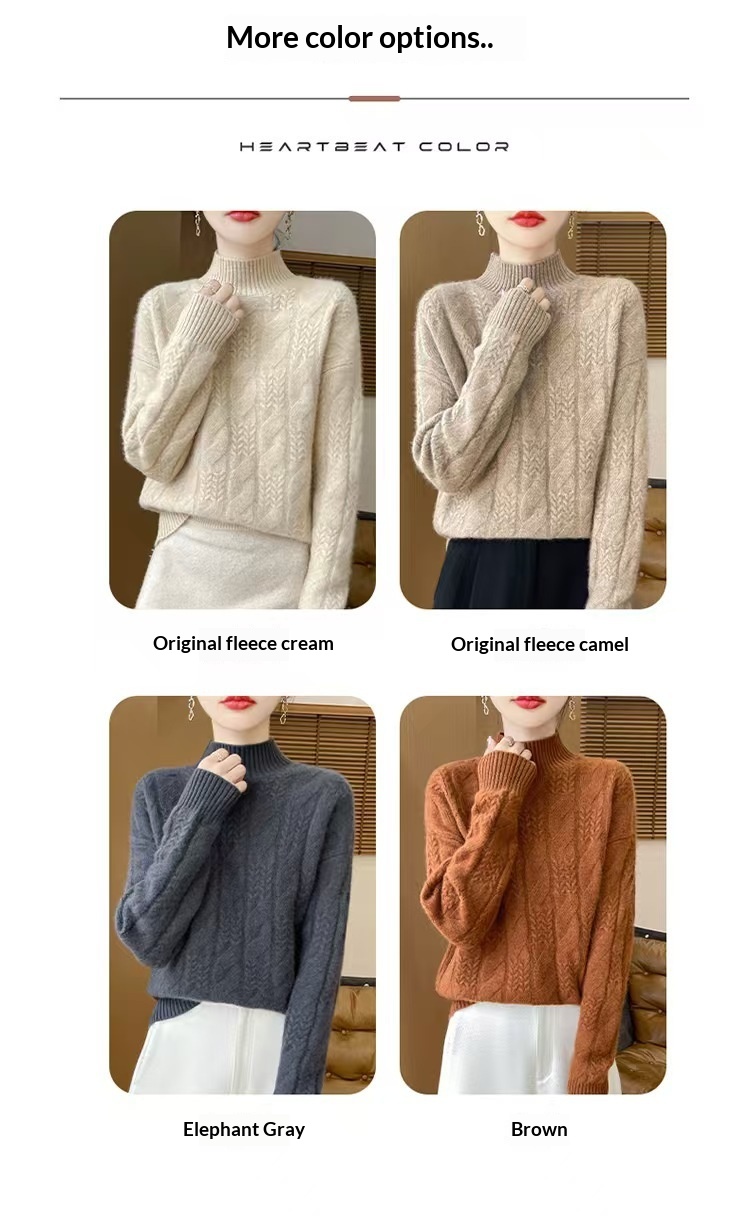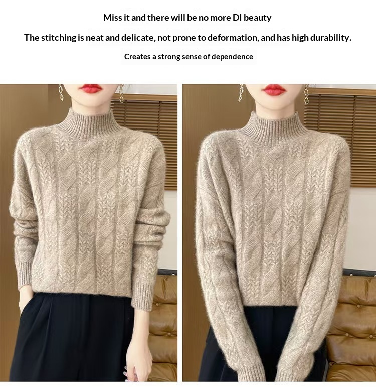 0 Review for Female Solid Color Thickened Jacquard Turtleneck Wool Sweater