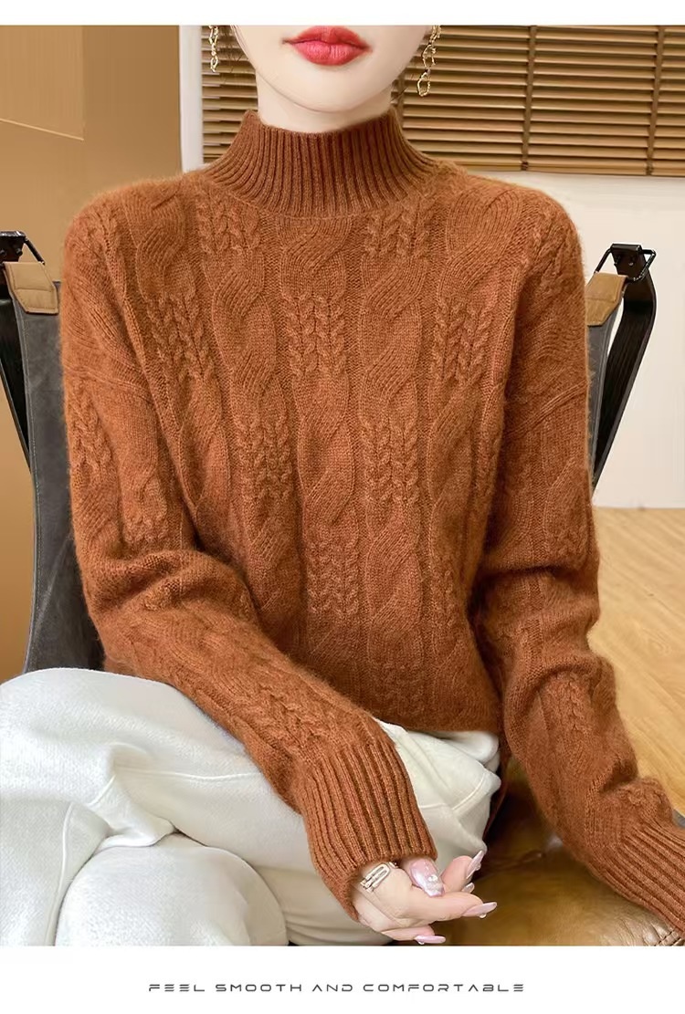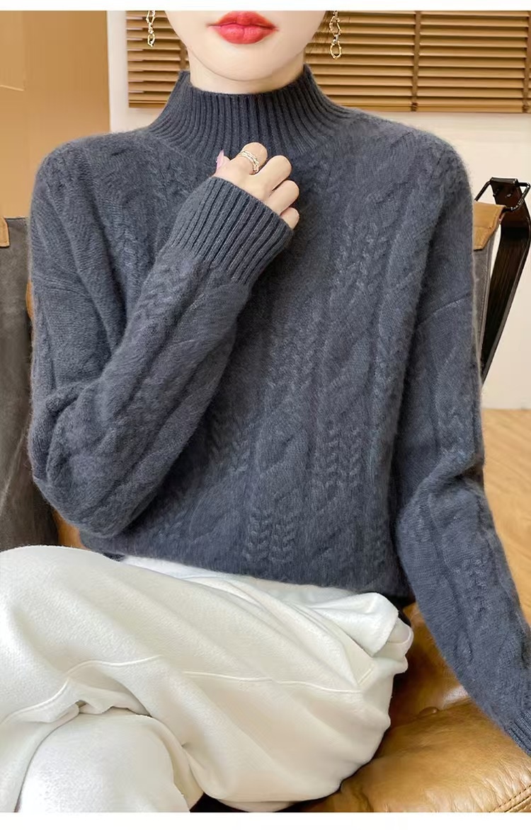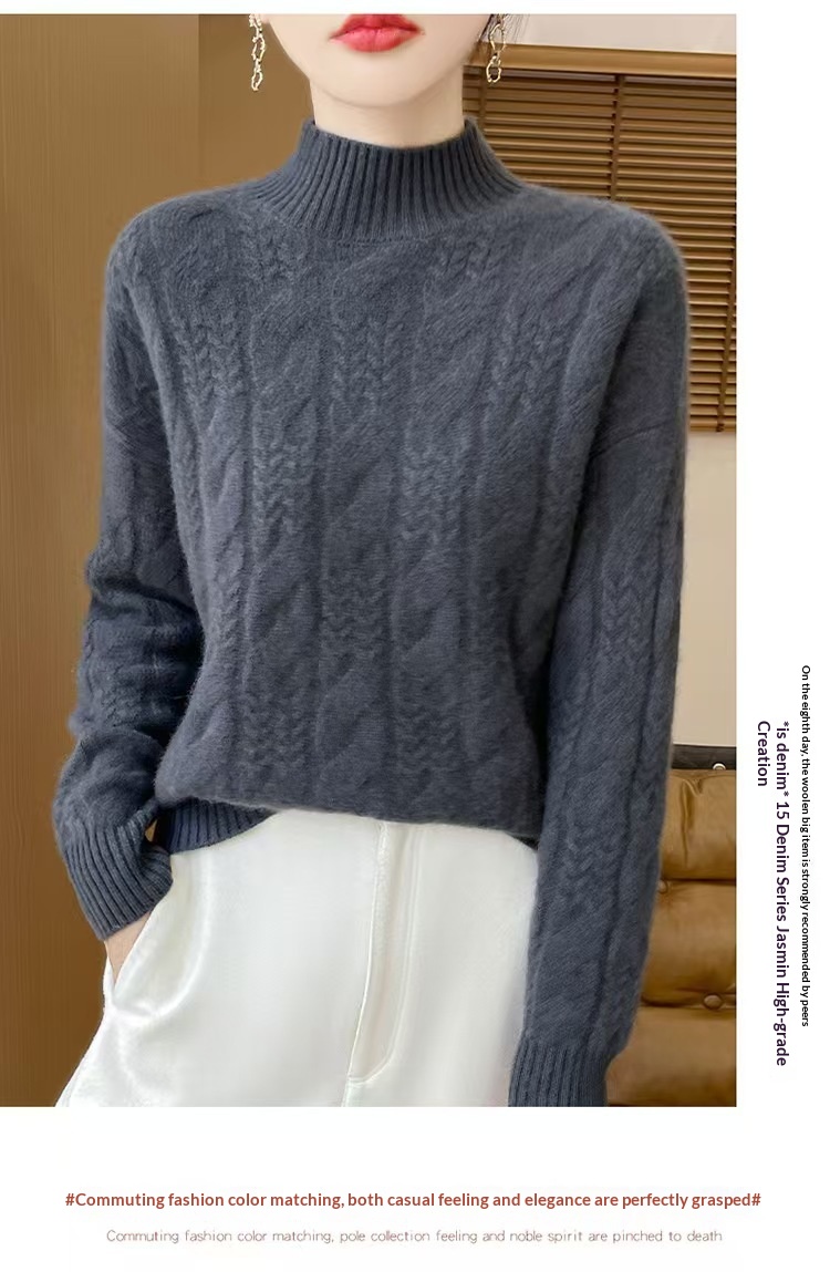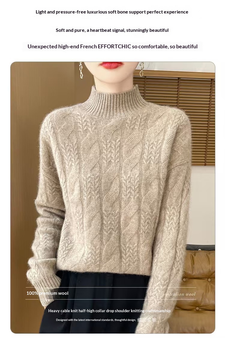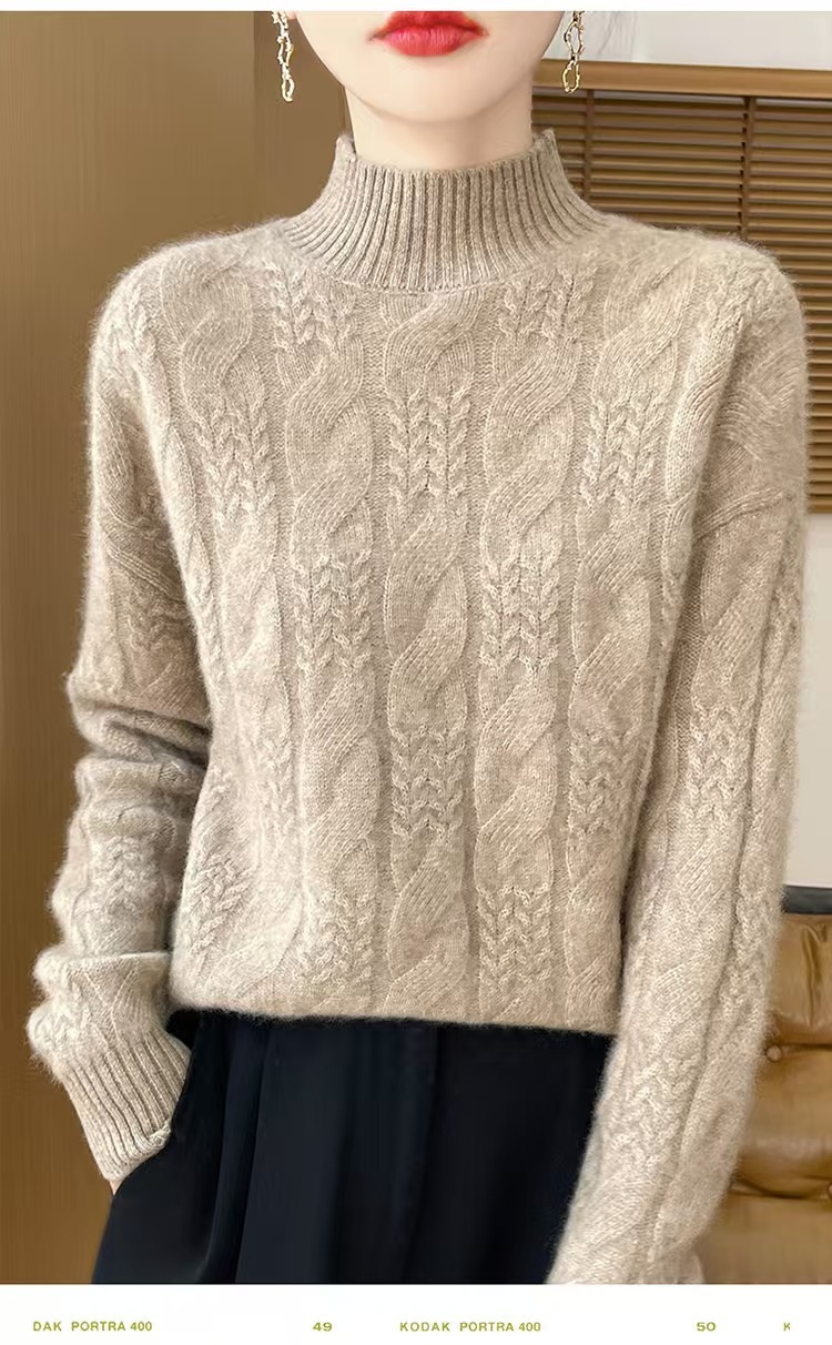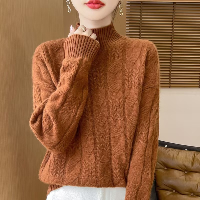 0 Review for Female Solid Color Thickened Jacquard Turtleneck Wool Sweater