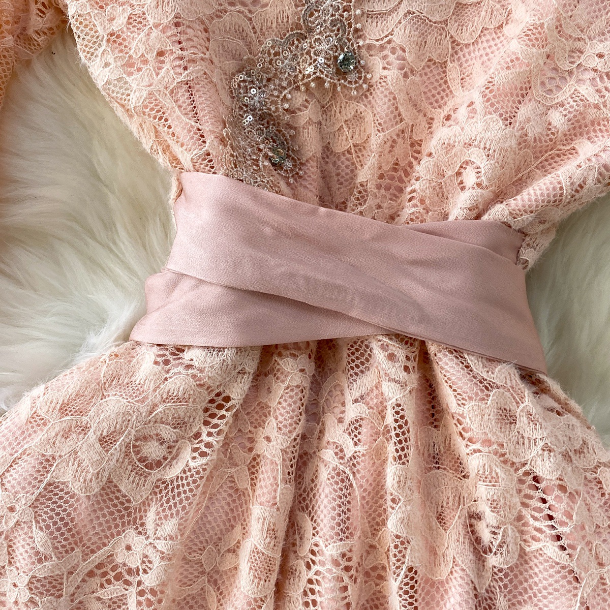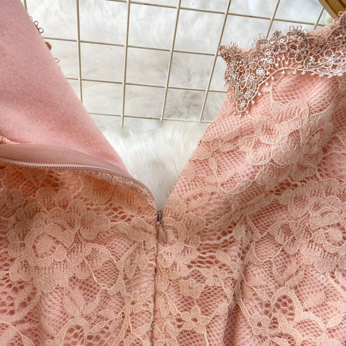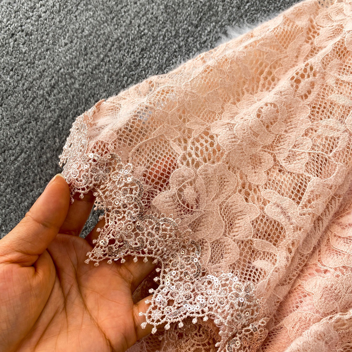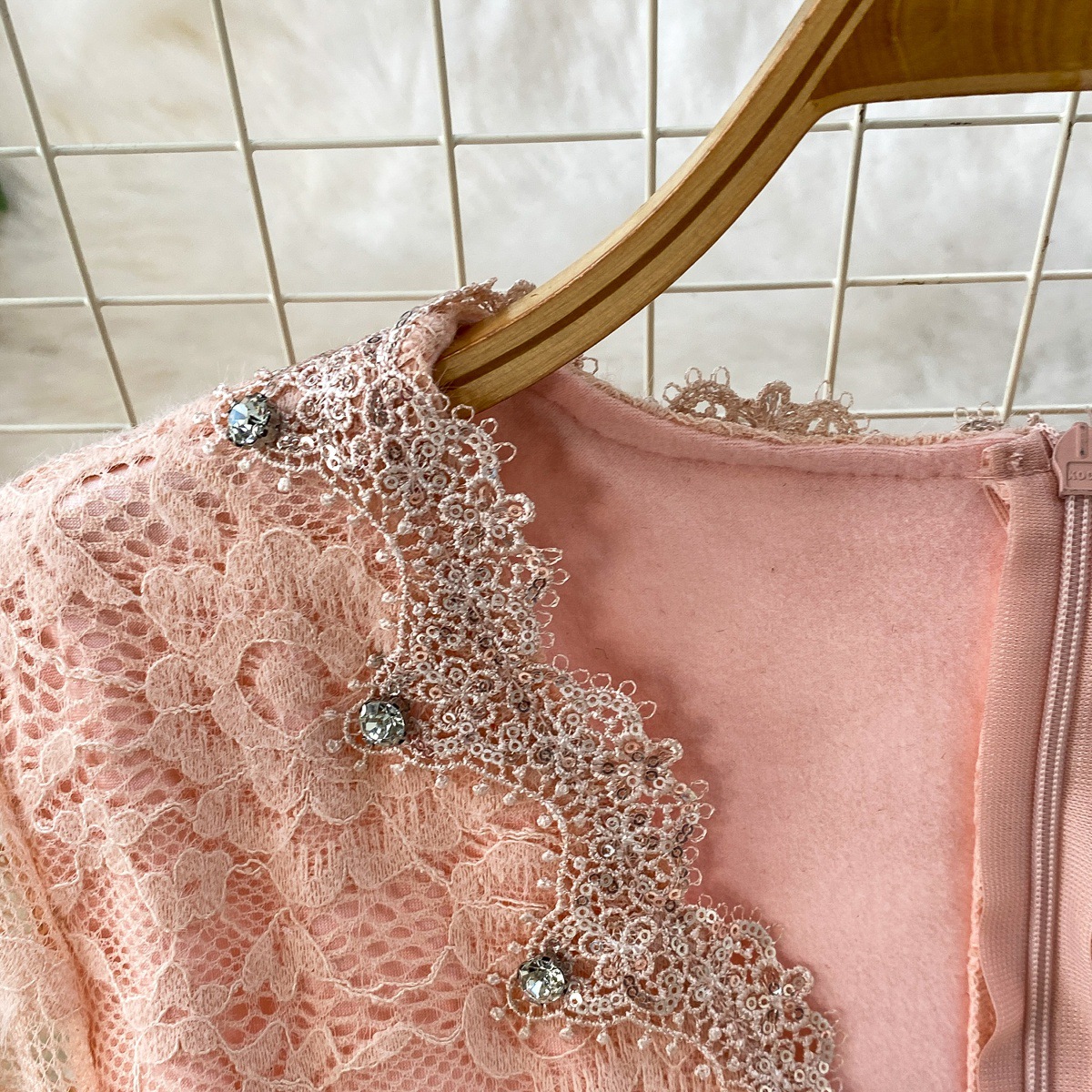 0 Review for Flocked Lace V-Neck Dress With Diamond Embellishments