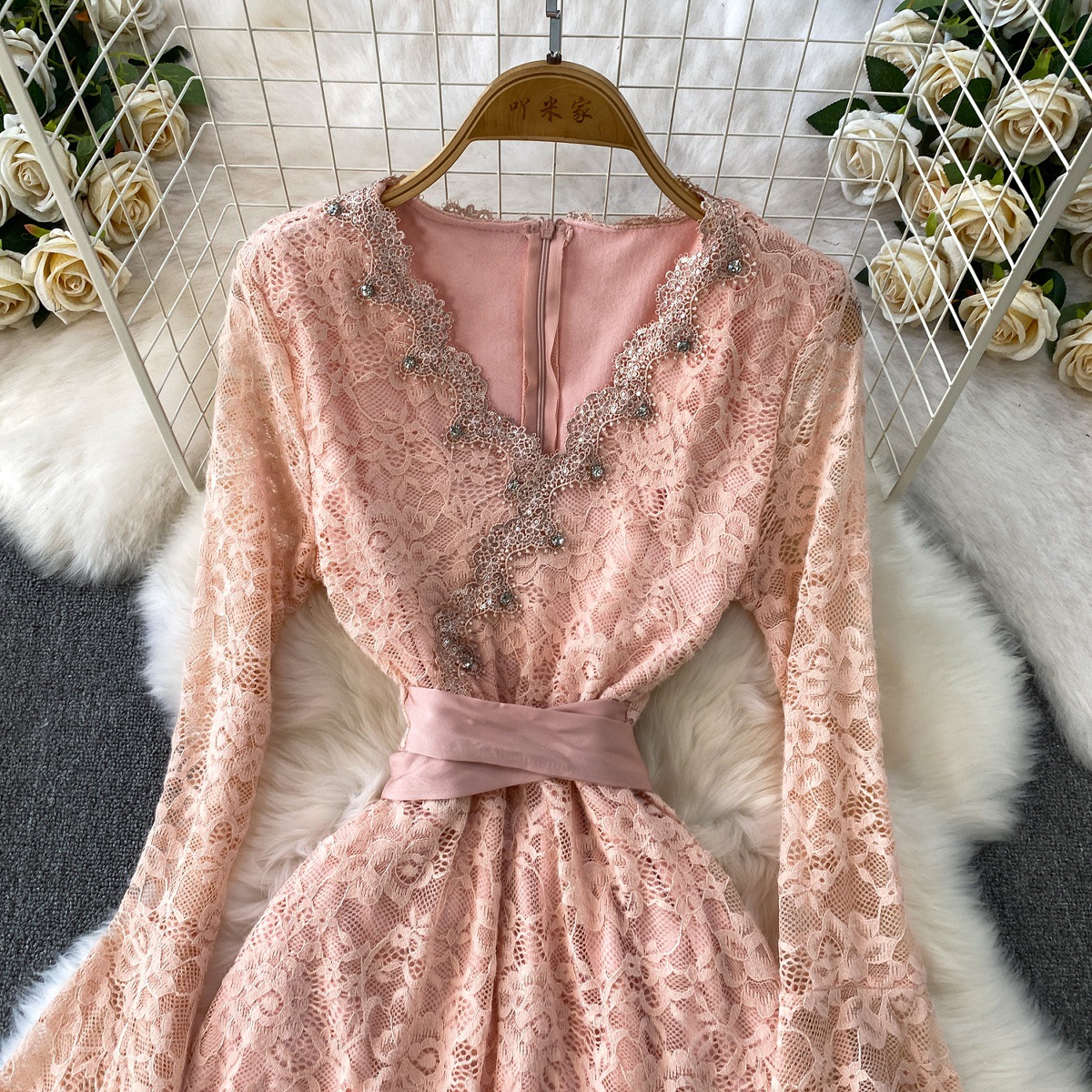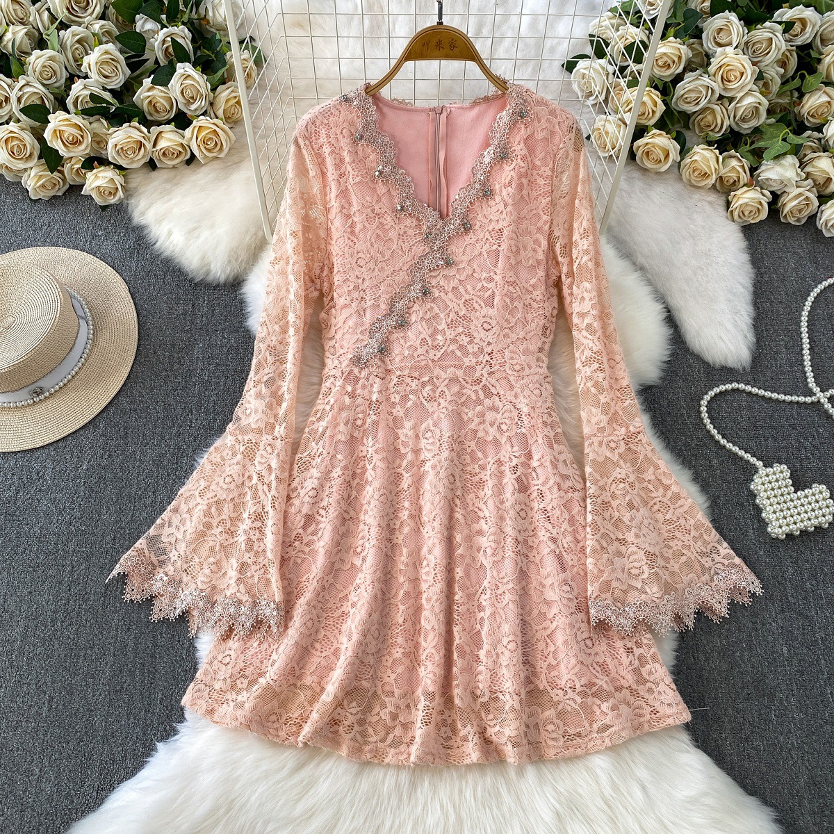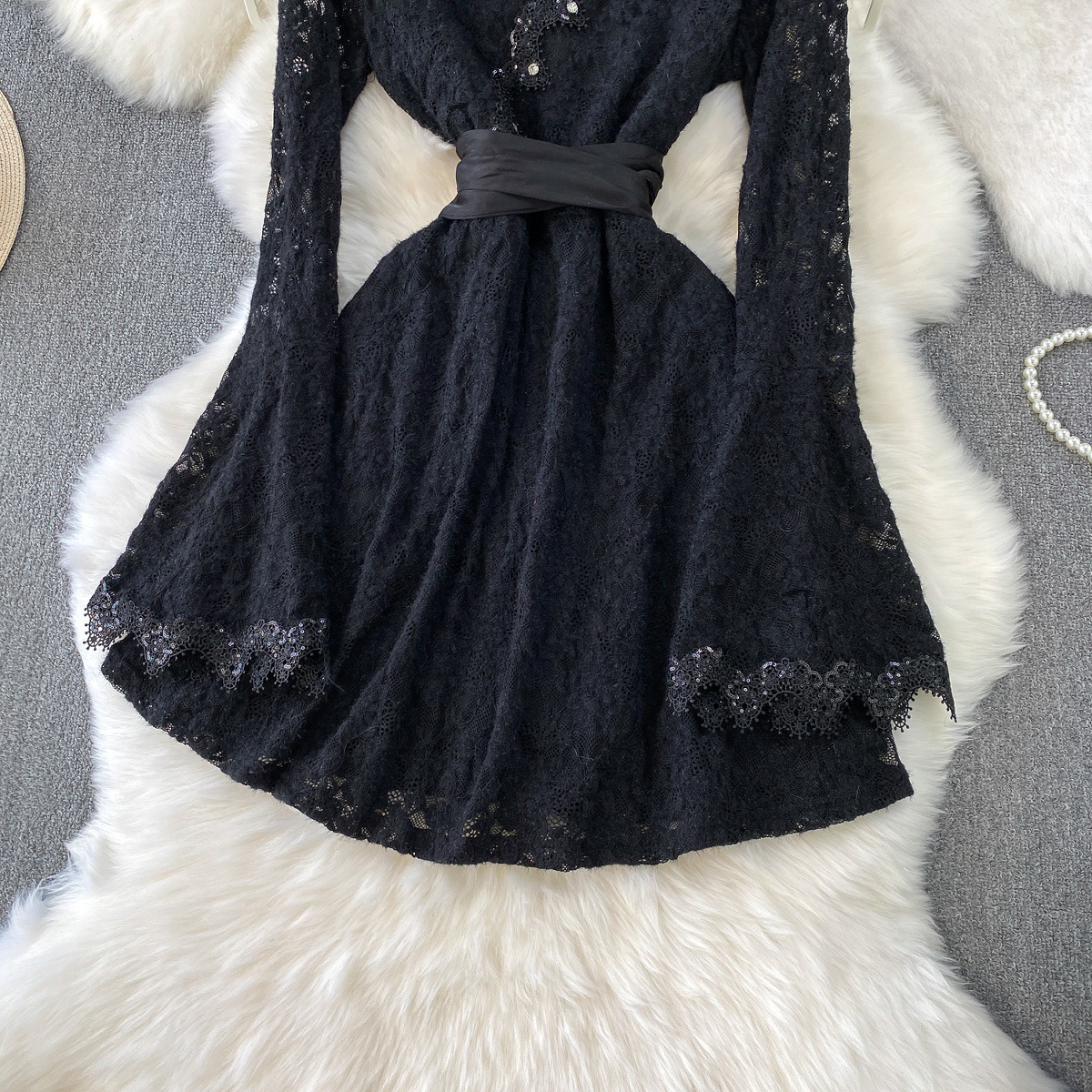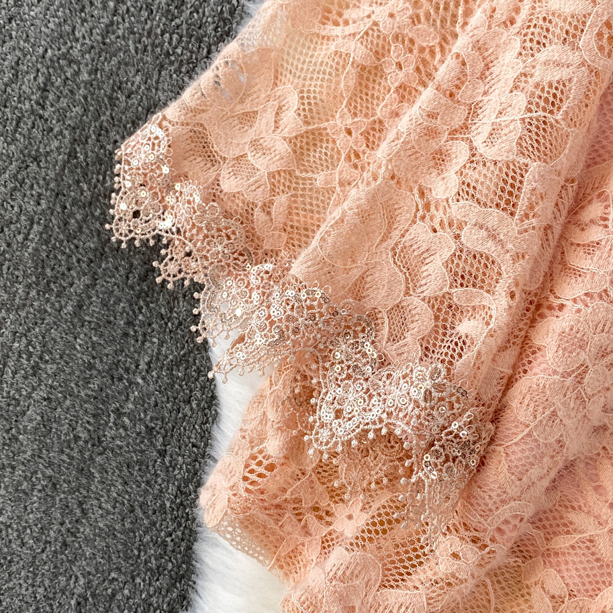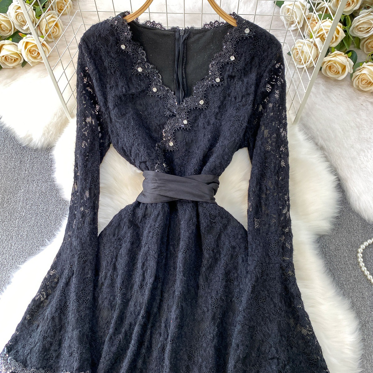 0 Review for Flocked Lace V-Neck Dress With Diamond Embellishments