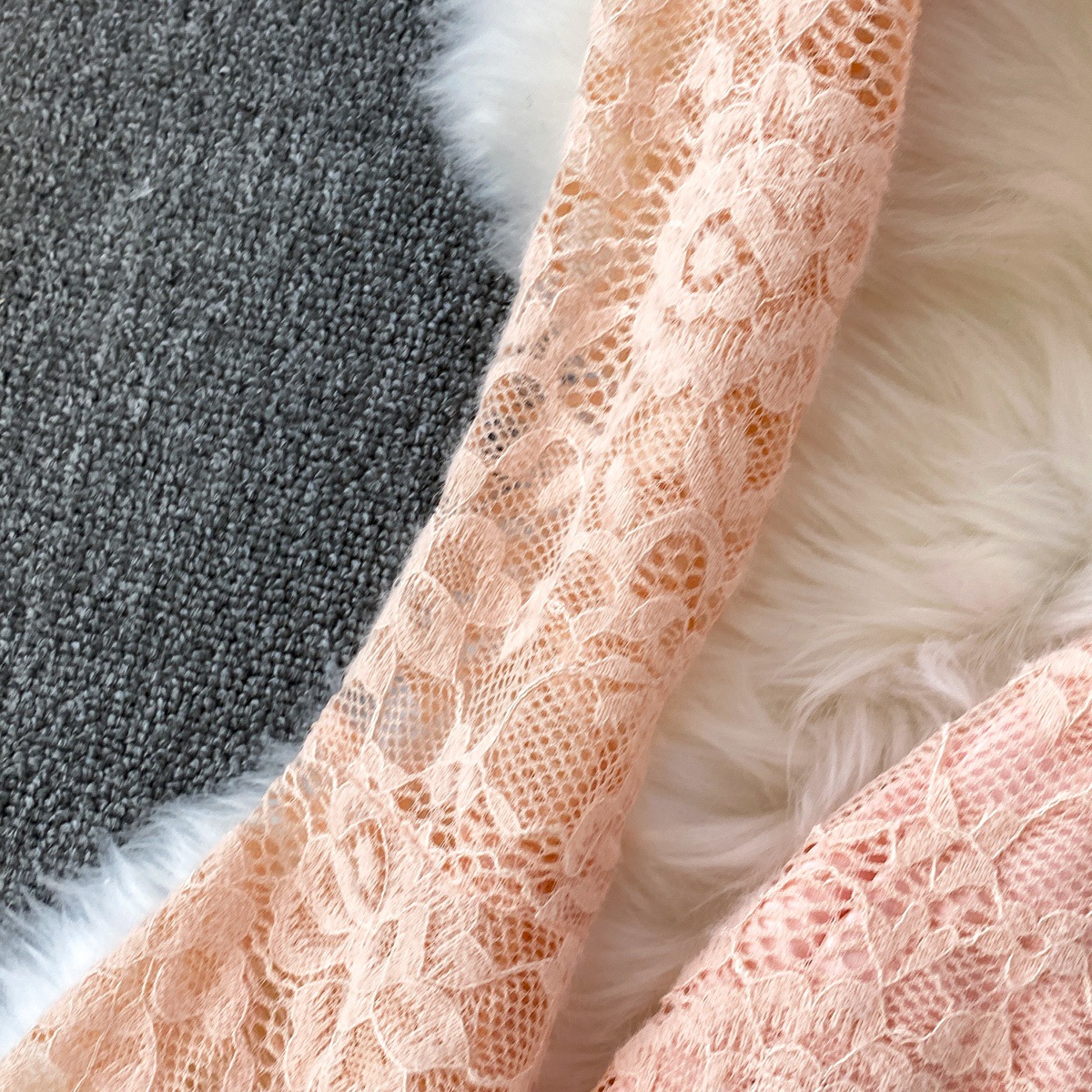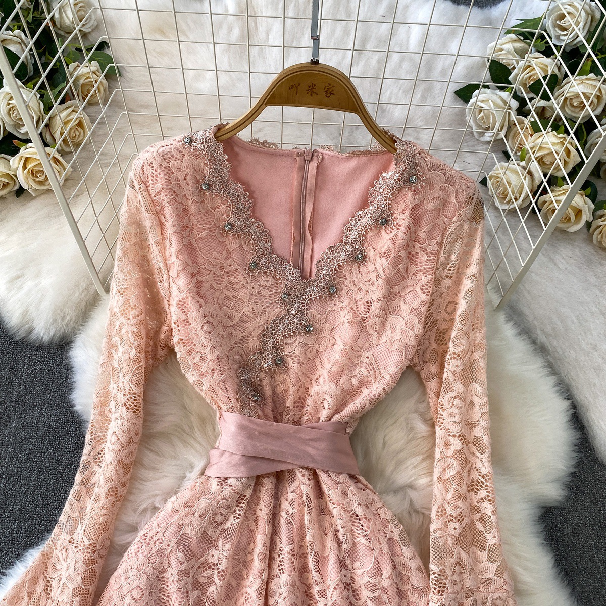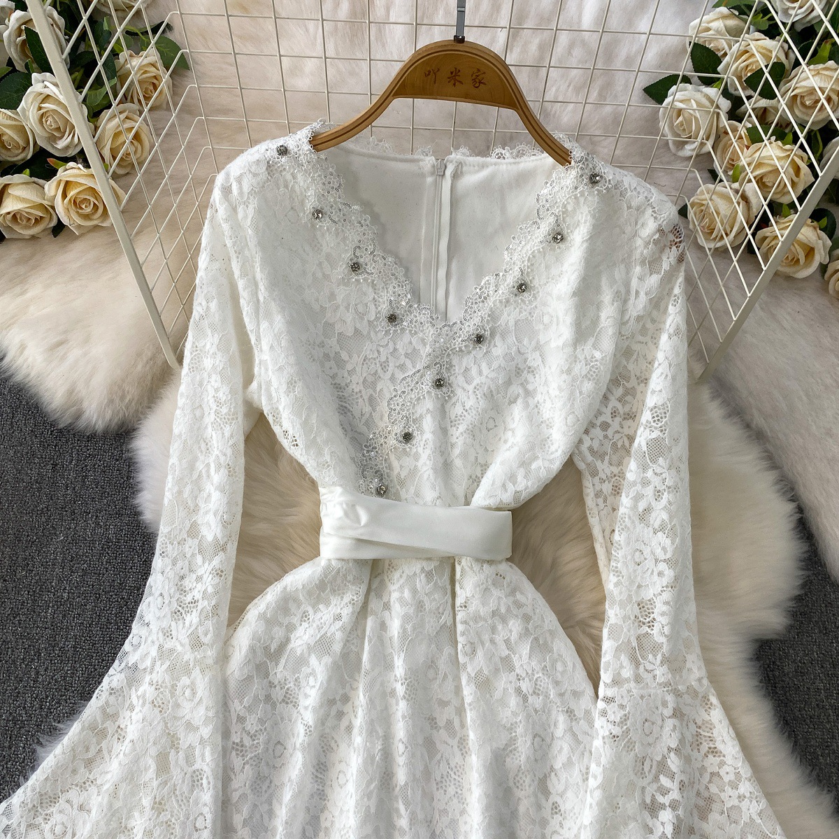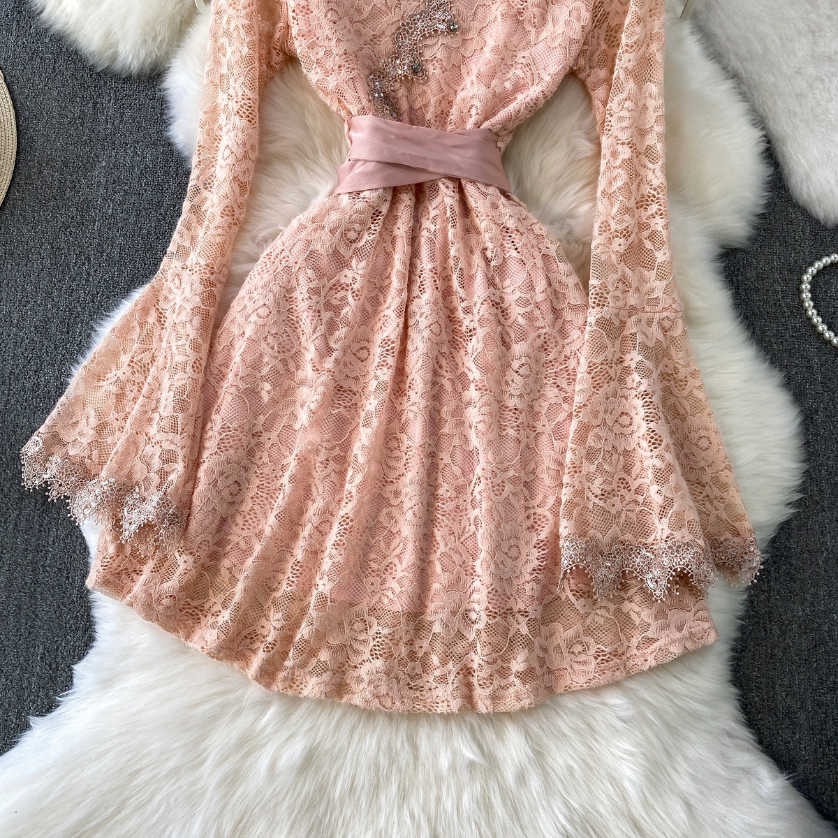 0 Review for Flocked Lace V-Neck Dress With Diamond Embellishments