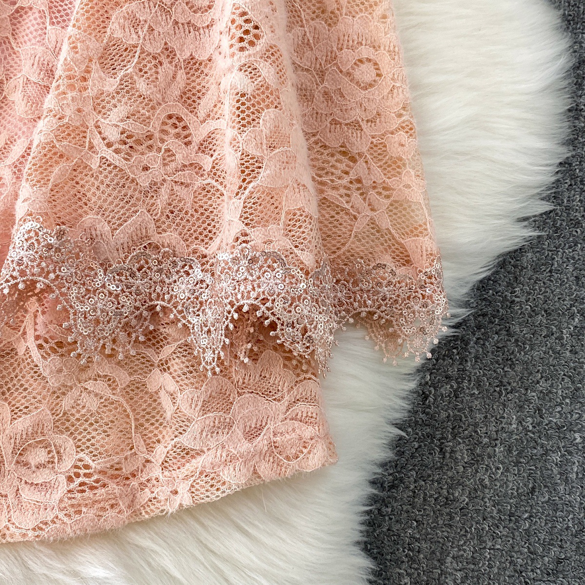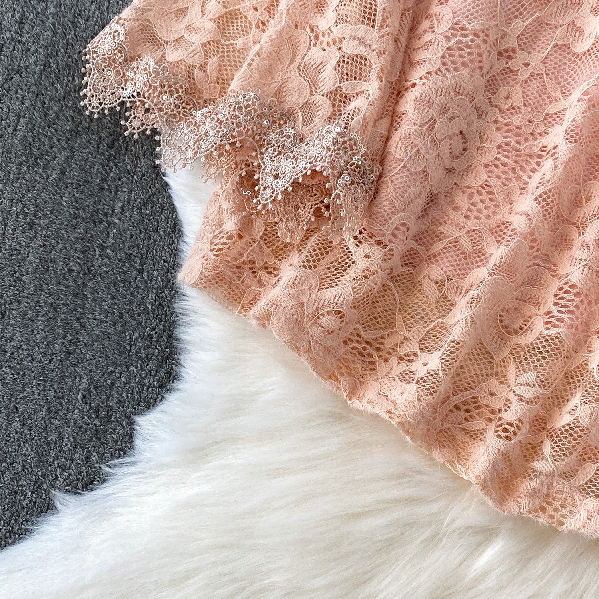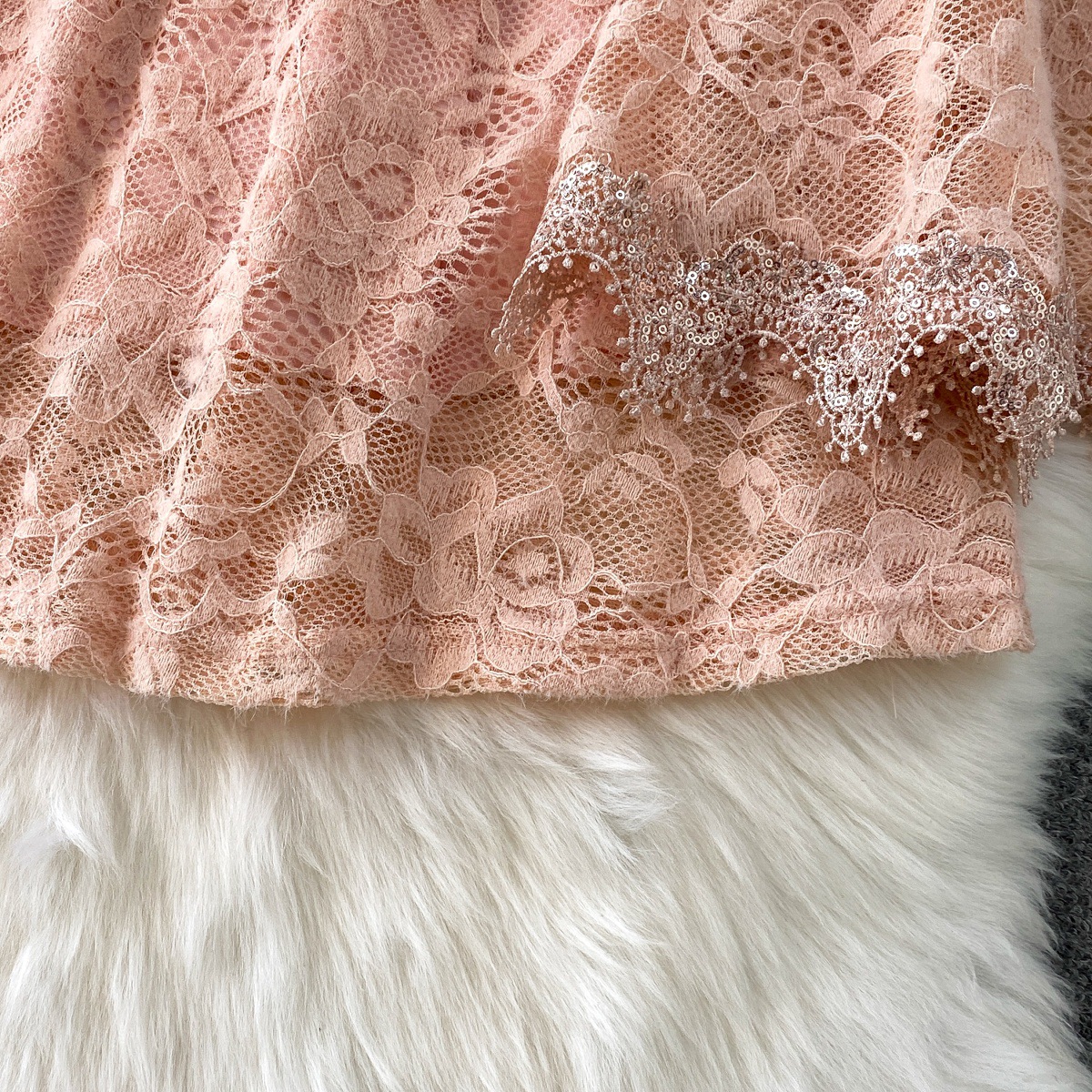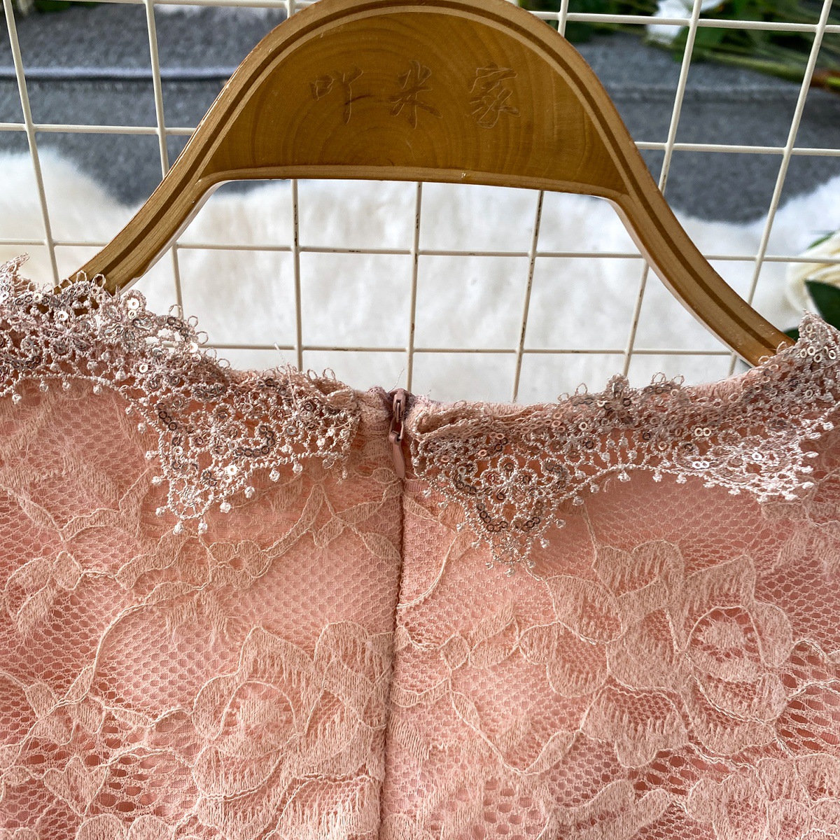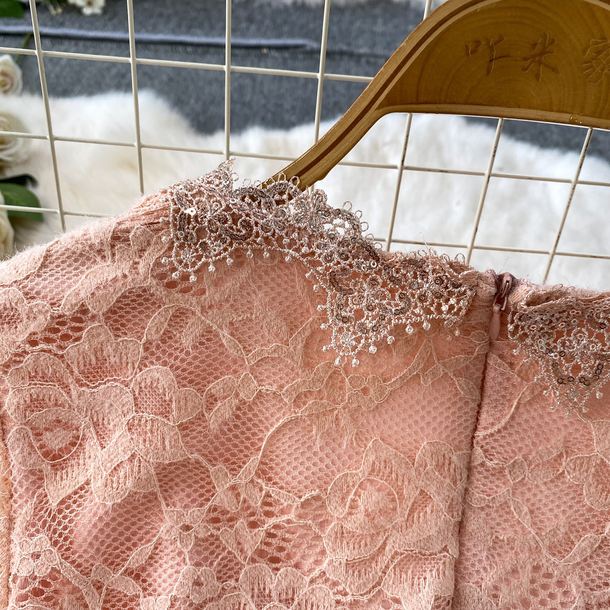 0 Review for Flocked Lace V-Neck Dress With Diamond Embellishments