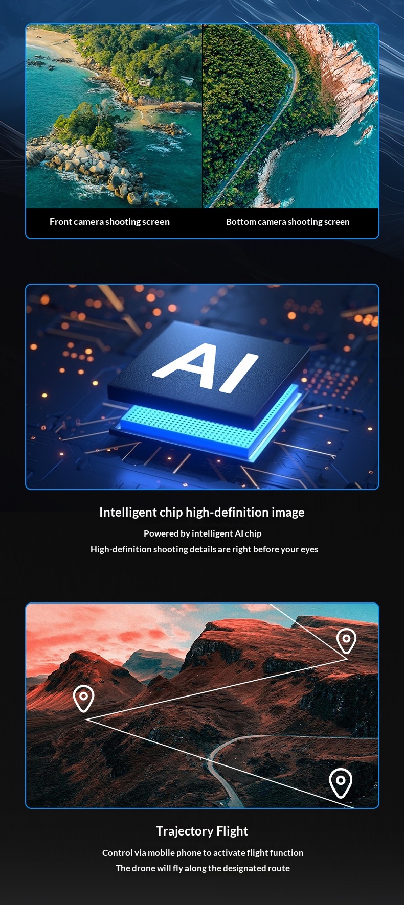 Special Features: Three-Axis Mechanical Gimbal Stabilization + Laser Obstacle Avoidance