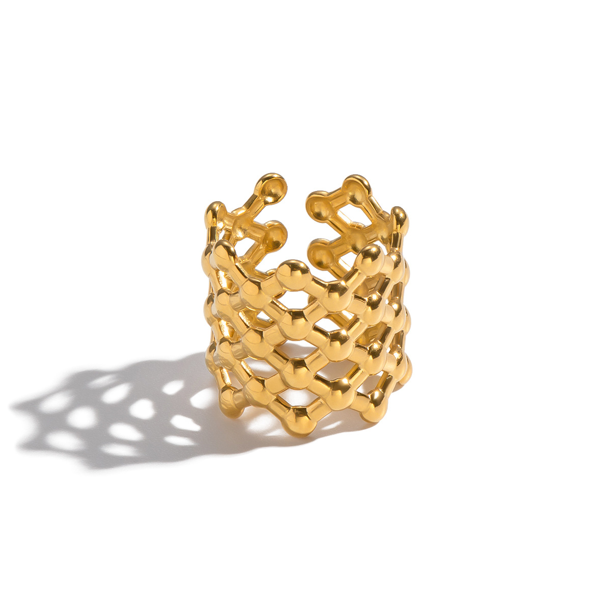 0 Review for French-style Vintage Grid-pattern Geometric Open-ring Ring