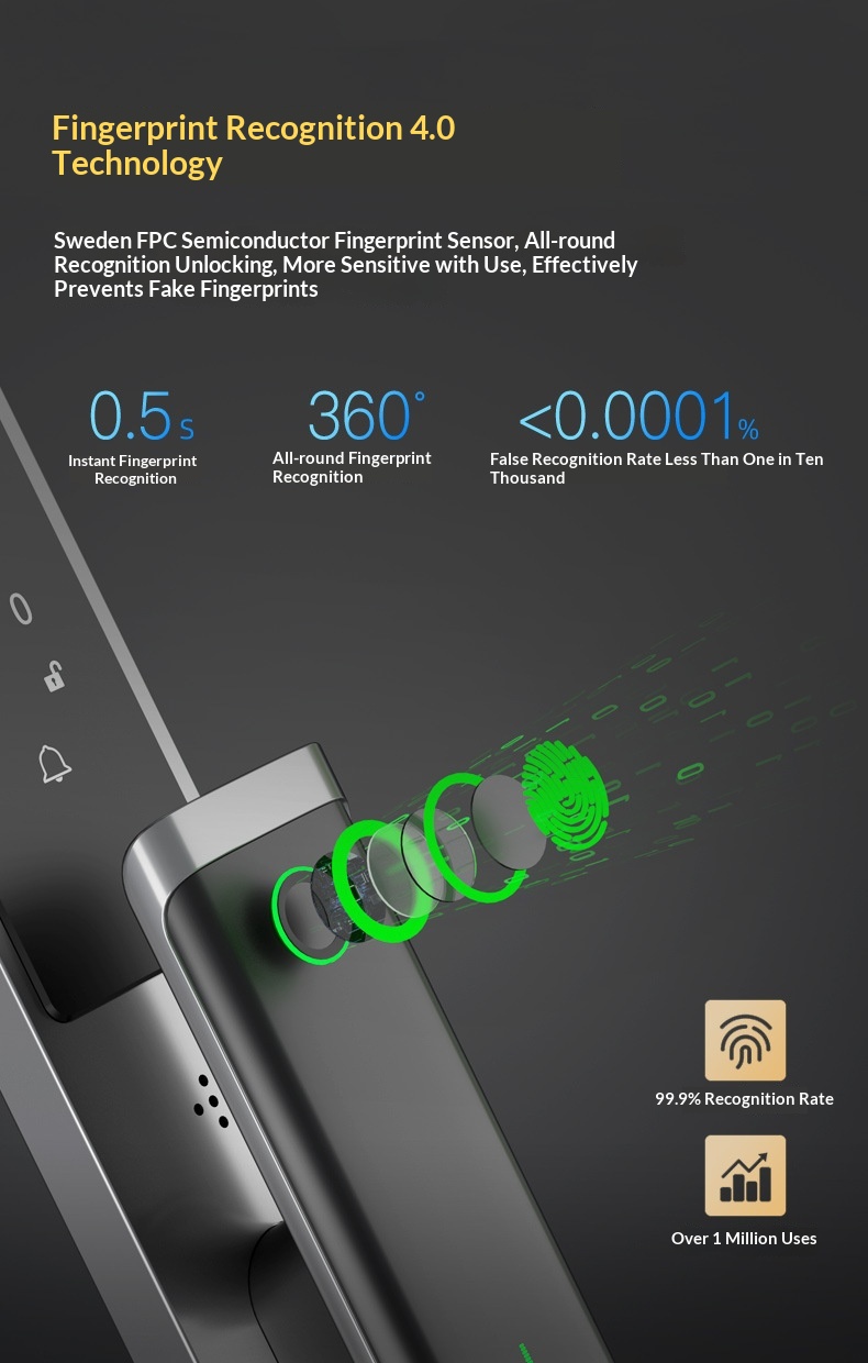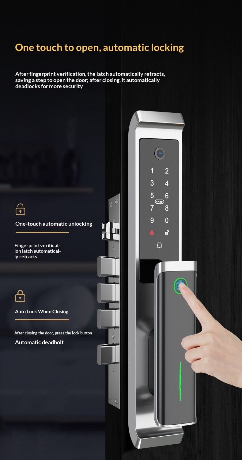 Fully Automatic Fingerprint Lock With A Video Peephole For Home Security Doors