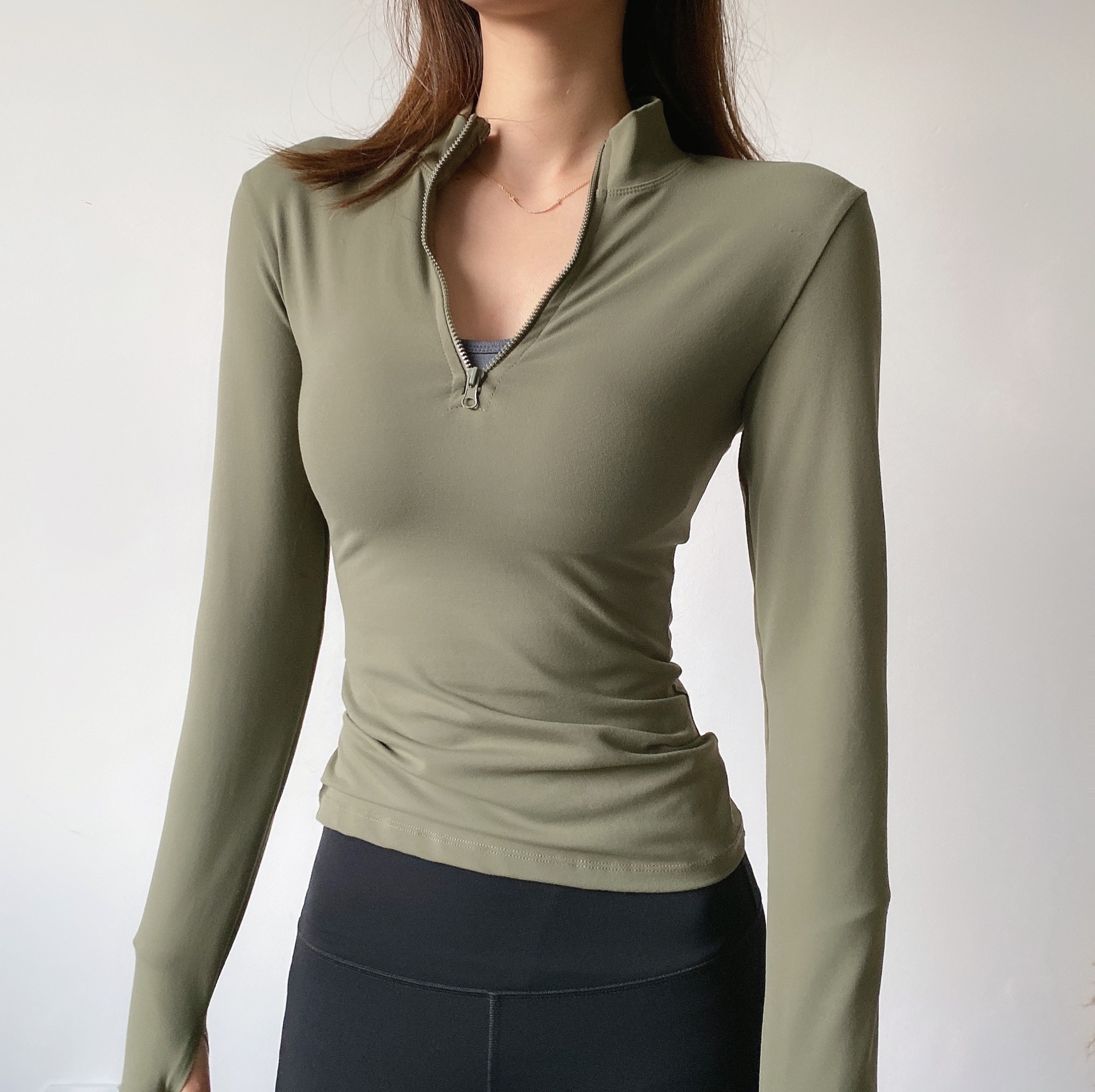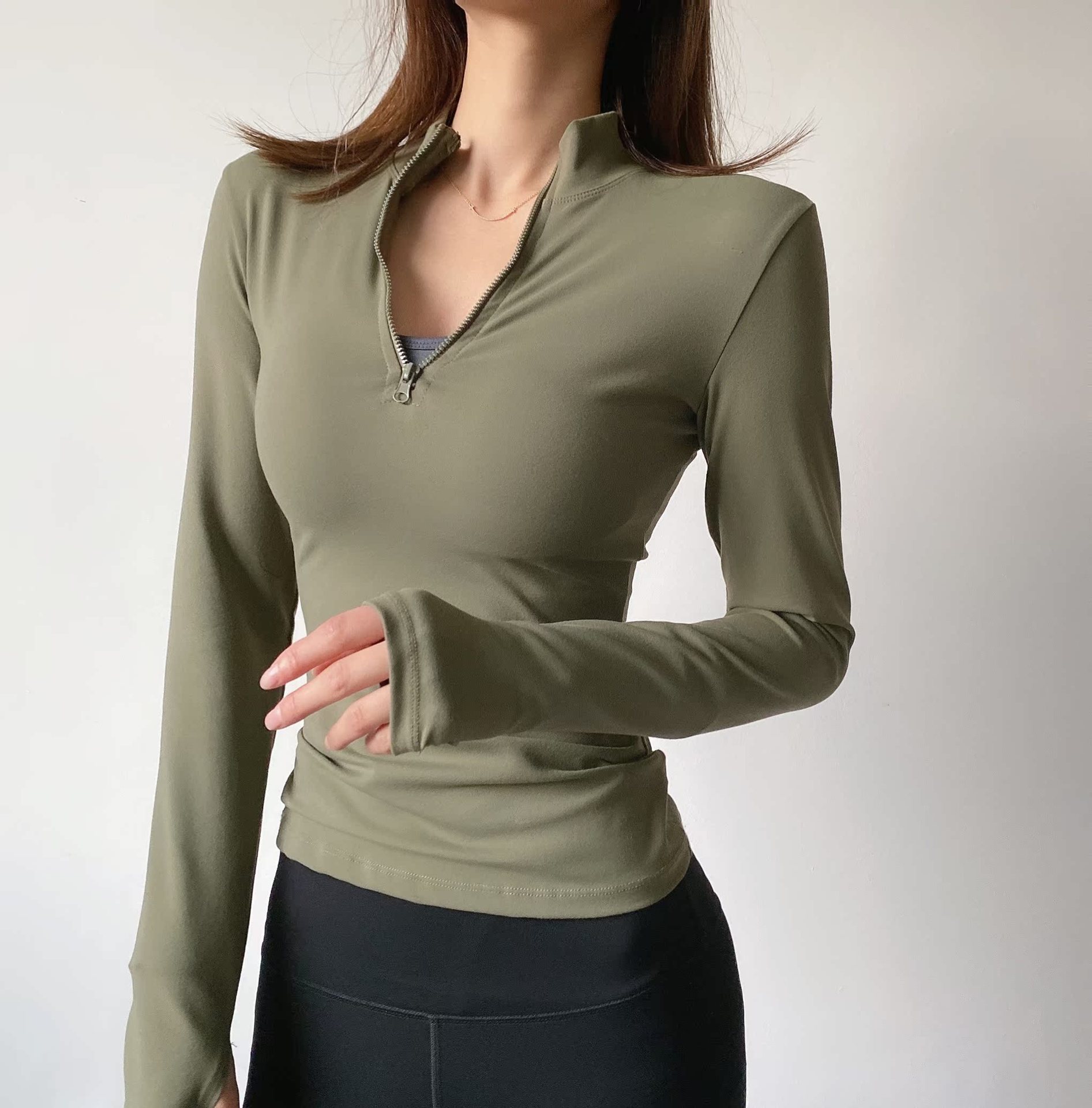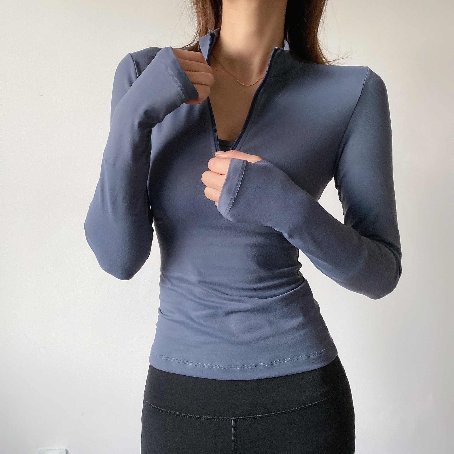 0 Review for Half-zip Tight-fitting Sports T-shirt Womens Yoga Wear Ladies Long