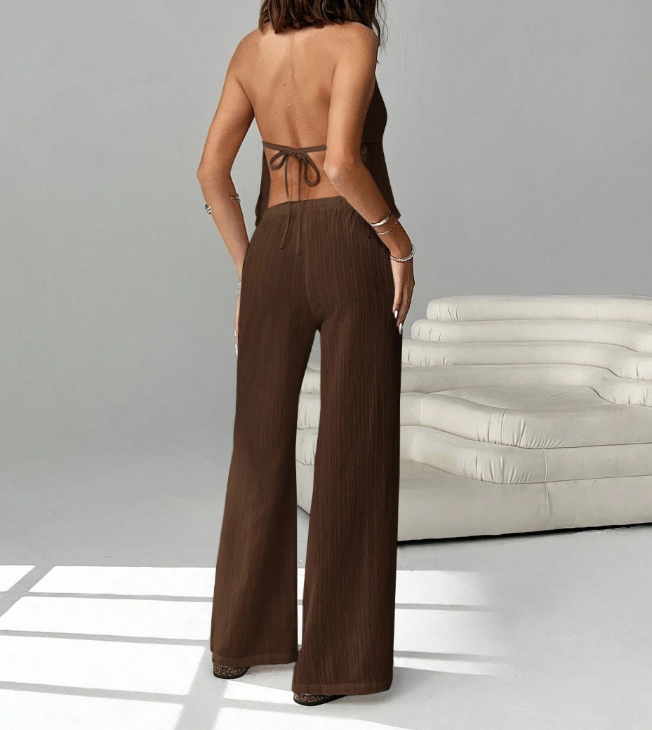 Halterneck Strap Sexy Backless Sleeveless Tank Top And Slim-fit Set