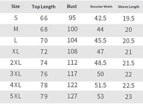 Sizes: S, M, L, XL, 2XL, 3XL, 4XL, 5XL