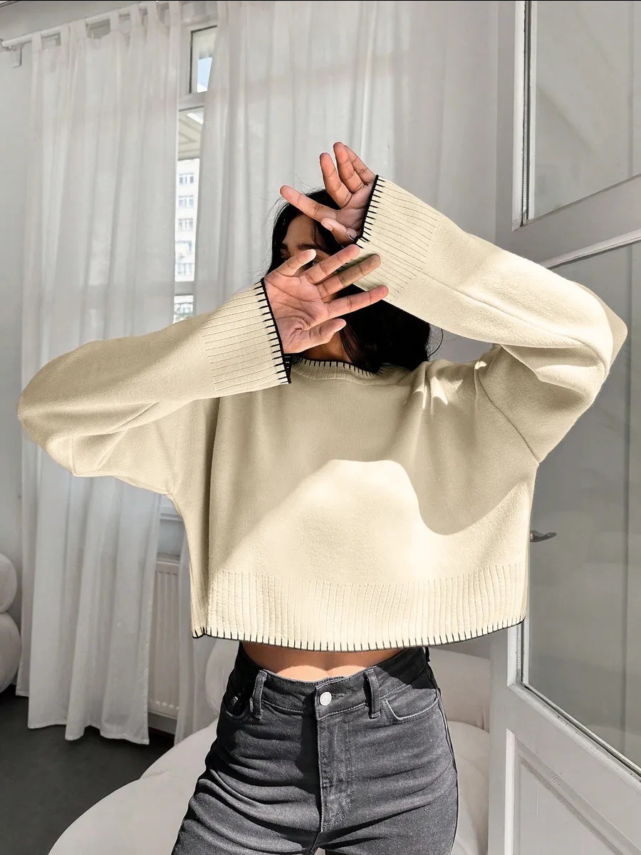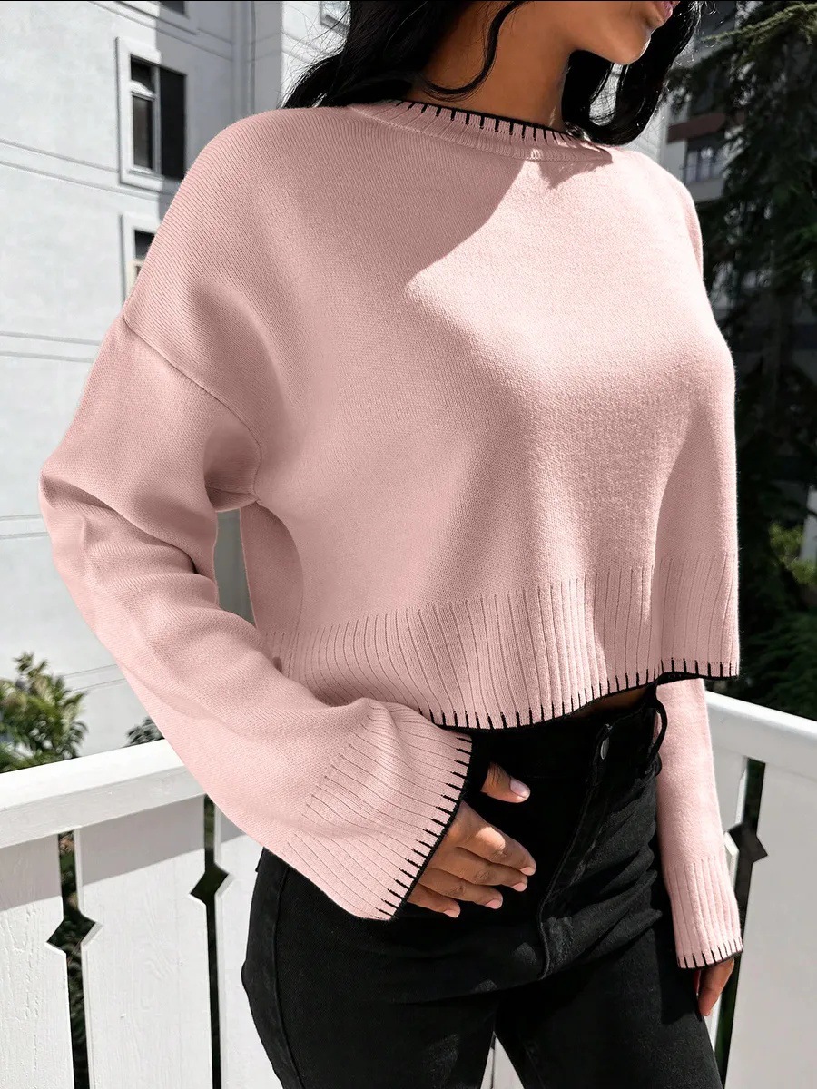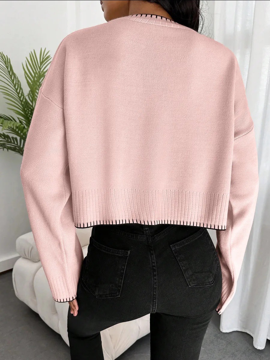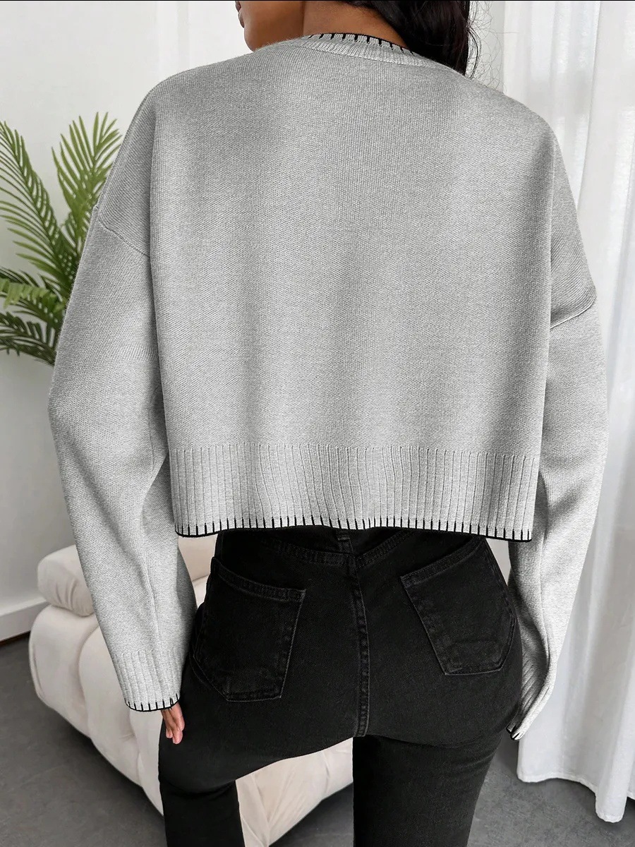 0 Review for High-waisted Color-block Loose-fitting Cropped Pullover Knit Sweater