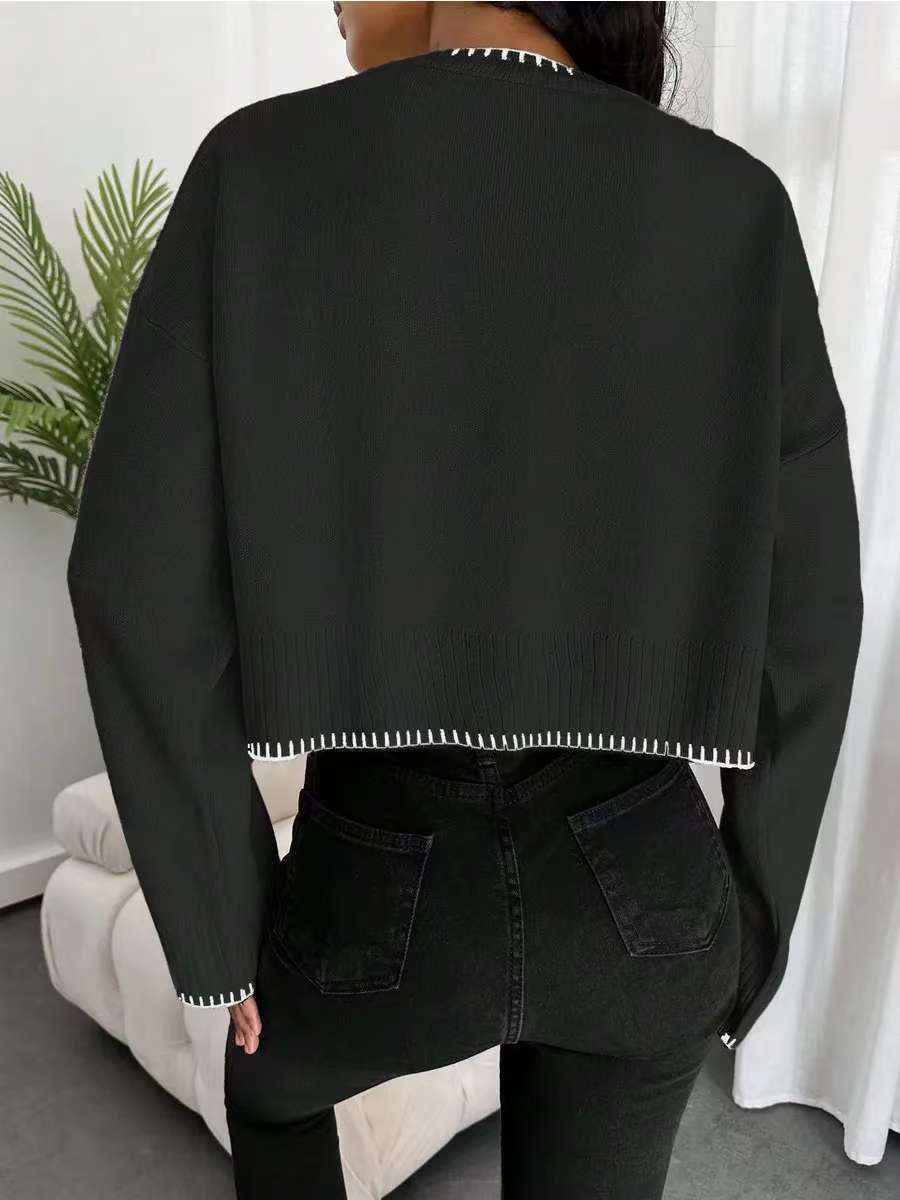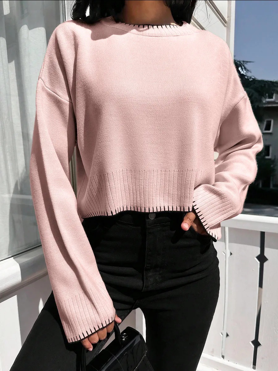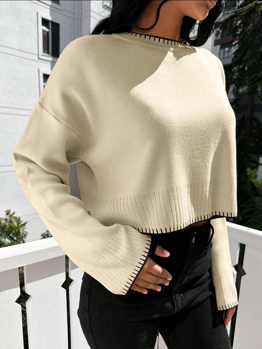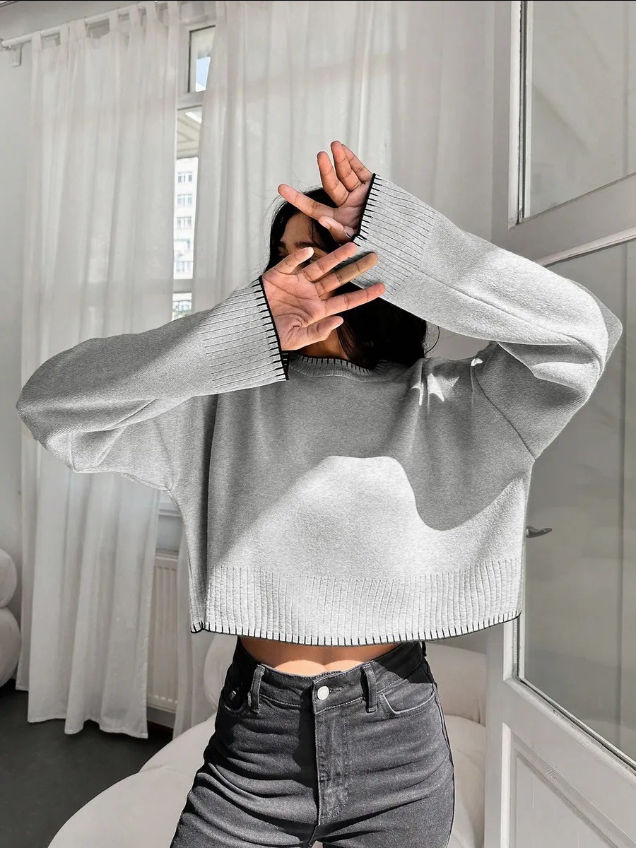 0 Review for High-waisted Color-block Loose-fitting Cropped Pullover Knit Sweater