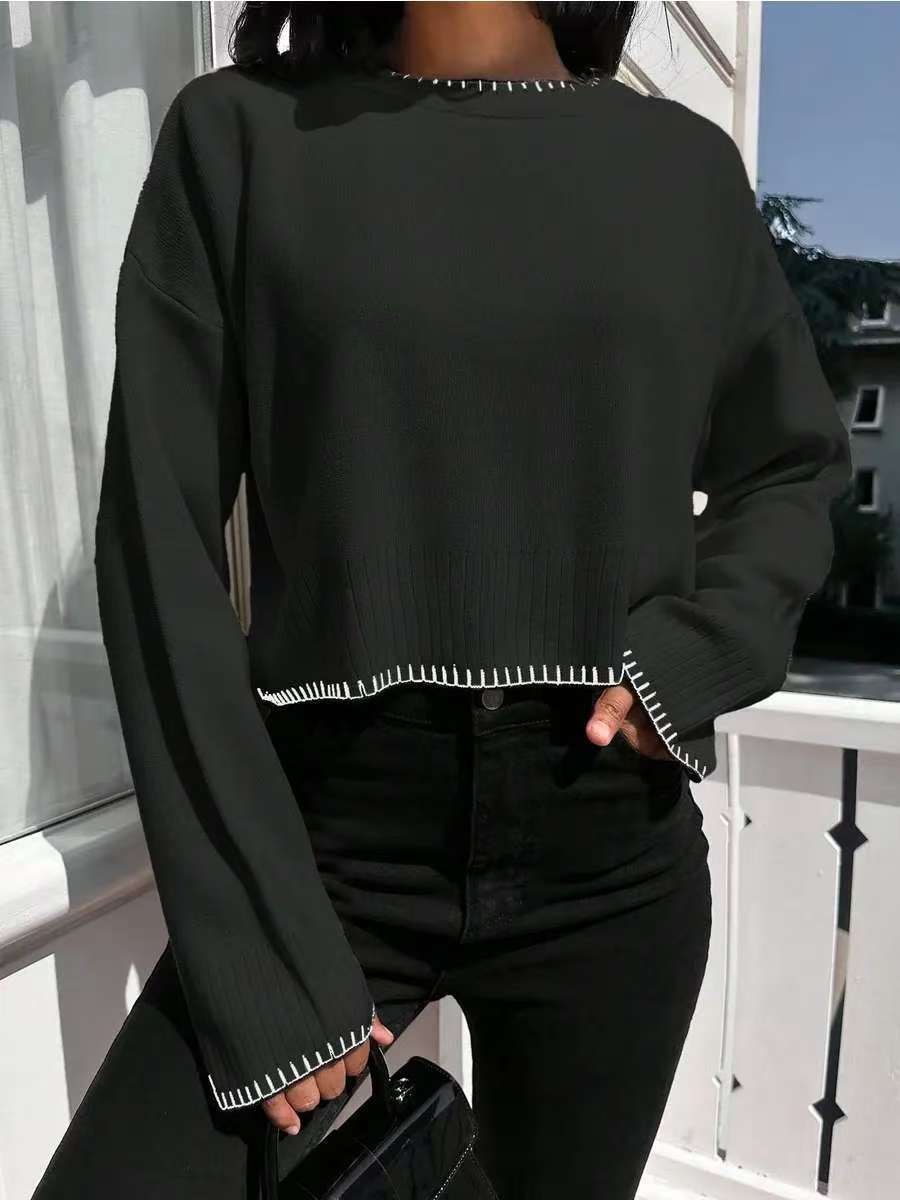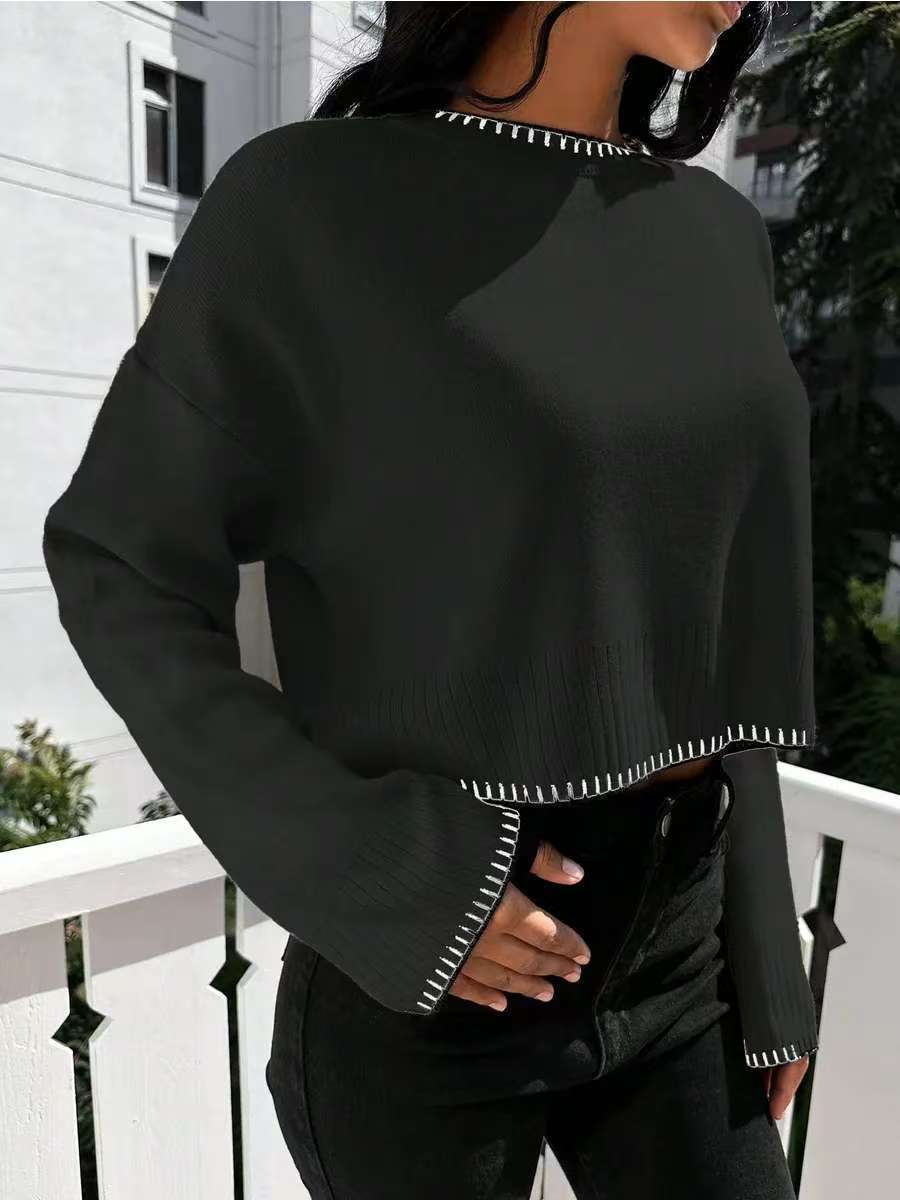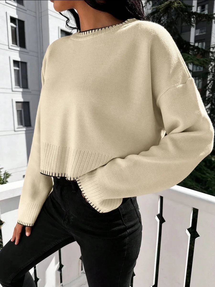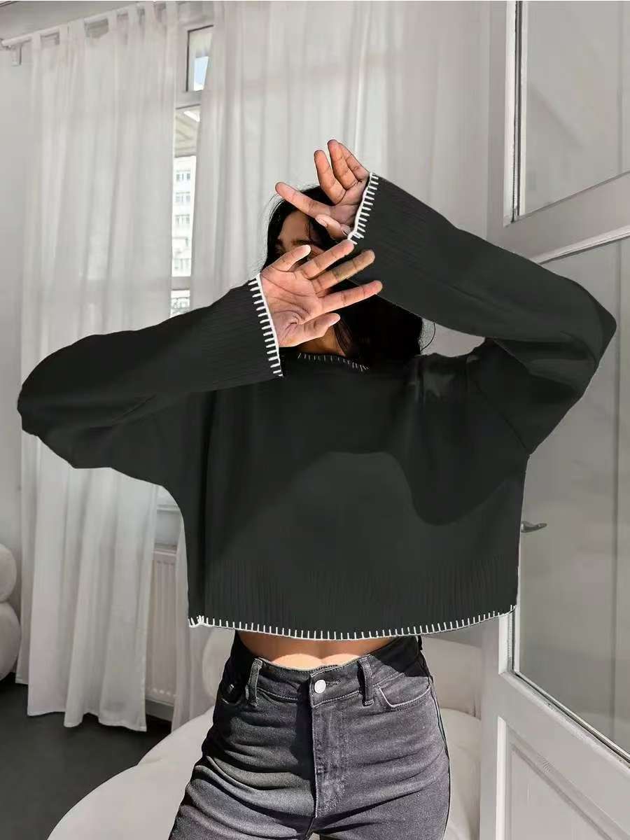 0 Review for High-waisted Color-block Loose-fitting Cropped Pullover Knit Sweater