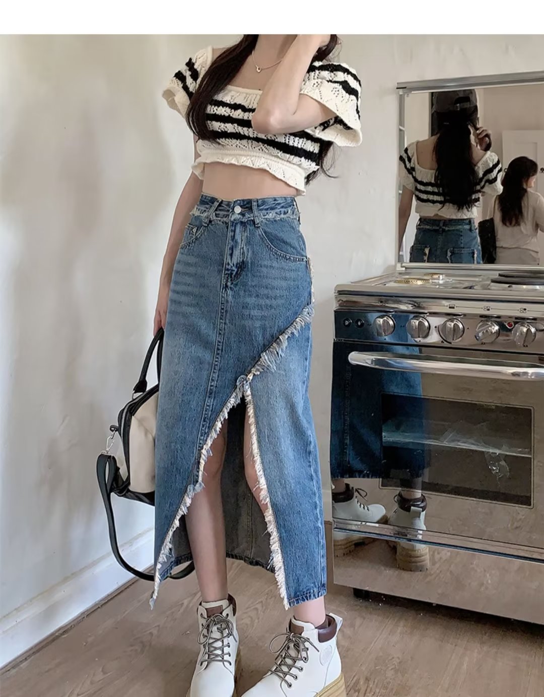 High-waisted Figure-flattering Niche Mid-length A-line Skirt