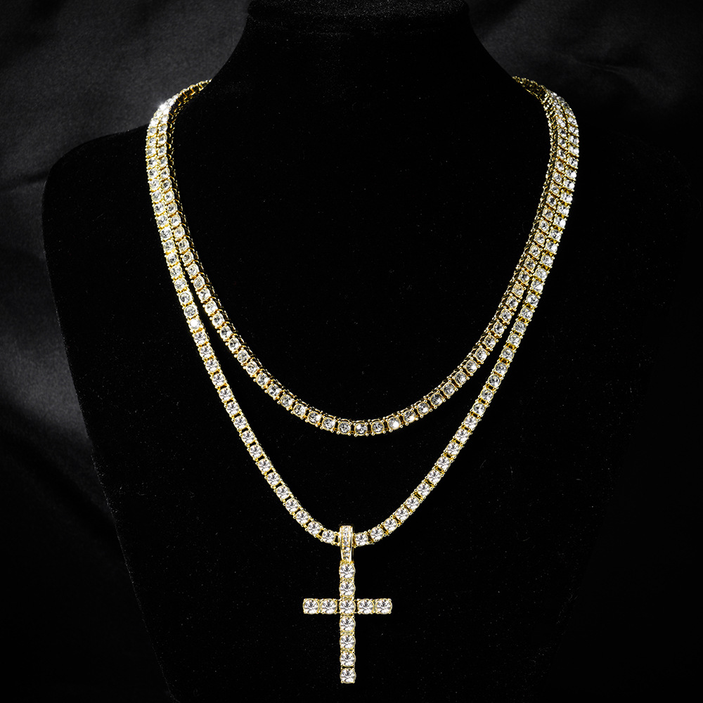 Color: Gold pendant 18-inch tennis chain, silver pendant 18-inch tennis chain
