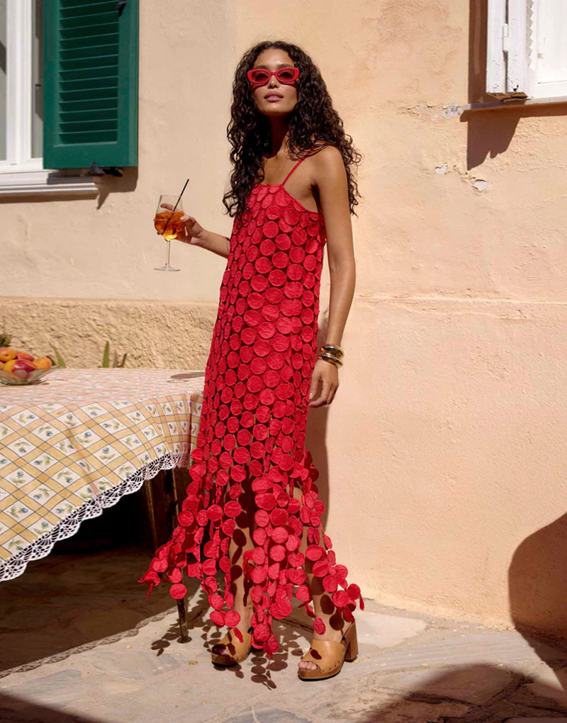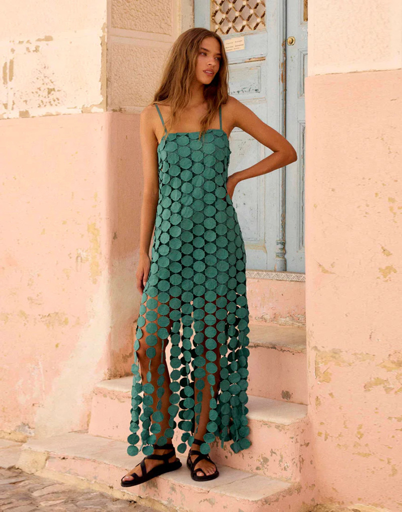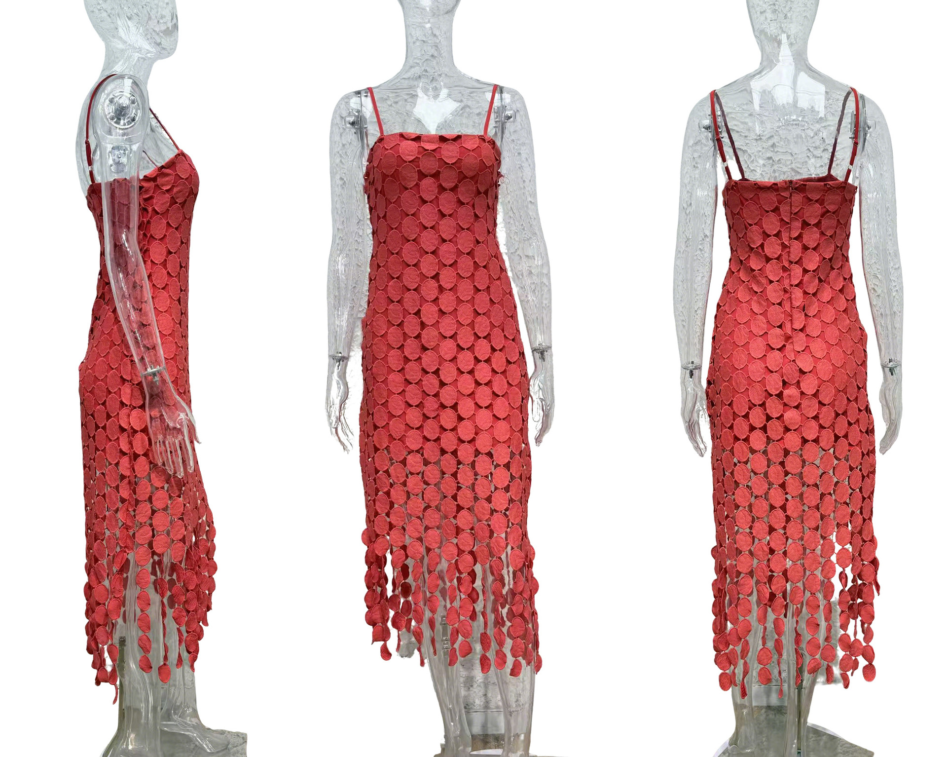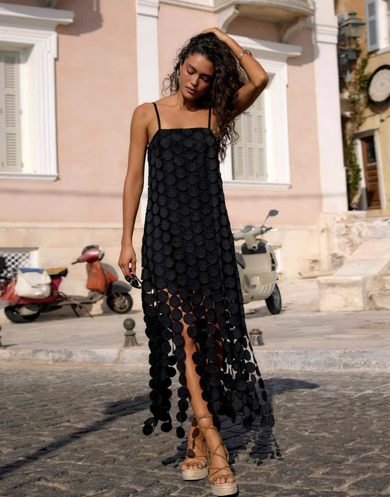 0 Review for Hollow-out Polka-dot Midi Slip Dress