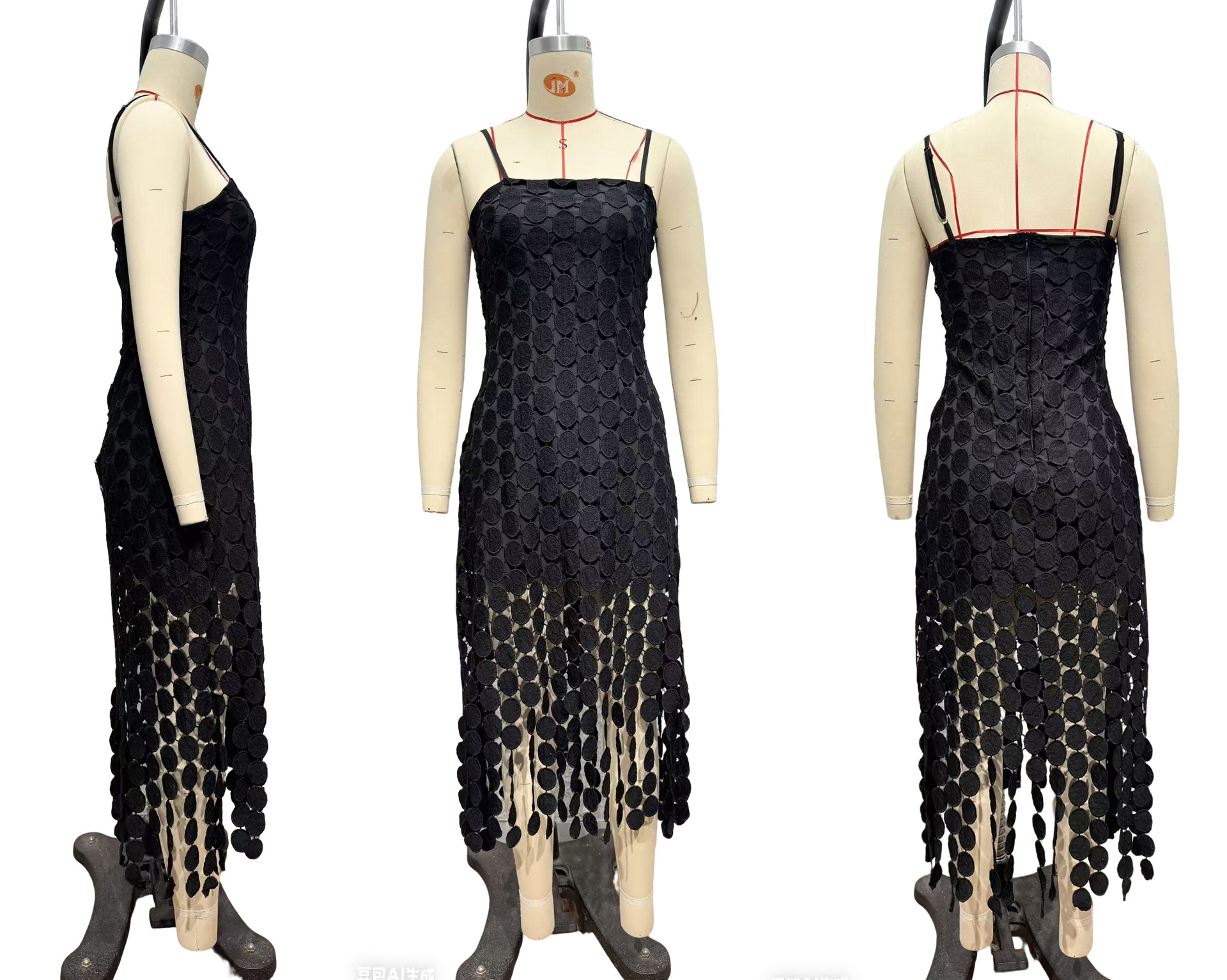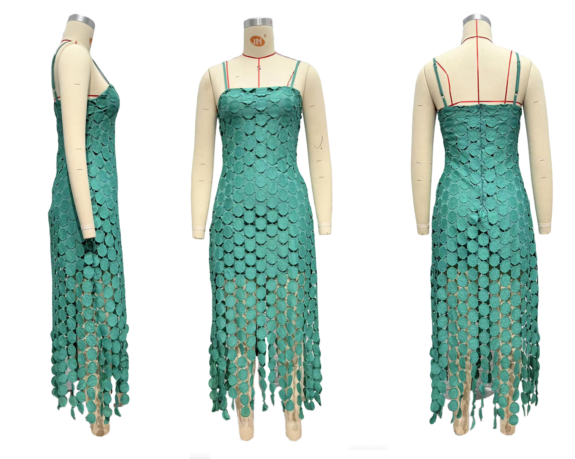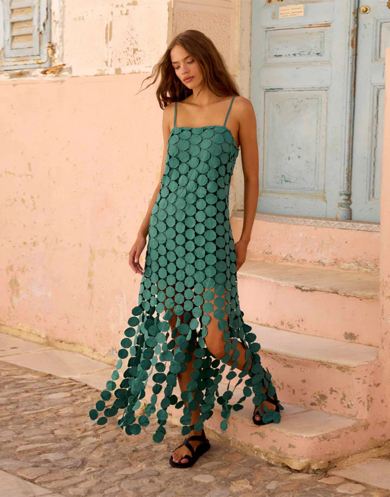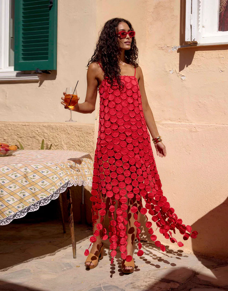 0 Review for Hollow-out Polka-dot Midi Slip Dress