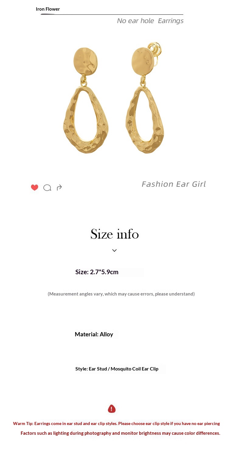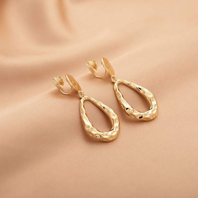 Color: [2453] Gold Water Drop Ear Pins, [2453] Gold Water Drop Mosquito Coil Disc Ear Clips