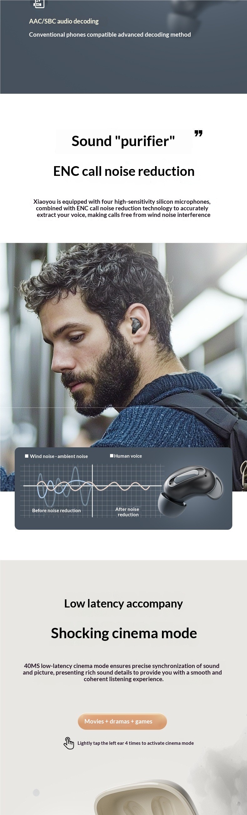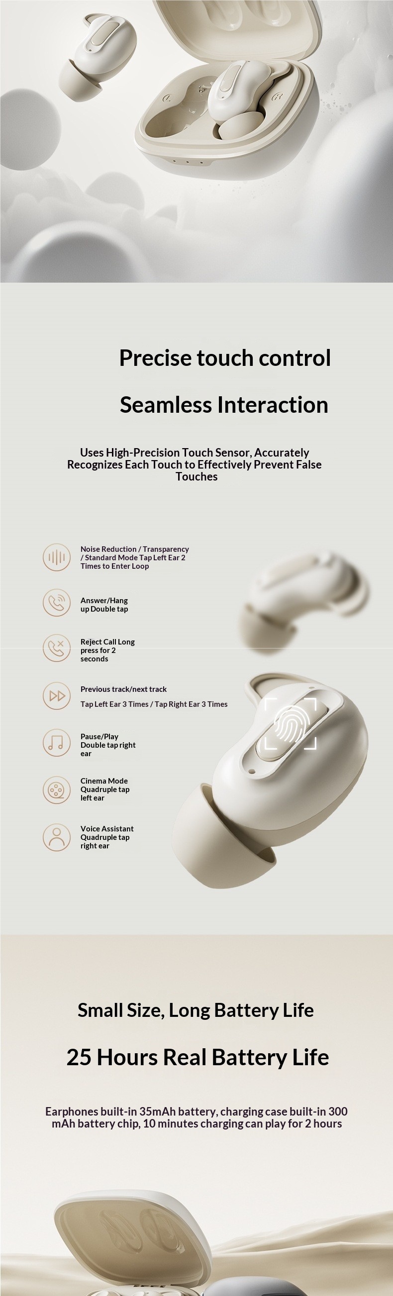 Features: Noise Cancellation, Extra-Long Battery Life, Call Functionality, Music Support, Sleep Mode