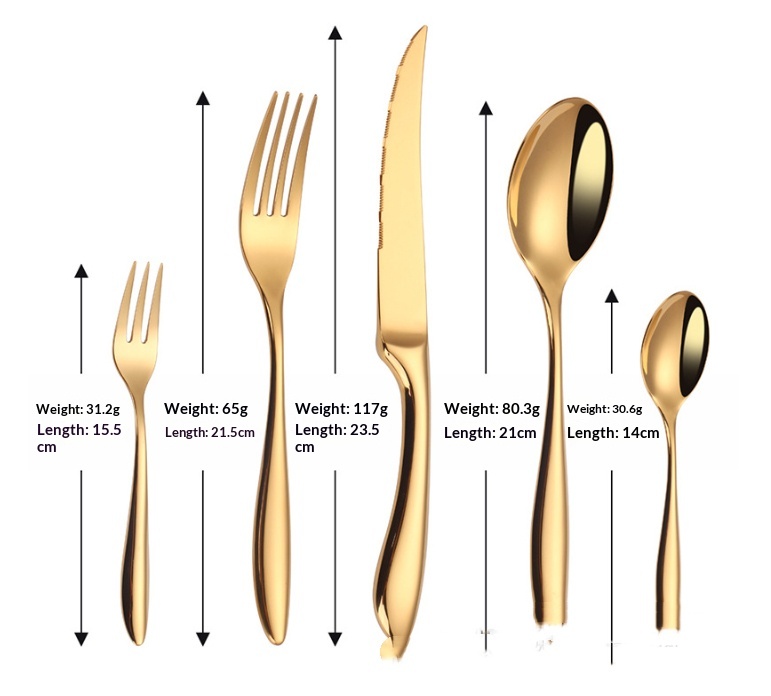Colors: Titanium steak knife, titanium main course knife, titanium main course fork, titanium main course spoon, titanium tea spoon, titanium tea fork, titanium five-piece set [with main course knife], titanium five-piece set [with steak knife]