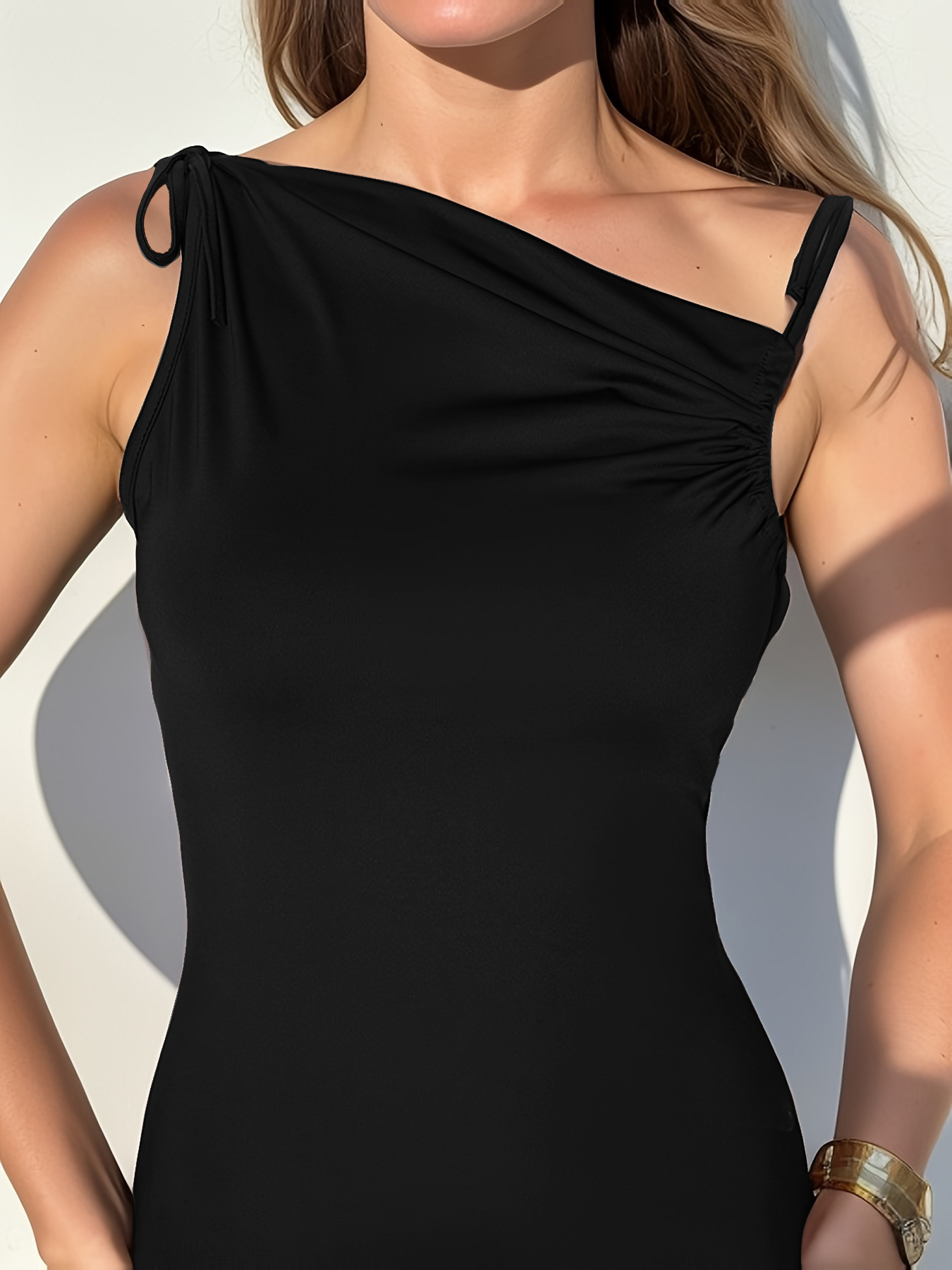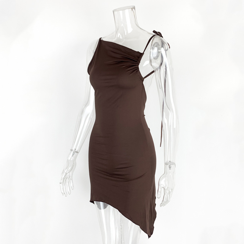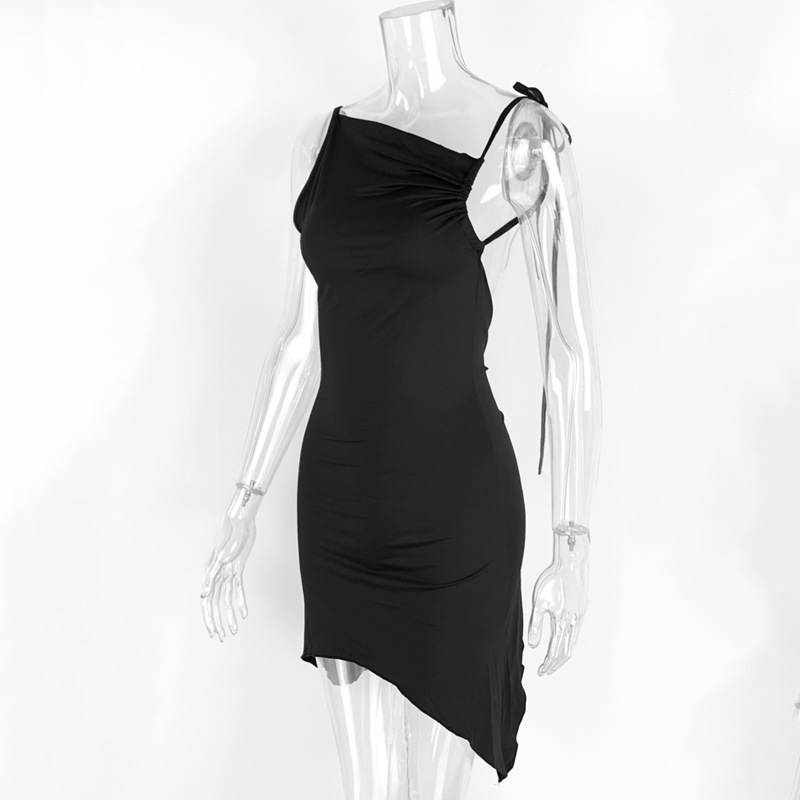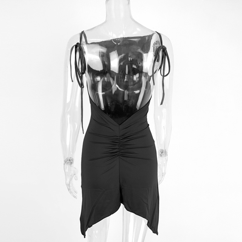 0 Review for Irregularly Pleated Strap Cross-Neckline Dress
