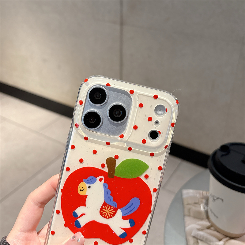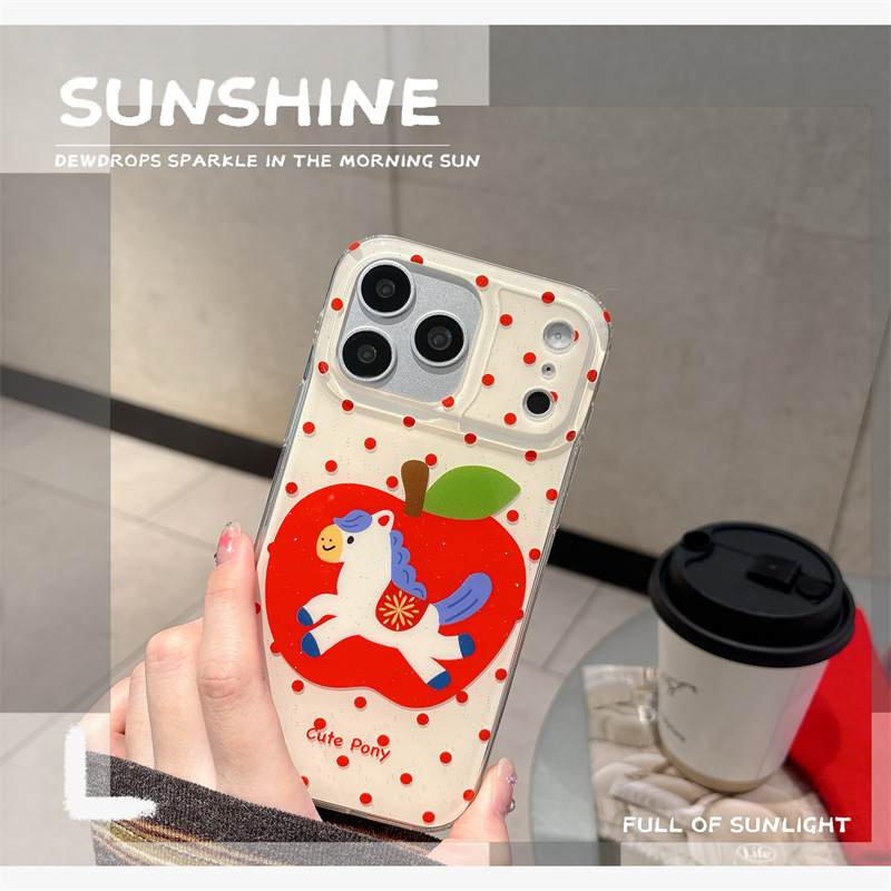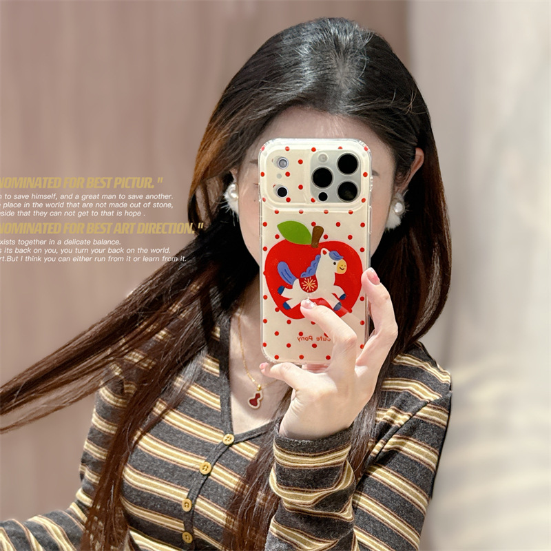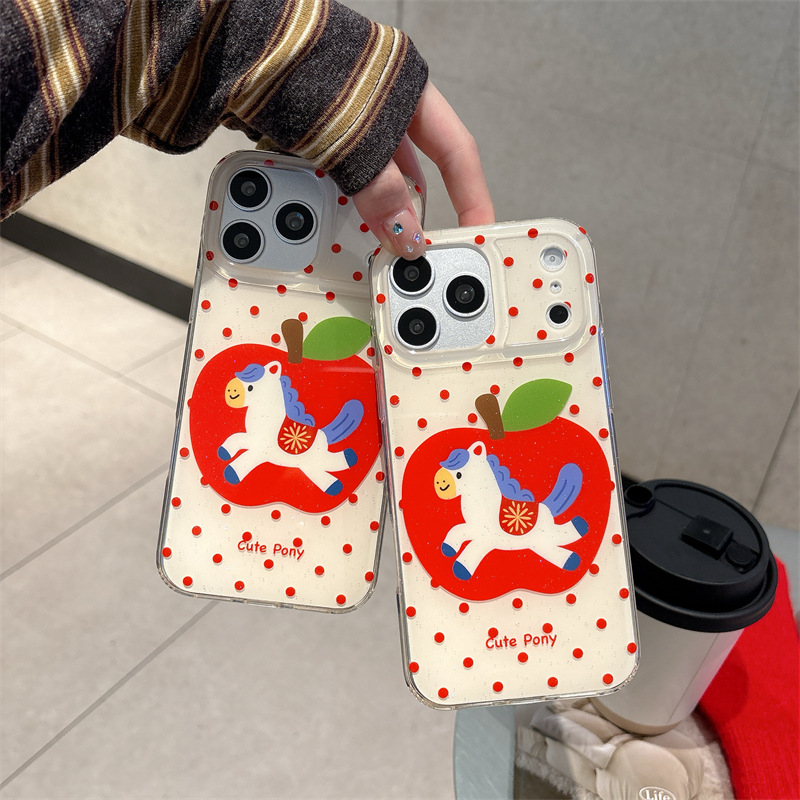 Color: Double-layer – White base with red polka dots, Apple Pony design