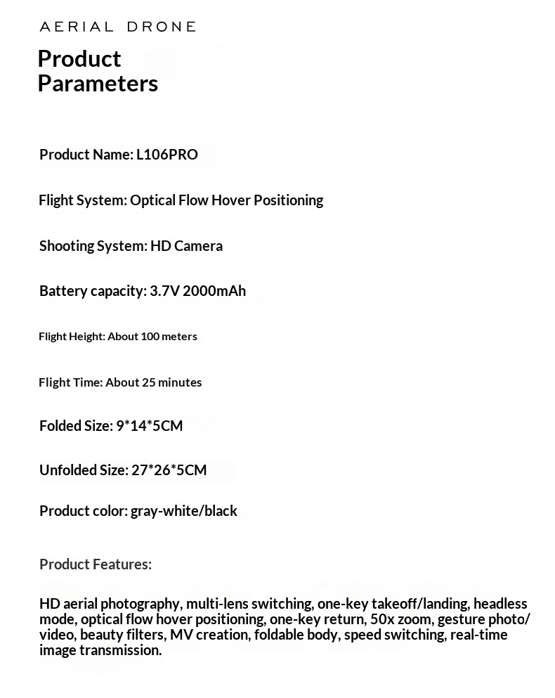 L106 Pro Brushless Motor 8K Aerial Photography Long Endurance Optical Flow Hovering Remote Control Toy Quadcopter