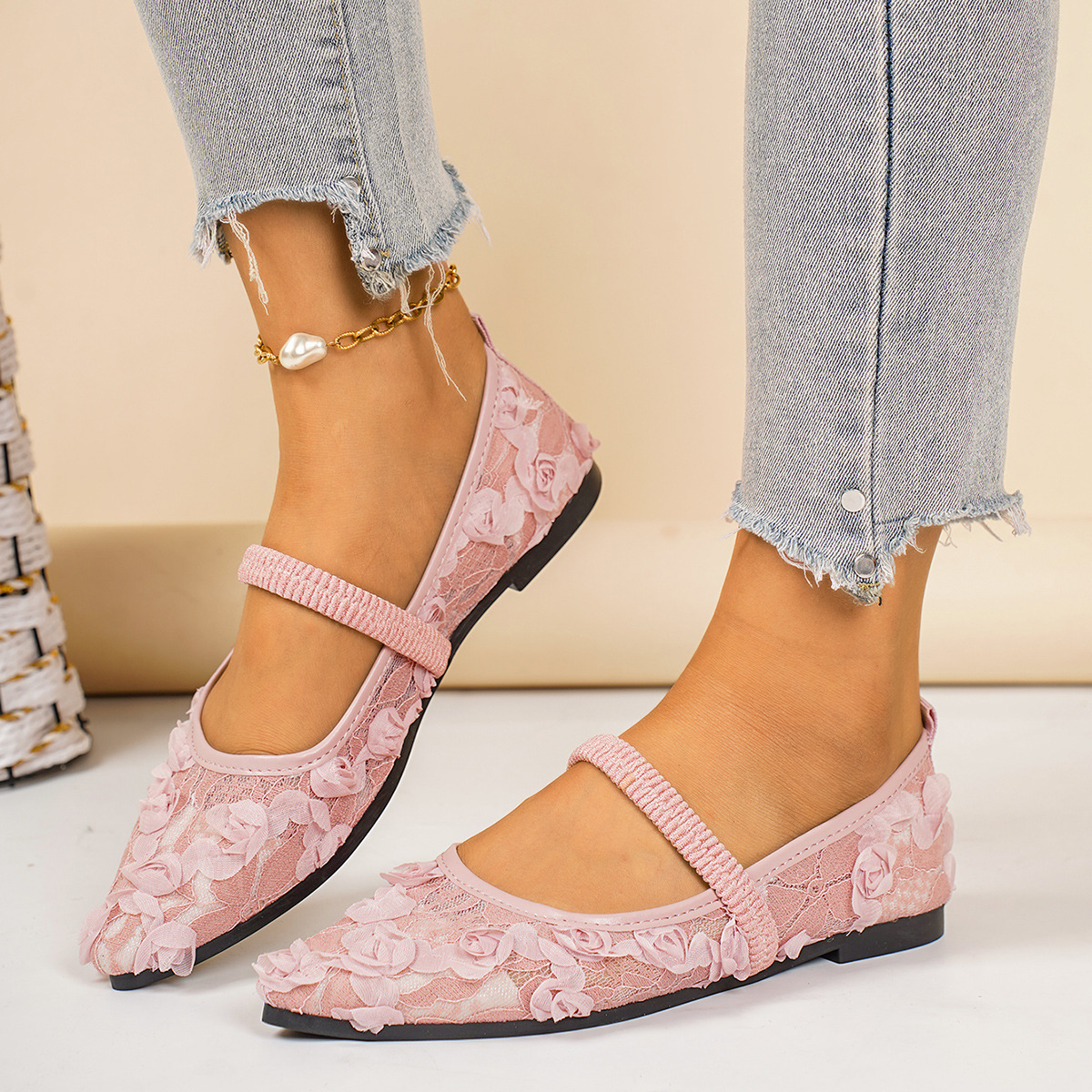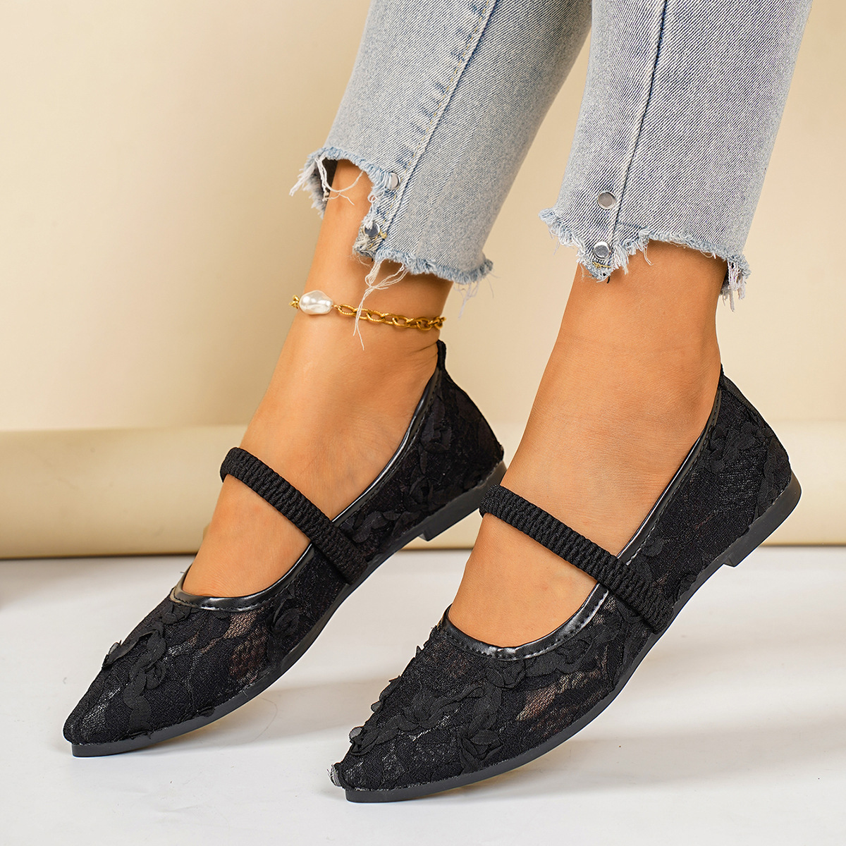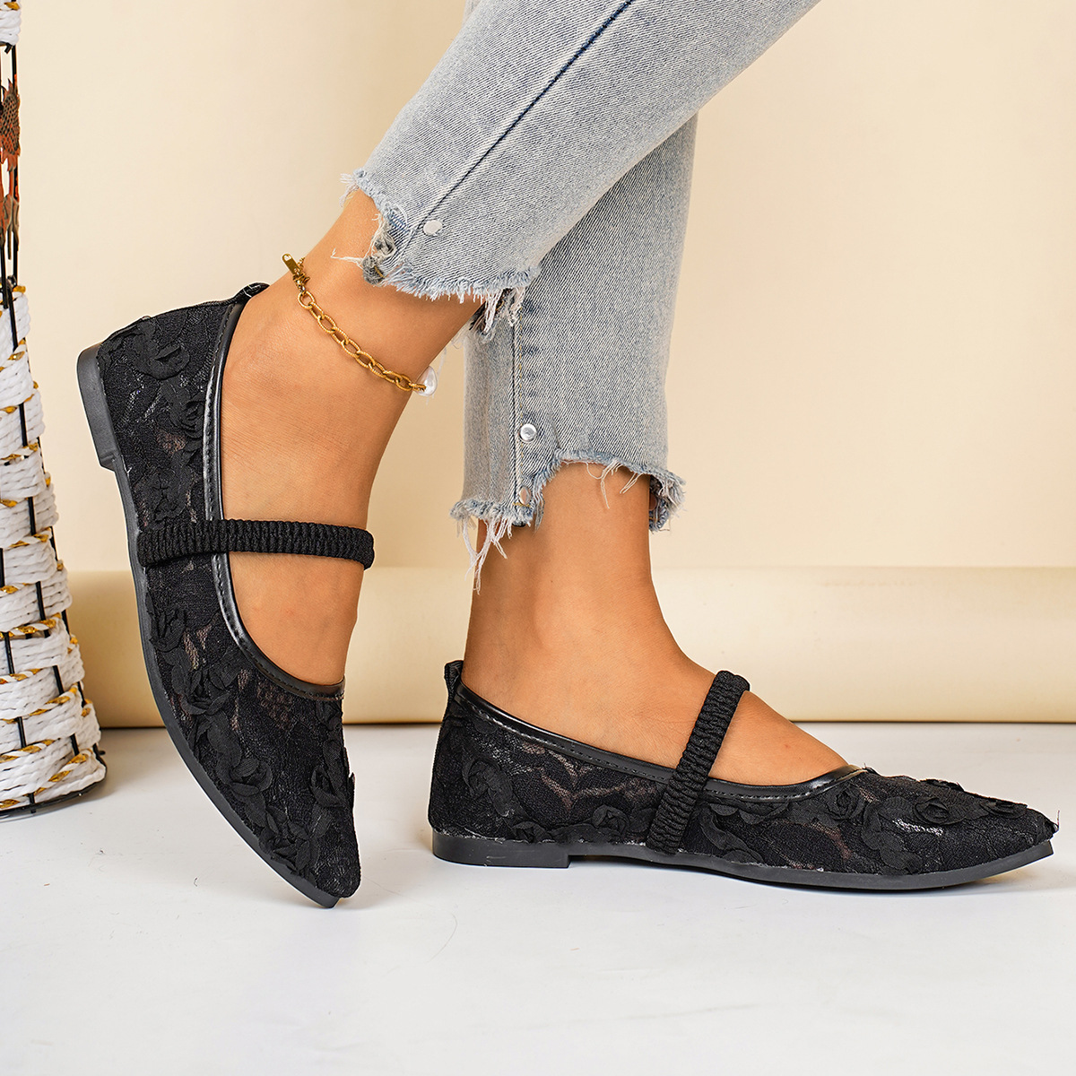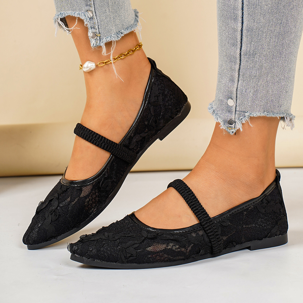 Lace-mesh Pointed-toe Low-cut Flats For Women Flat-bottomed Casual And Breathable