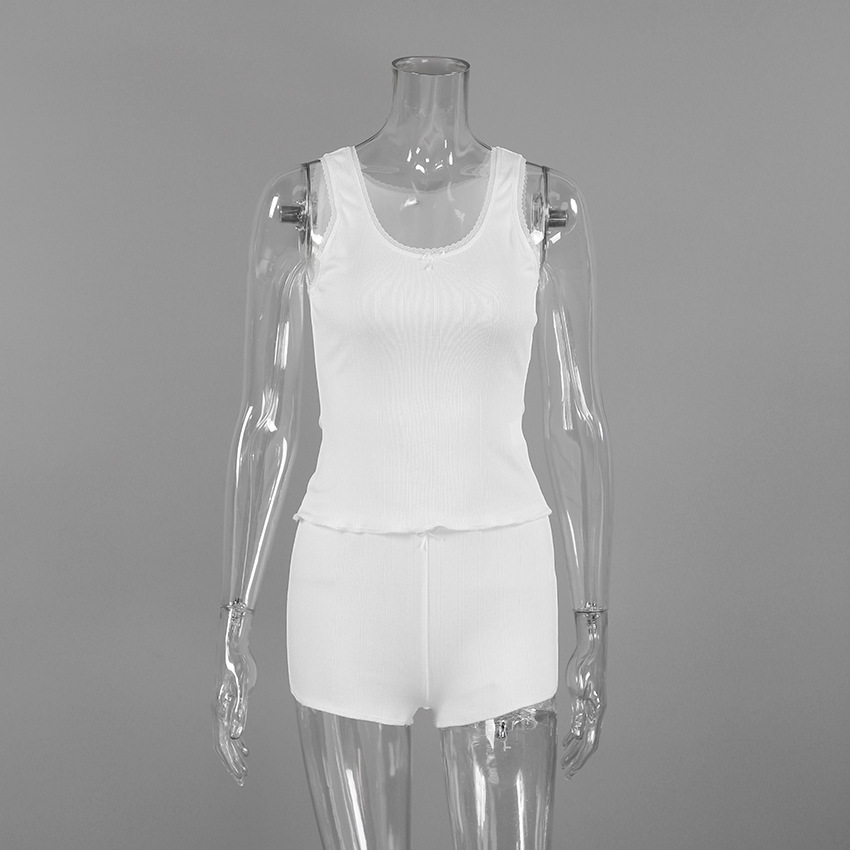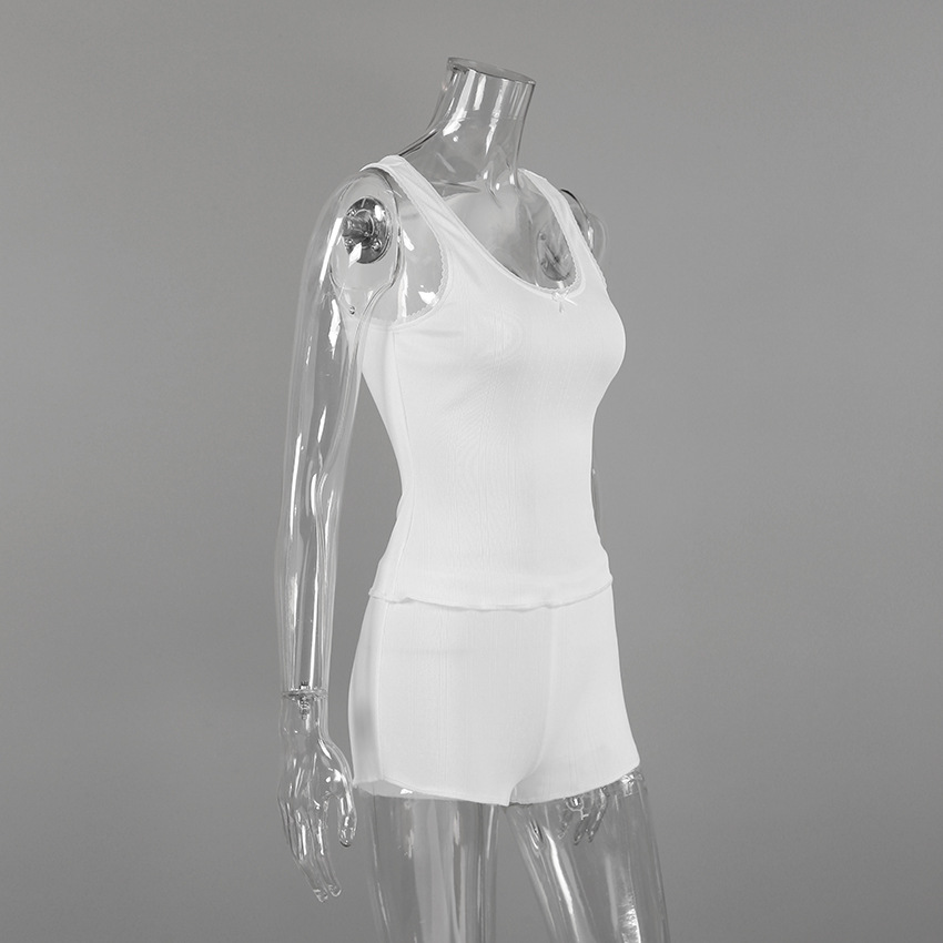 0 Review for Lace-Panel Tank Top And Shorts Pajama Set 2 Pieces