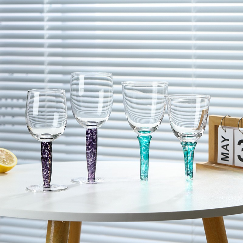 Color: Blue-veined short-stemmed wine glass, blue-veined tall-stemmed wine glass, blue-veined tulip red wine glass, blue-veined large tulip red wine glass, purple spherical red wine glass, purple stemmed wine glass