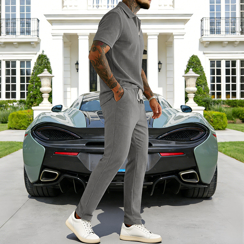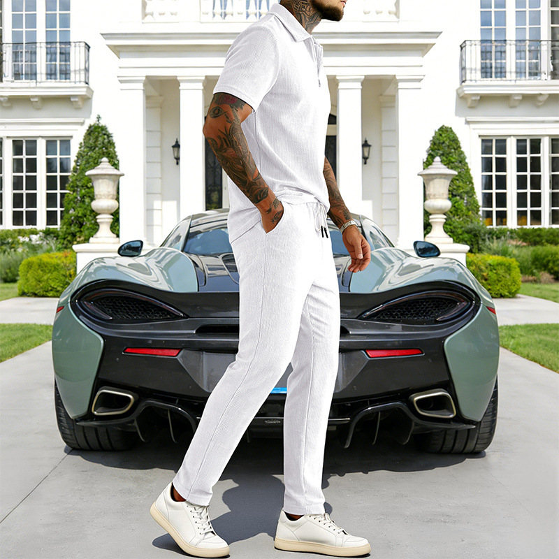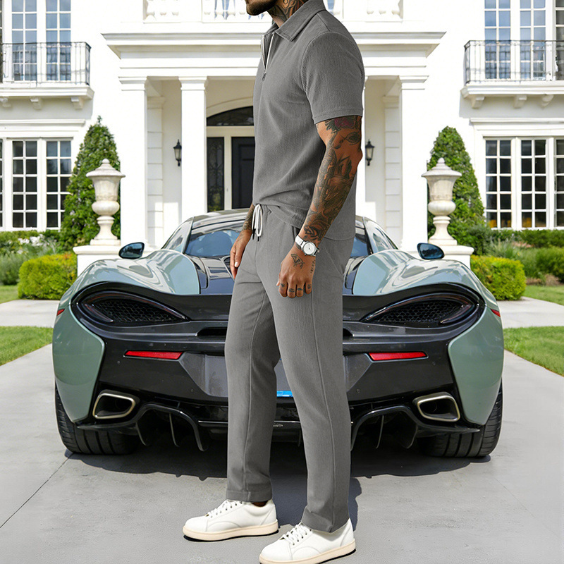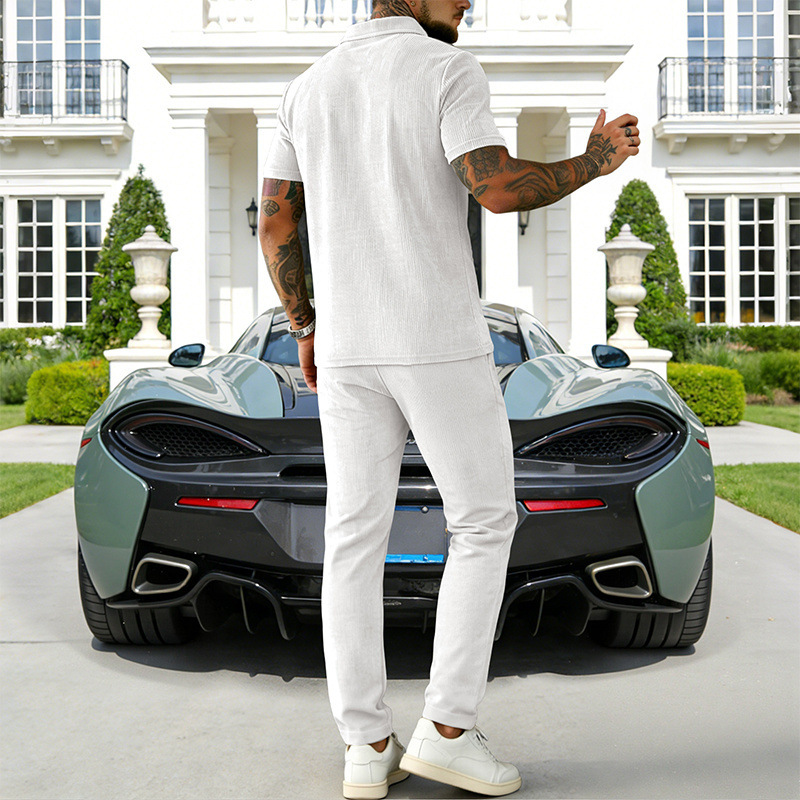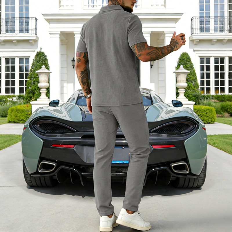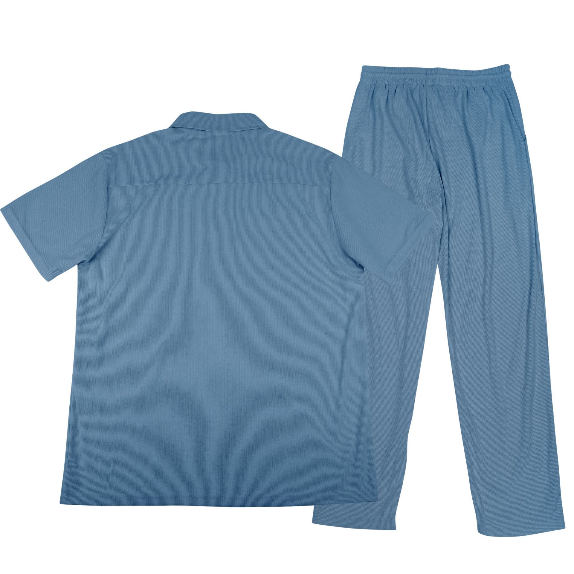 0 Review for Mens Casual Corduroy Short-Sleeve Polo And Pants Set