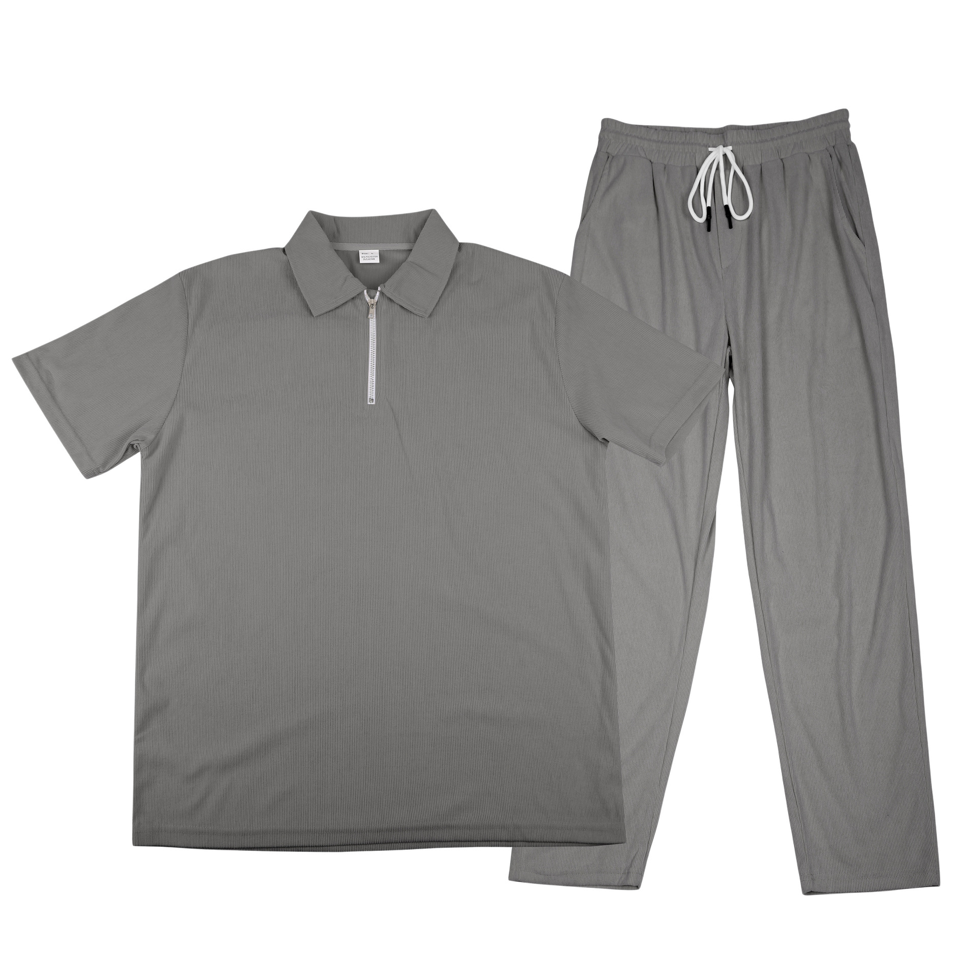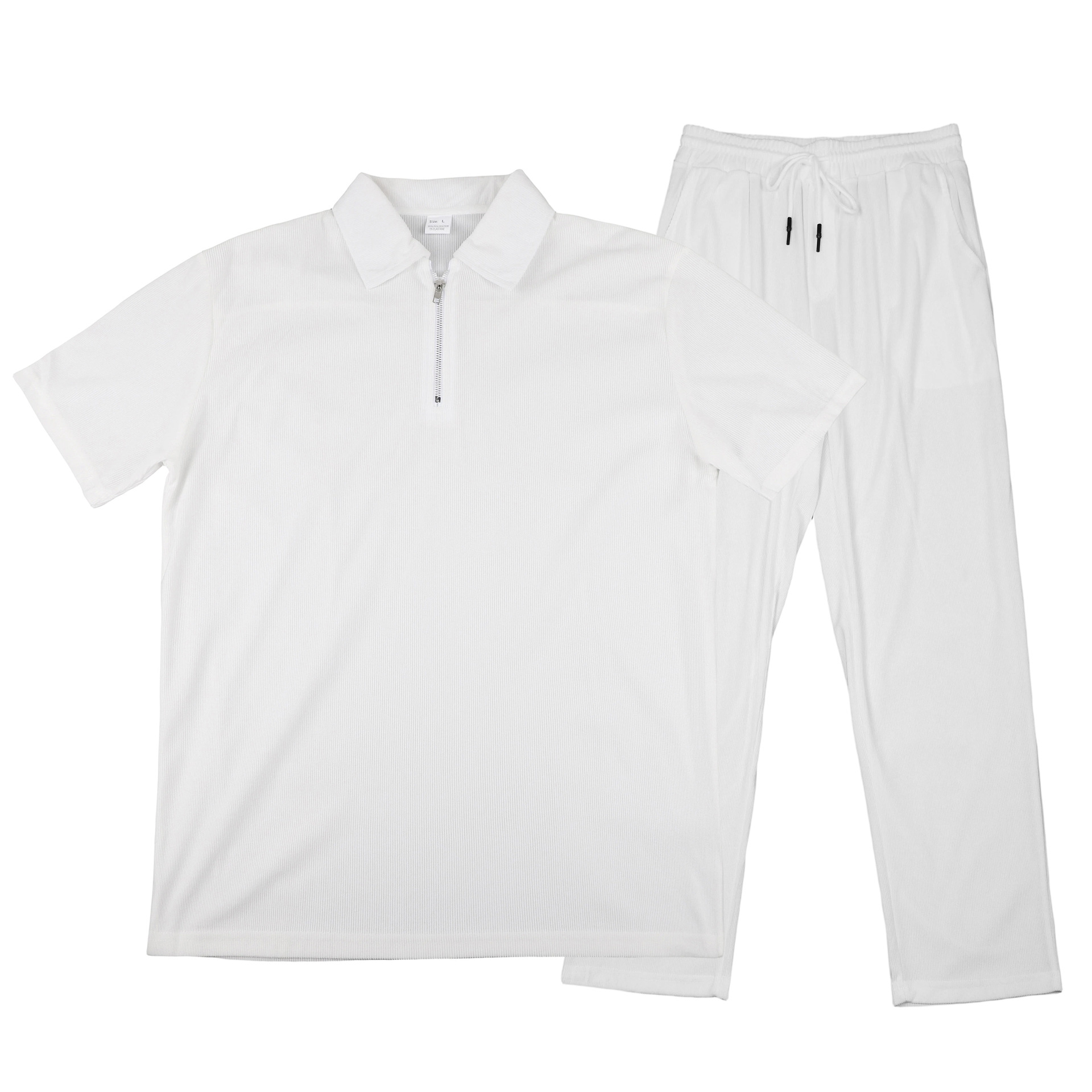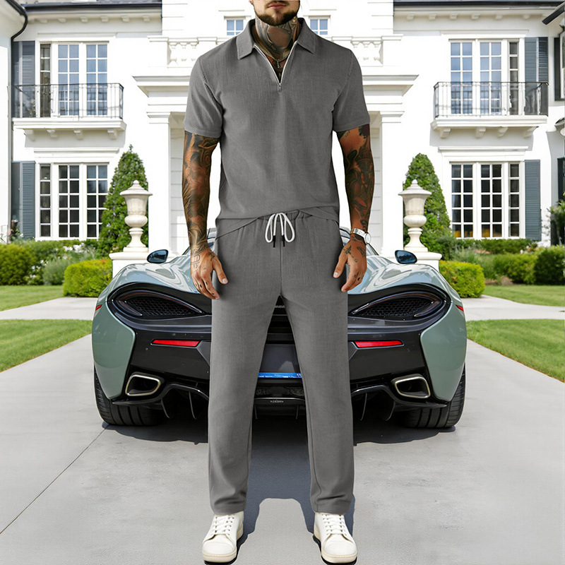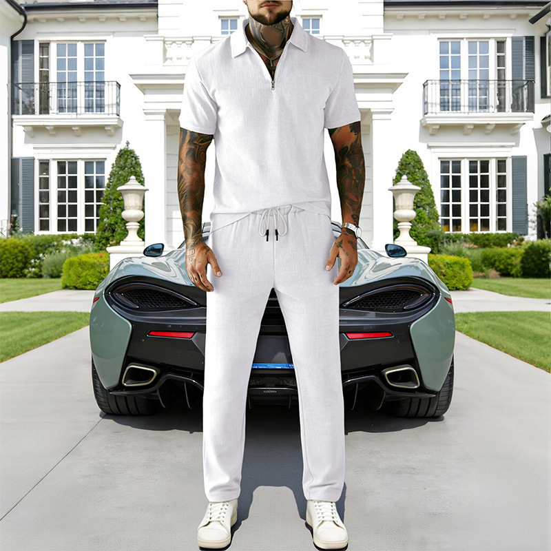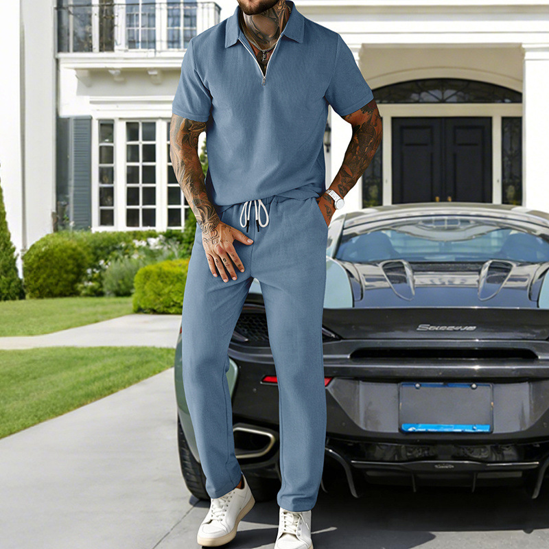 0 Review for Mens Casual Corduroy Short-Sleeve Polo And Pants Set