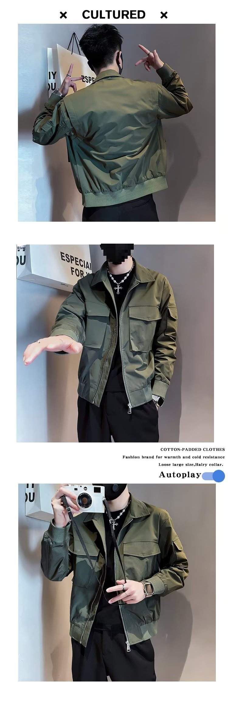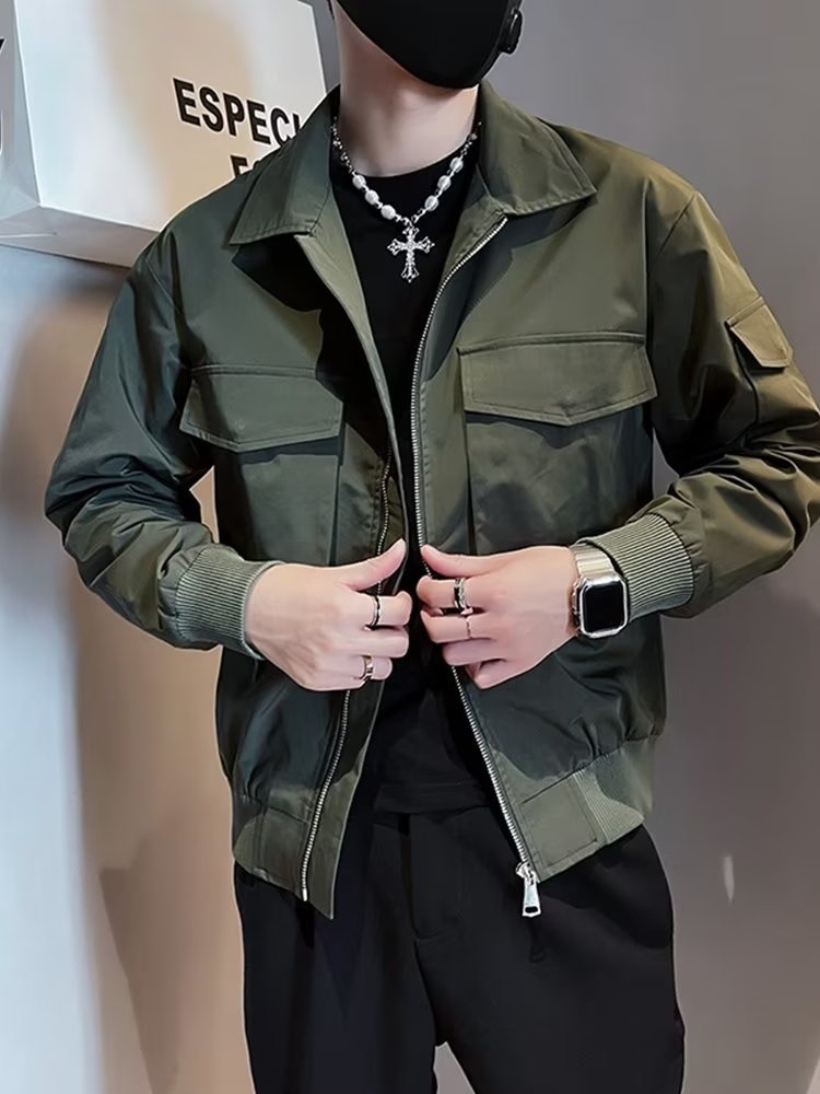 0 Review for Mens Retro Stand-Up Collar Workwear Jacket