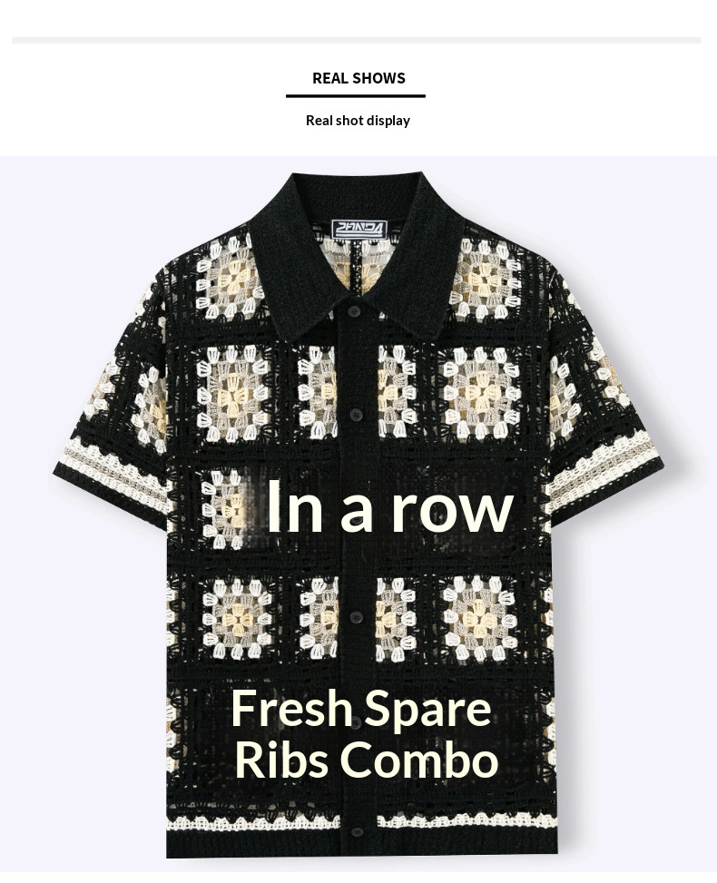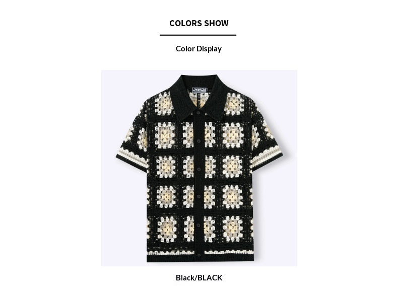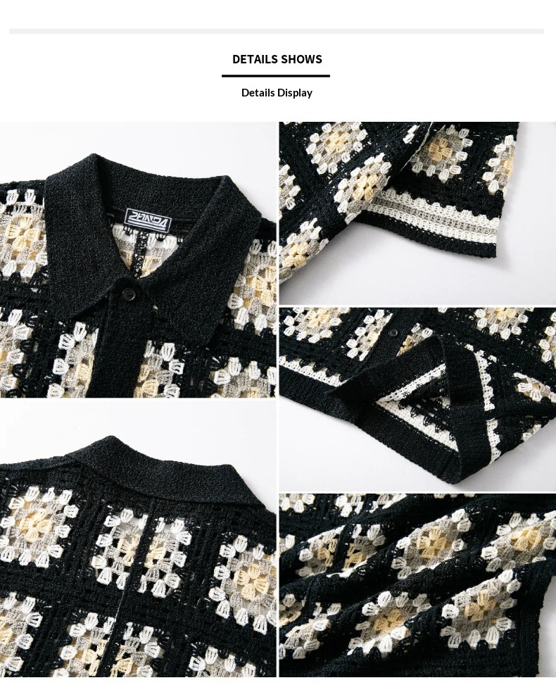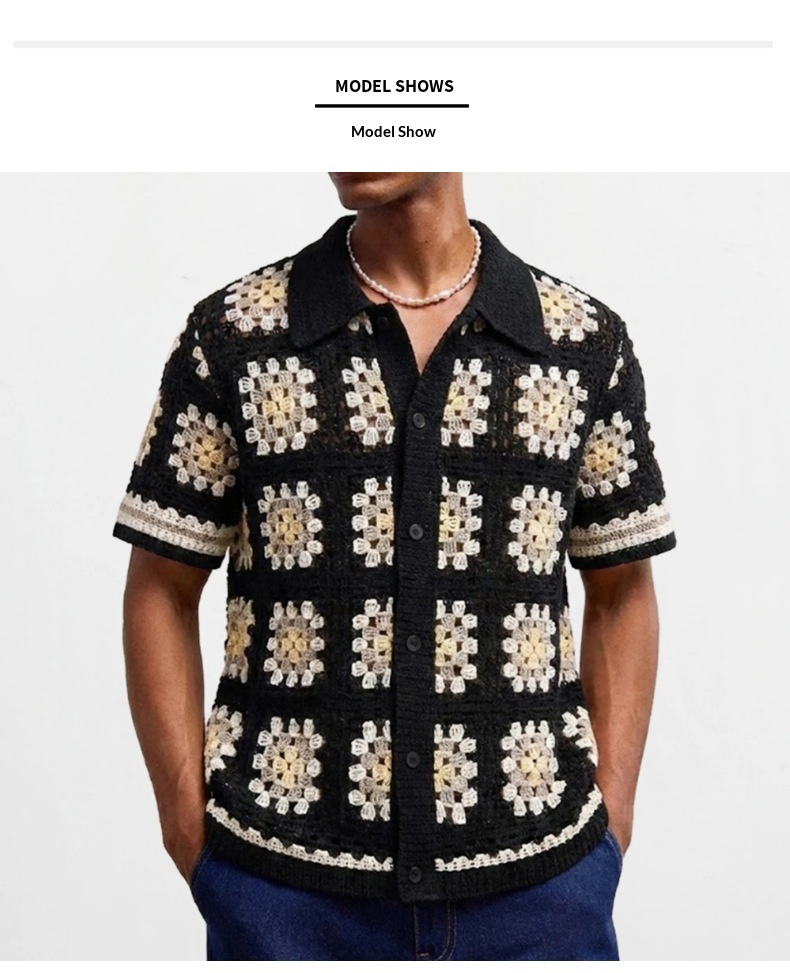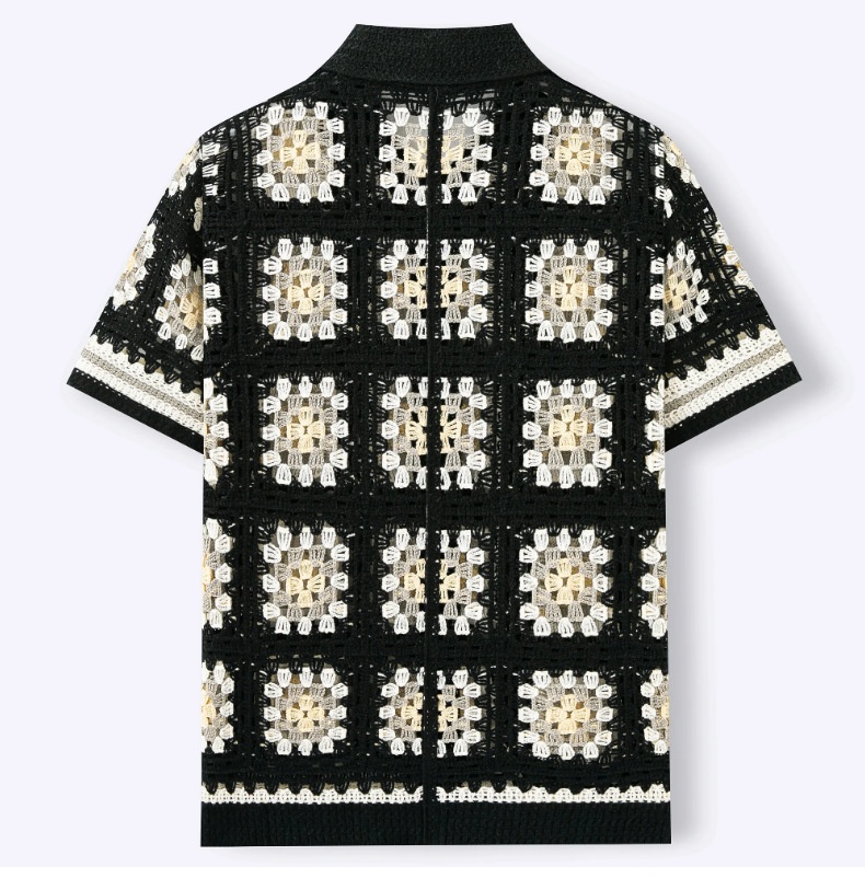 Mens Short-Sleeve Contrasting Color Crochet Hollow-Out Knit Sweater