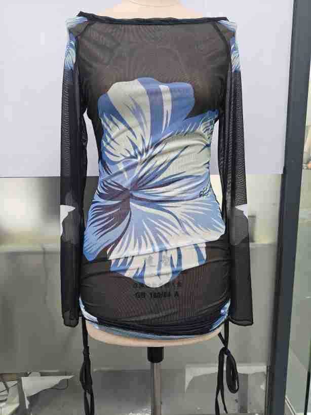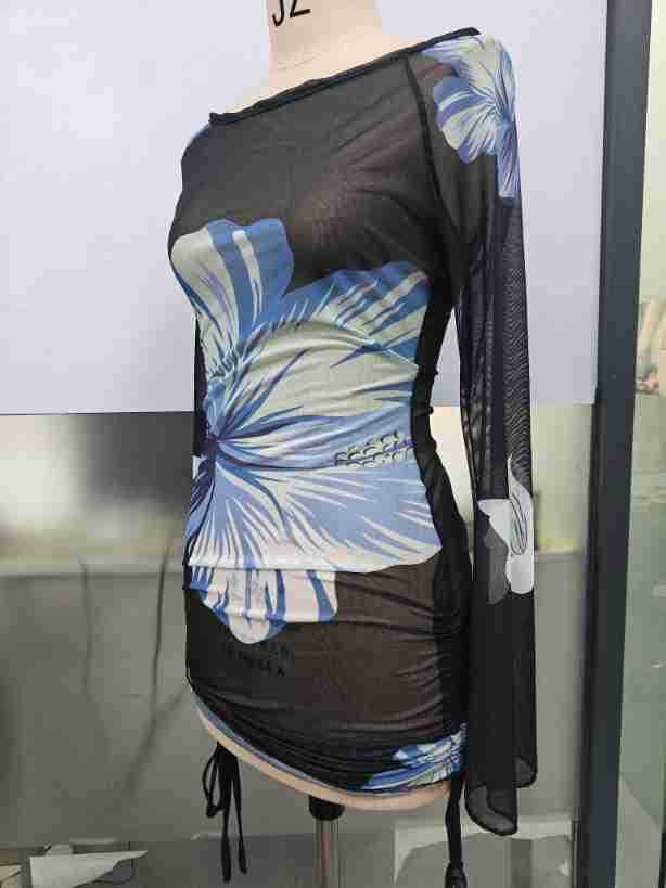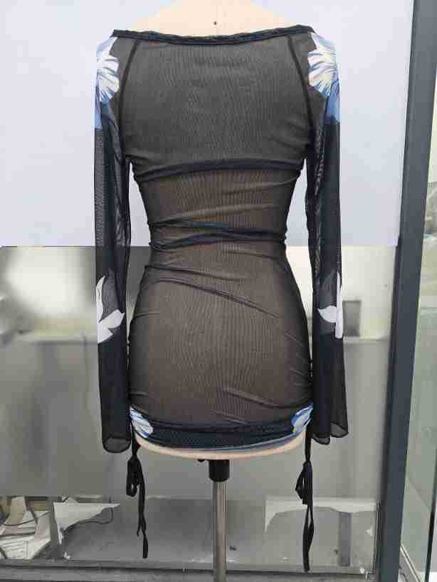 0 Review for Mesh Long-sleeve Flared-sleeve Short Skirt