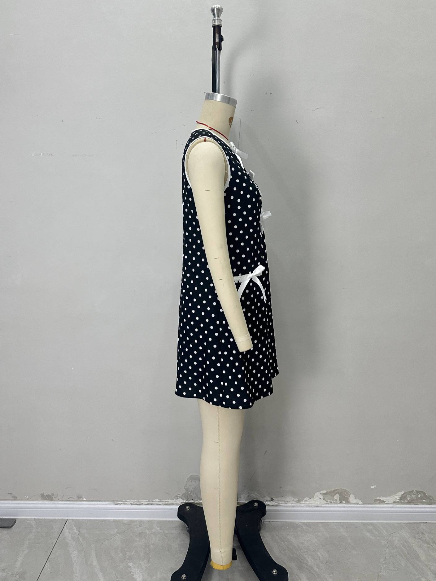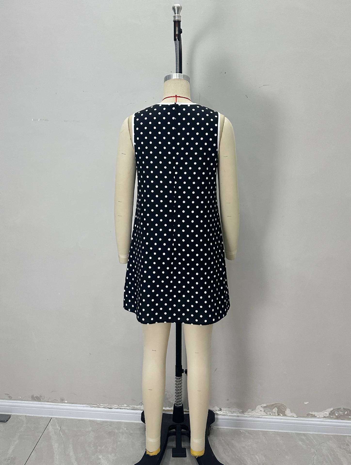 0 Review for Minimalist Round-neck Loose-fitting Sleeveless Polka-dot Dress