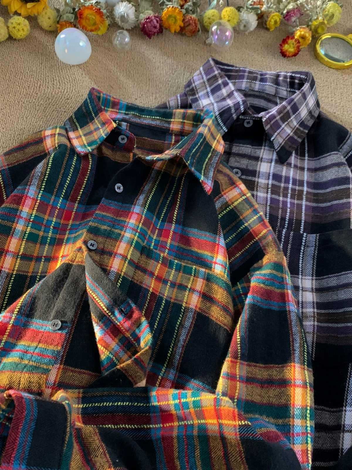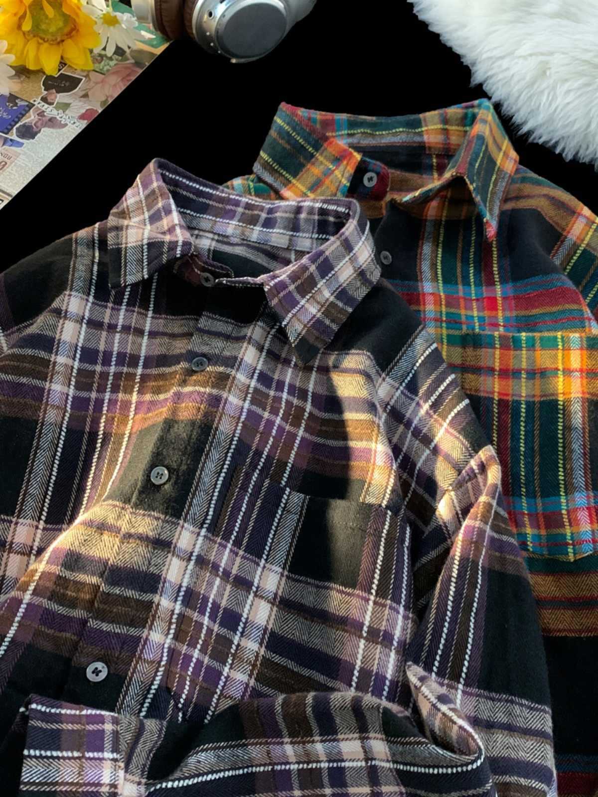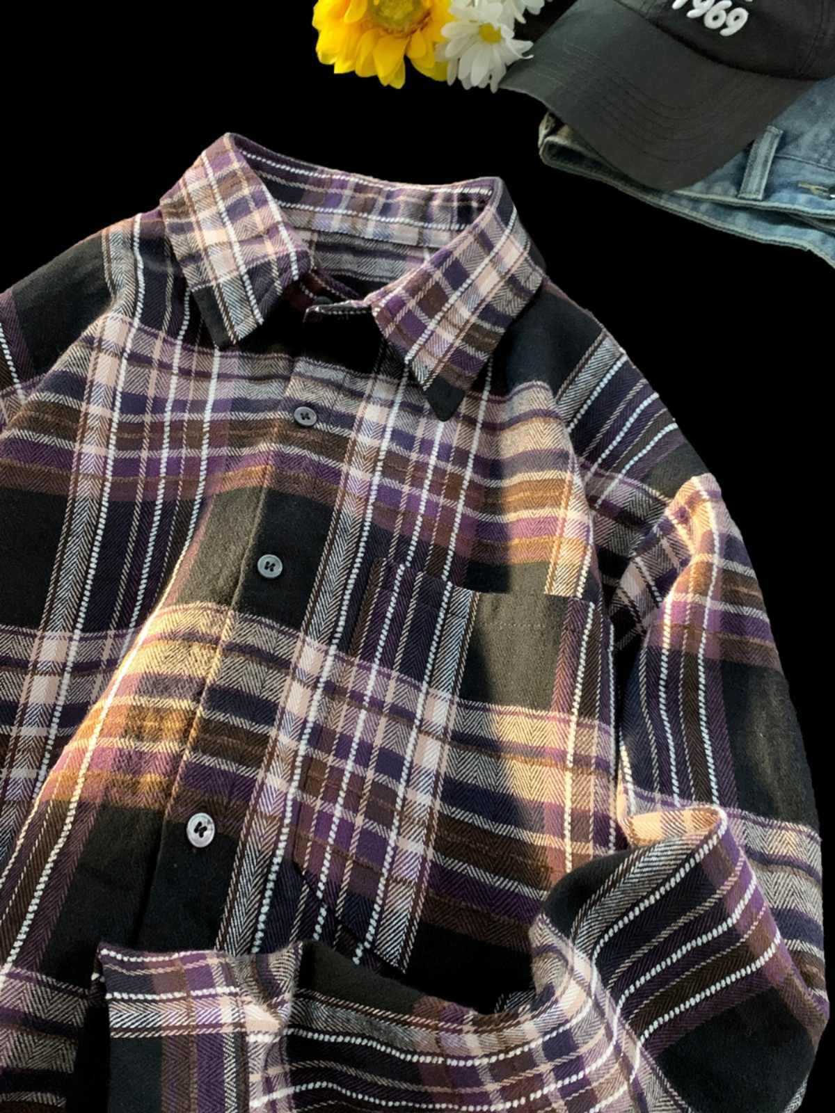 New Japanese-style Retro Color-block Design Loose-fit Shirt