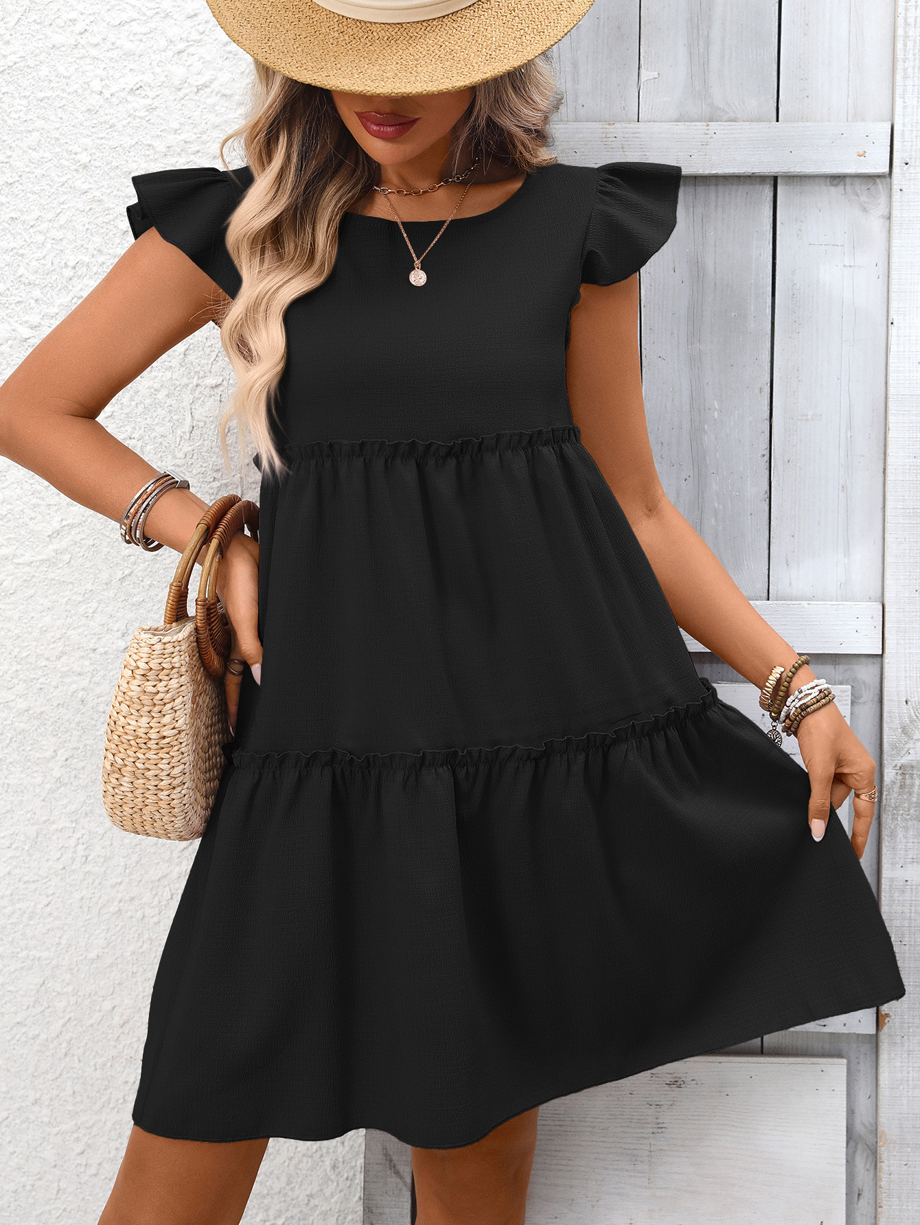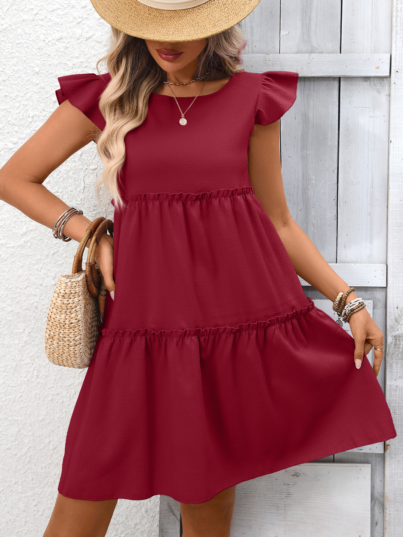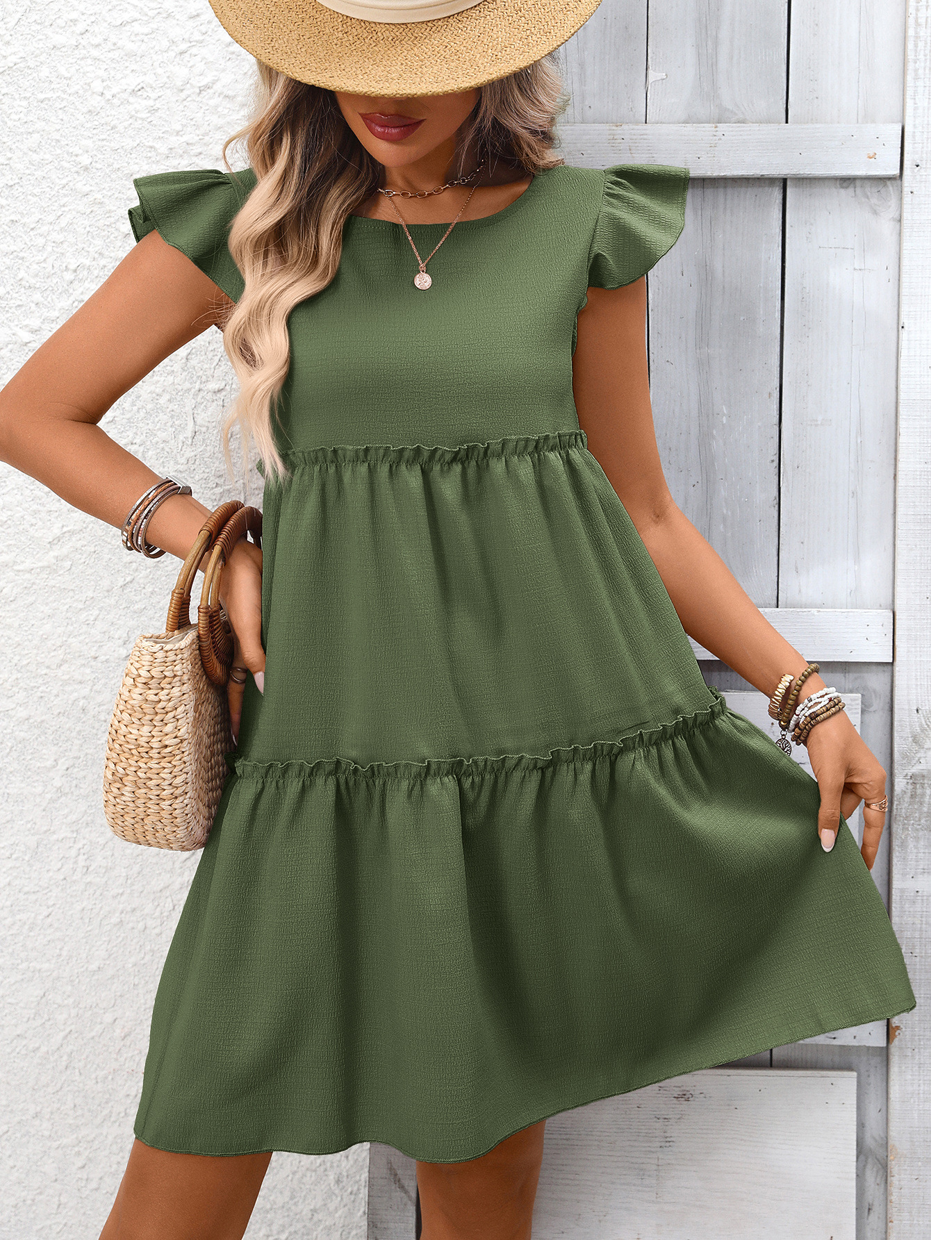 0 Review for New Ruffled Bohemian Solid-Color Dress