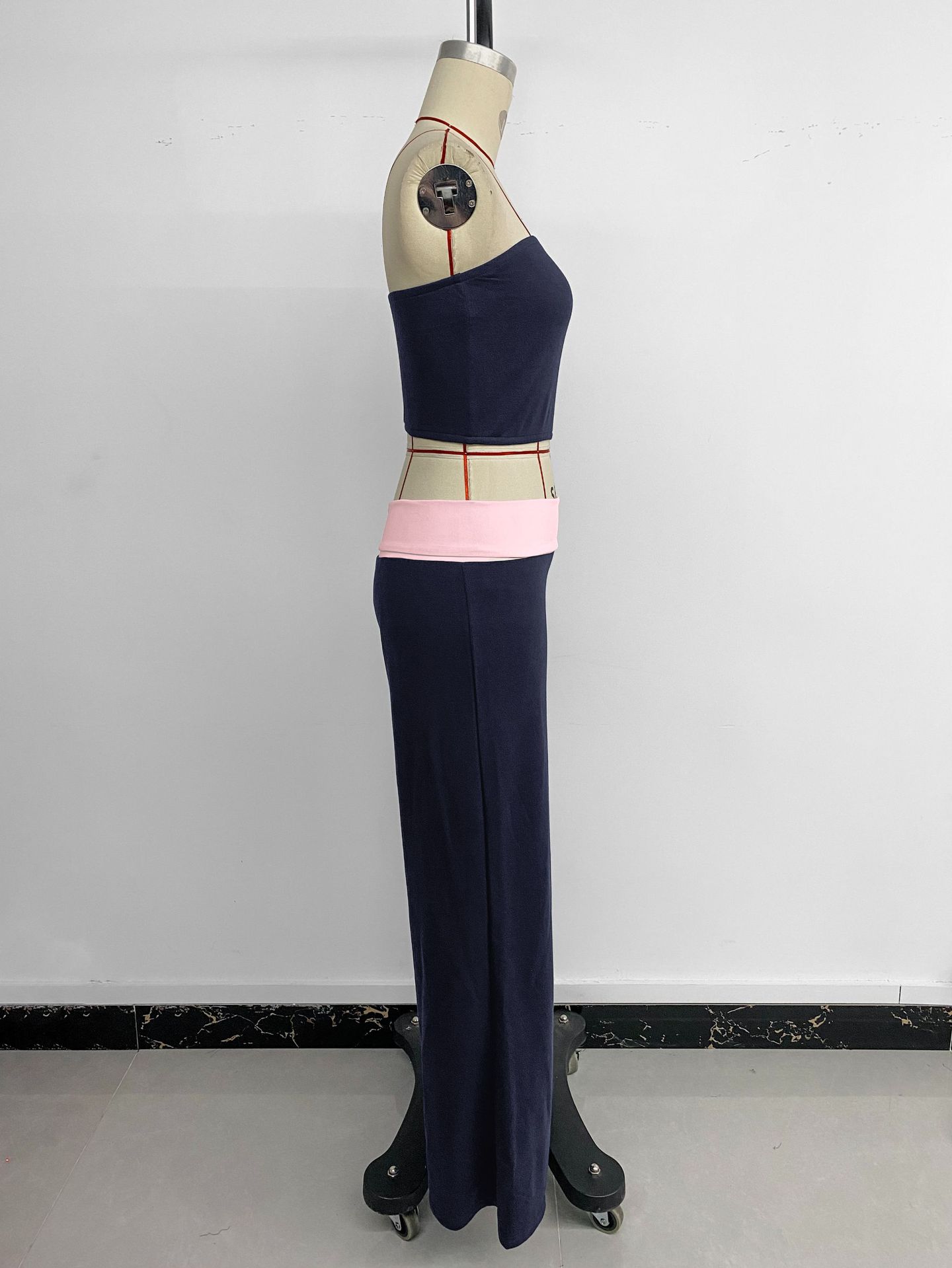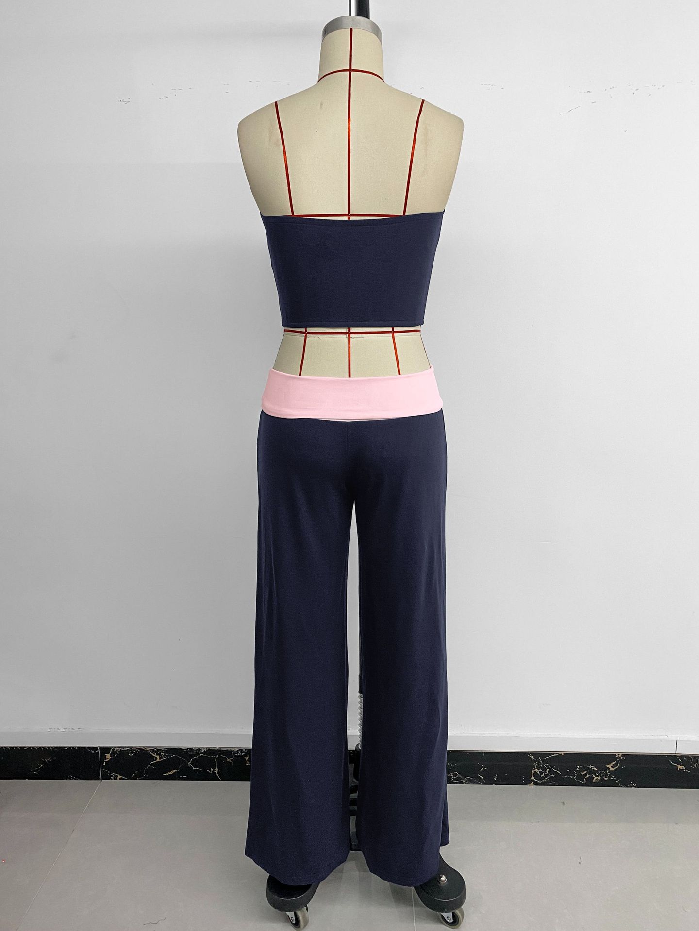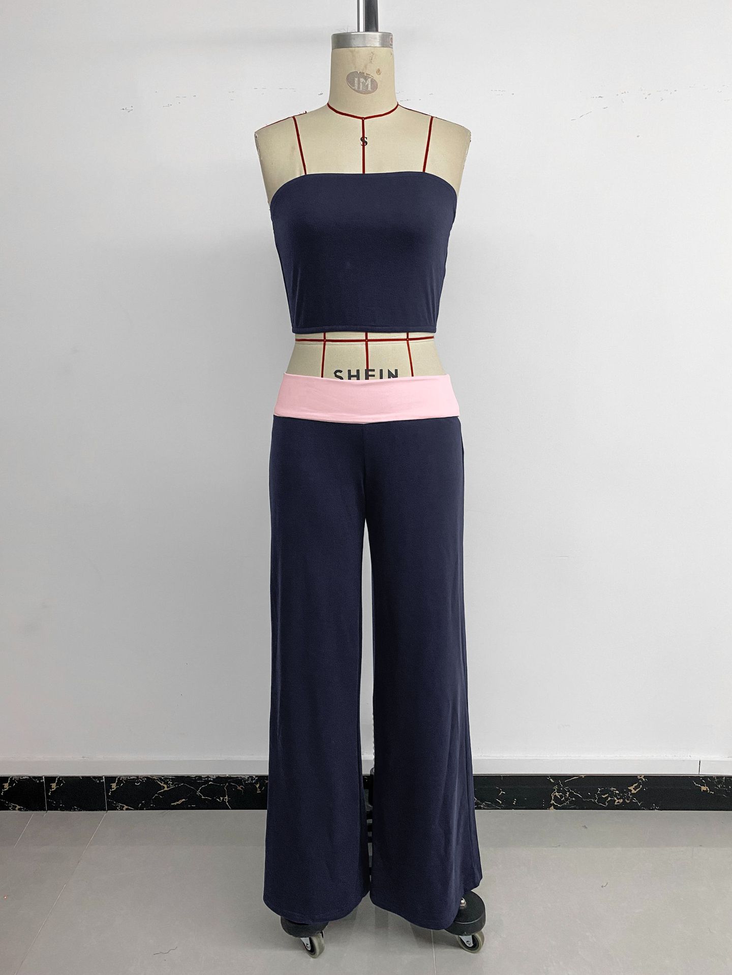 New Sweet And Cool Casual Two-piece Contrast-color Lounge Pants Set