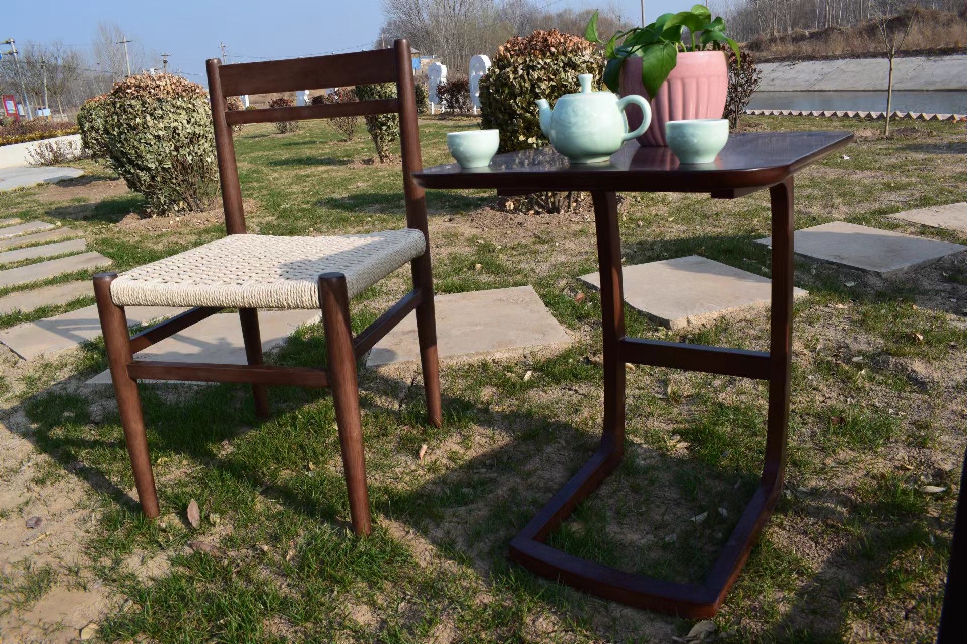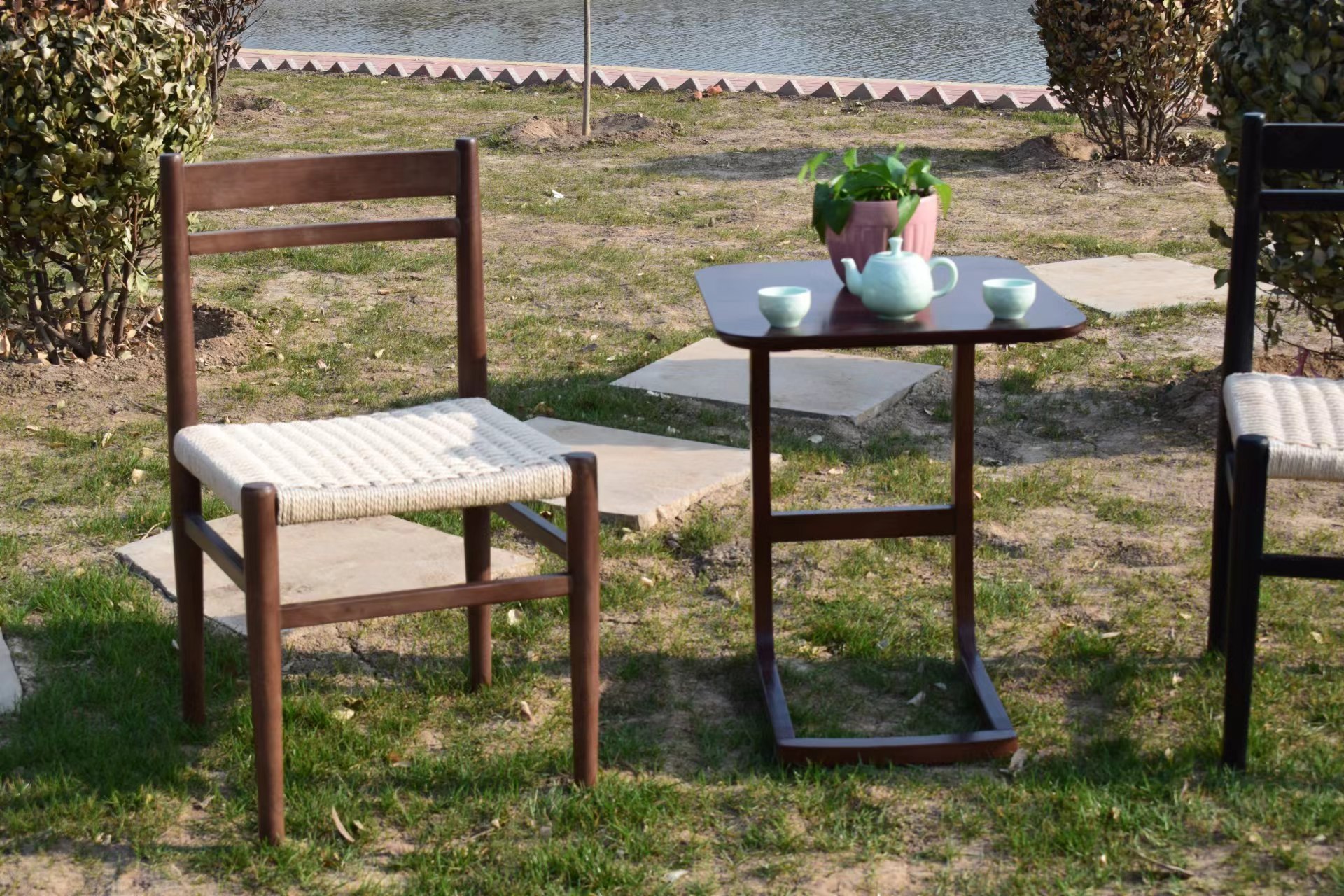 Nordic-style Minimalist Log And Rope-woven Lounge Chair