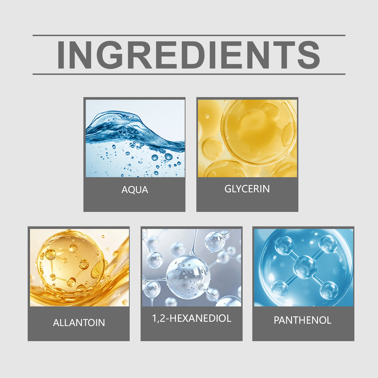 Ingredients: water, glycerin, allantoin, 1,2-hexanediol, panthenol.