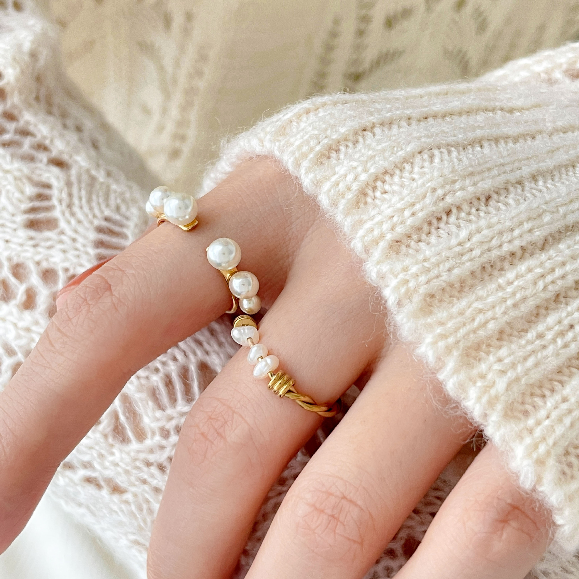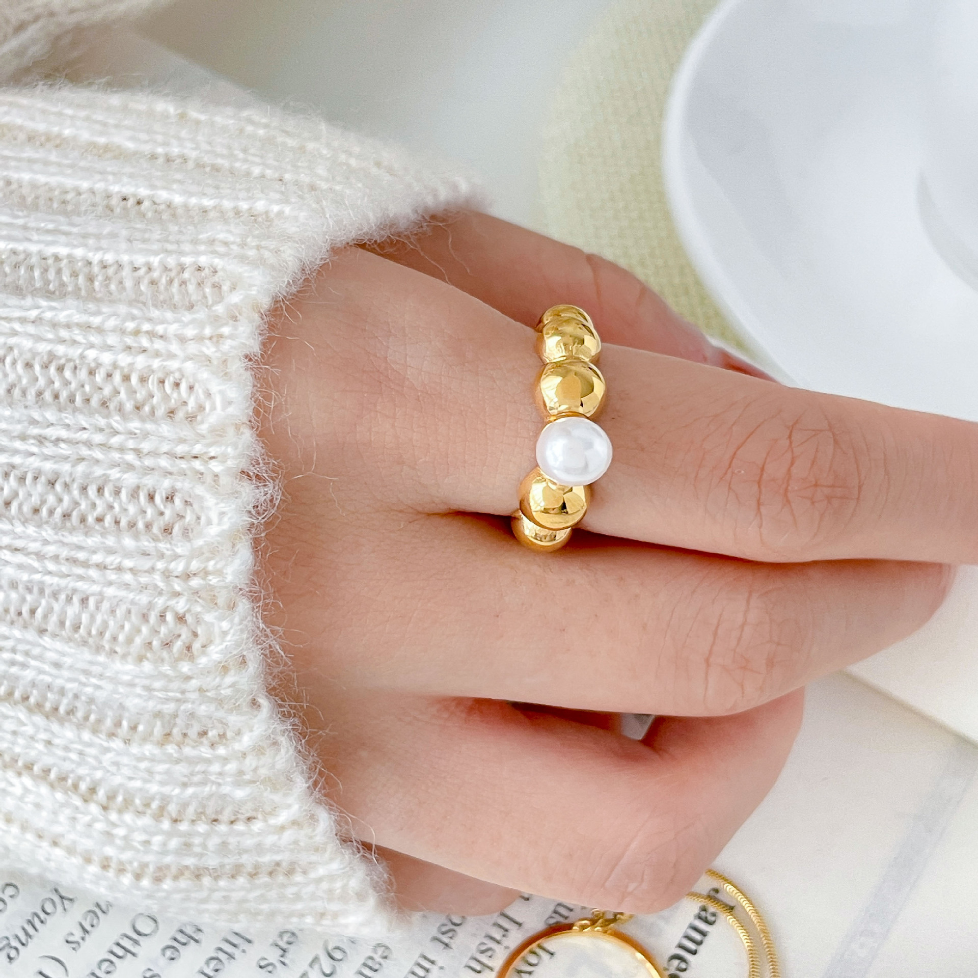 0 Review for Pearl Round Bead Ring For Women