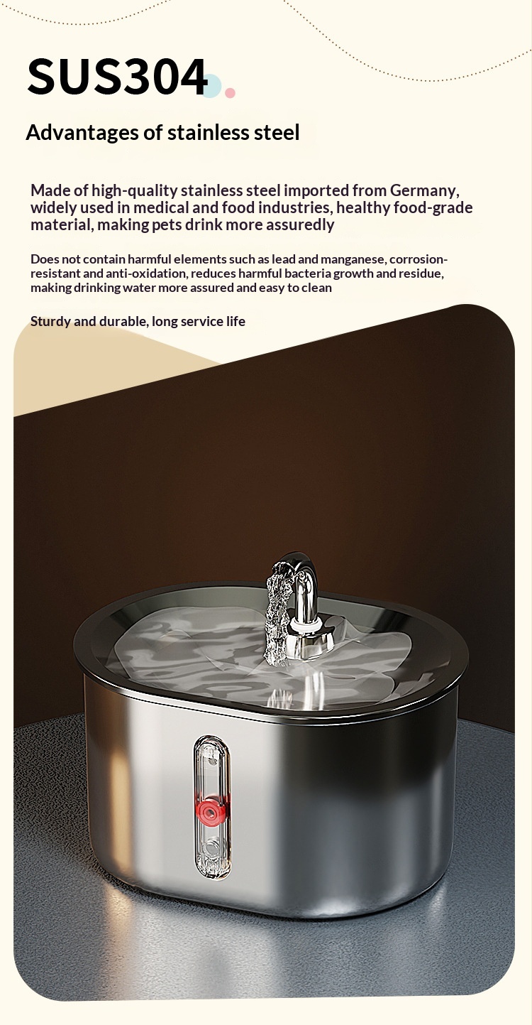 Pet Water Fountain 304 Stainless Steel Circulating Filtration For Cats
